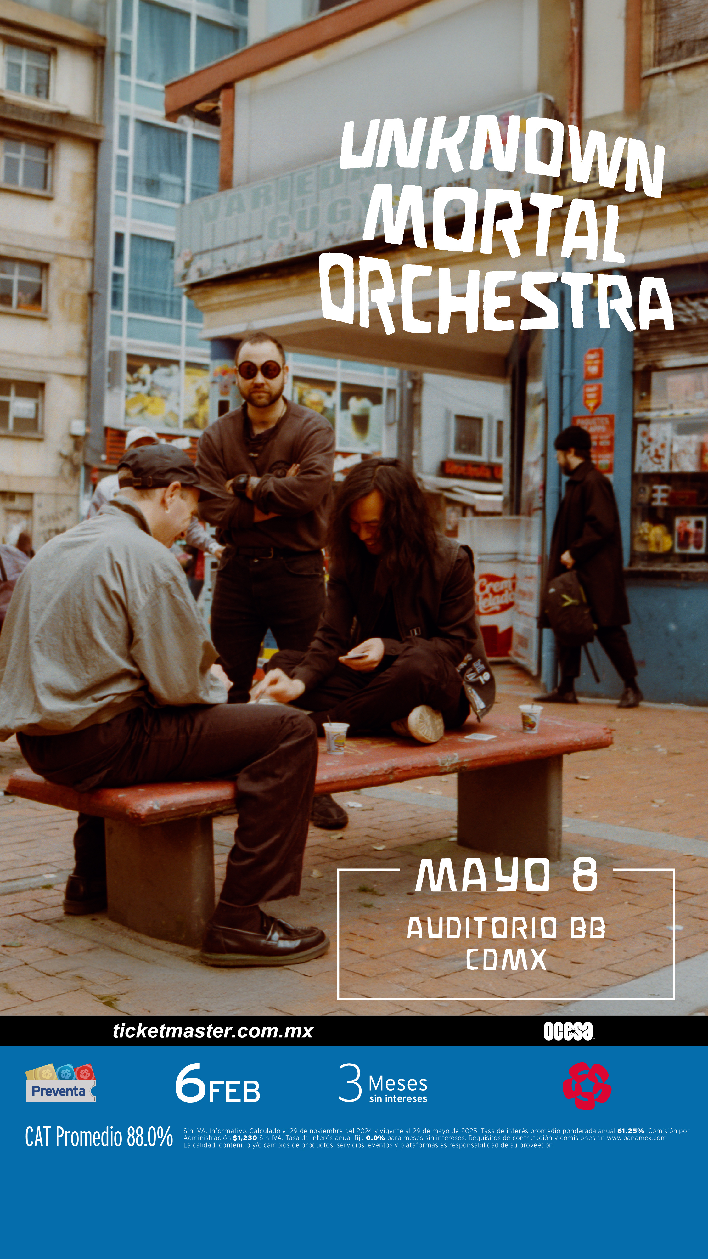 Tras la aclamada presentación en el Festival Corona Capital 2023, Unknown Mortal Orchestra anuncia su regreso a nuestro país, el próximo 8 de mayo al Auditorio BB, para una vez más volver a vibrar con temas como "Hunnybee", "Multi-Love" y "So Good at Being in Trouble", junto a sus seguidores.