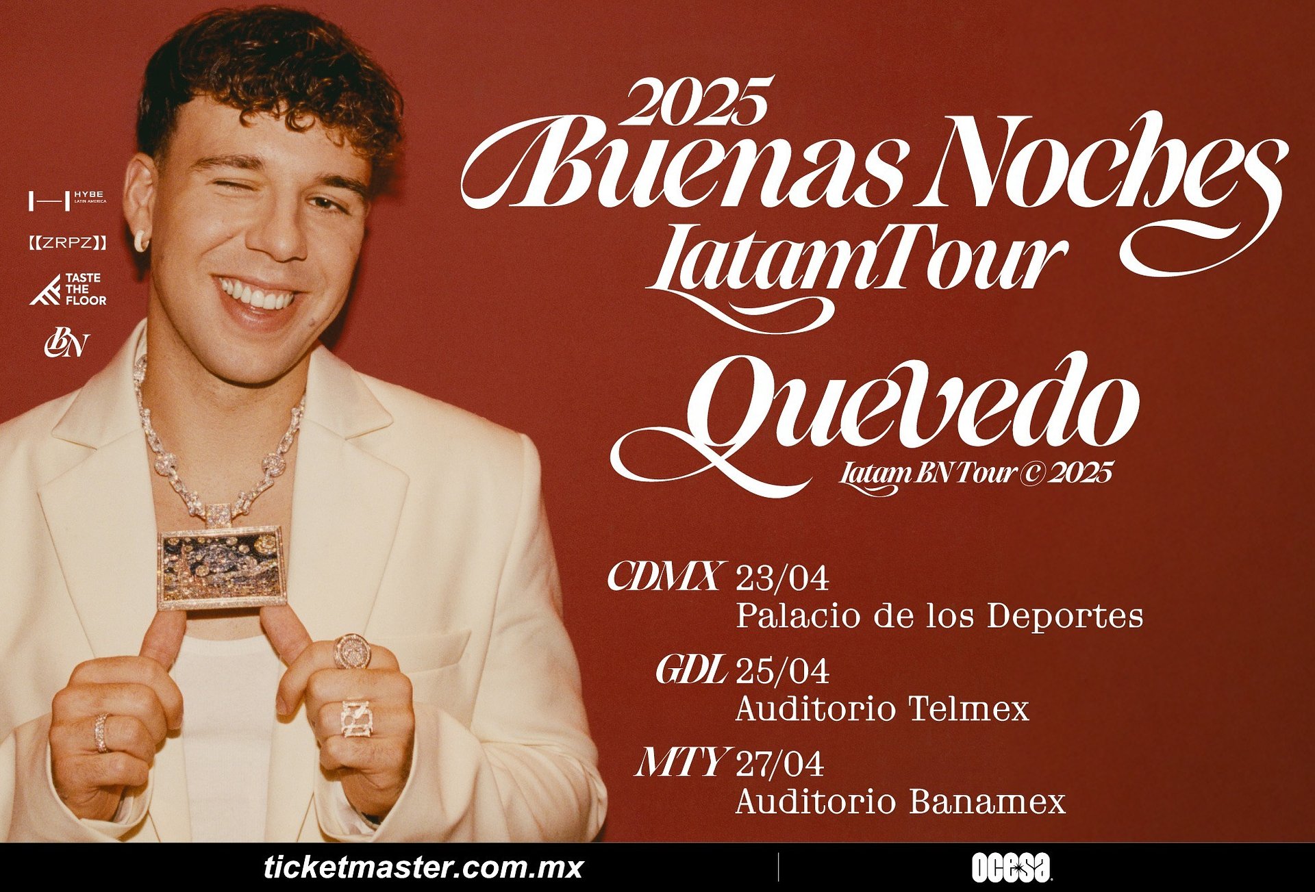 Si eres fan de Quevedo, sabes que estos shows van a ser un antes y un después. No te quedes fuera de esta experiencia única. Los boletos estarán en preventa Banamex el 13 de febrero, y un día después los podrás adquirir en las taquillas del inmueble o a través de www.ticketmaster.com.mx.