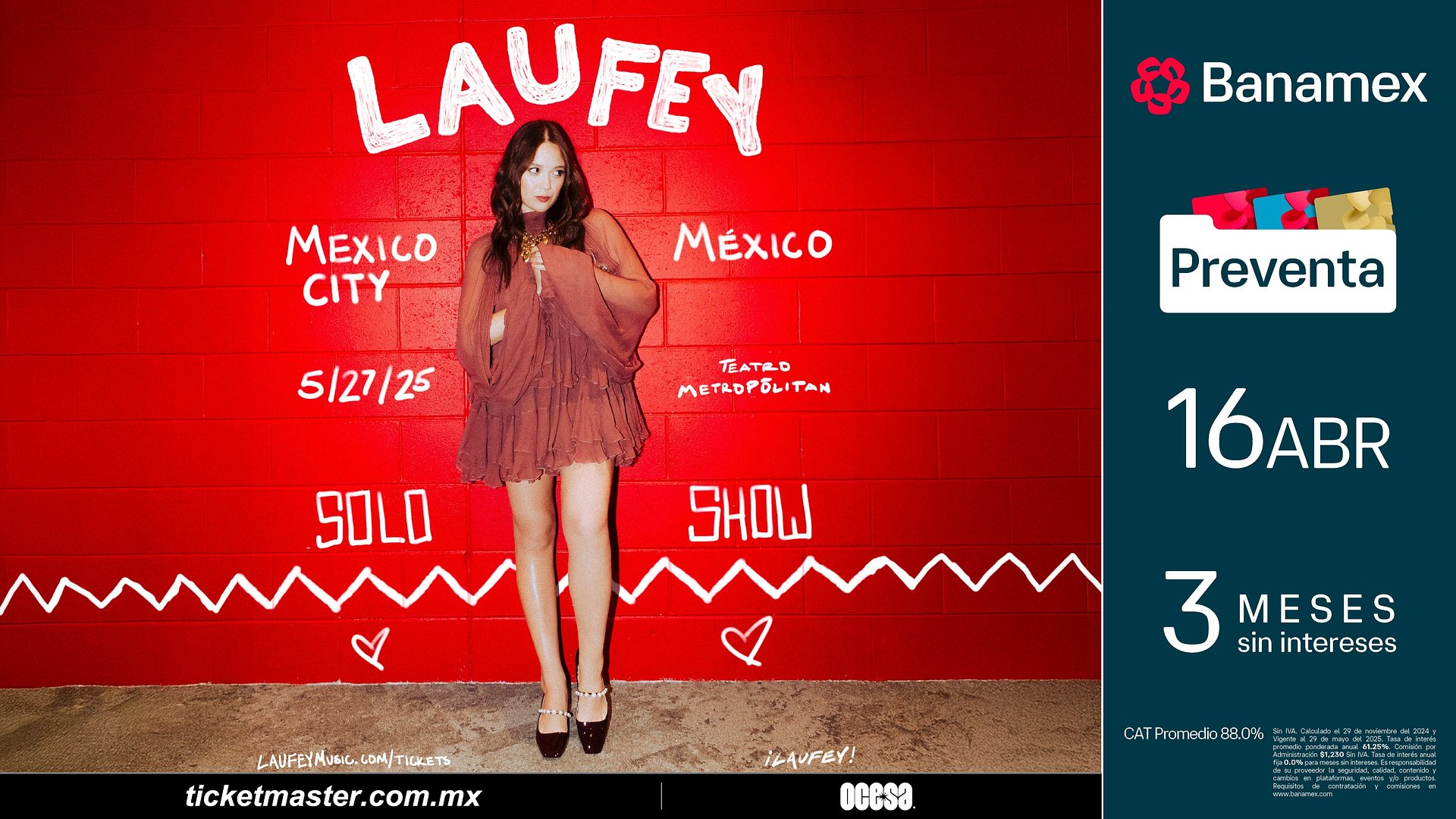 La artista, compositora y multiinstrumentista islandesa-china Laufey (Ley-vey), anuncia su muy esperado primer show en solitario en la Ciudad de México para el próximo 27 de mayo en el Teatro Metropólitan. Con una propuesta que fusiona jazz, pop y una sensibilidad clásica única, Laufey invita a vivir una noche inolvidable con su música en vivo. La preventa Banamex comienza el 16 de abril y la venta general el 17 de abril, BOLETOS AQUI.