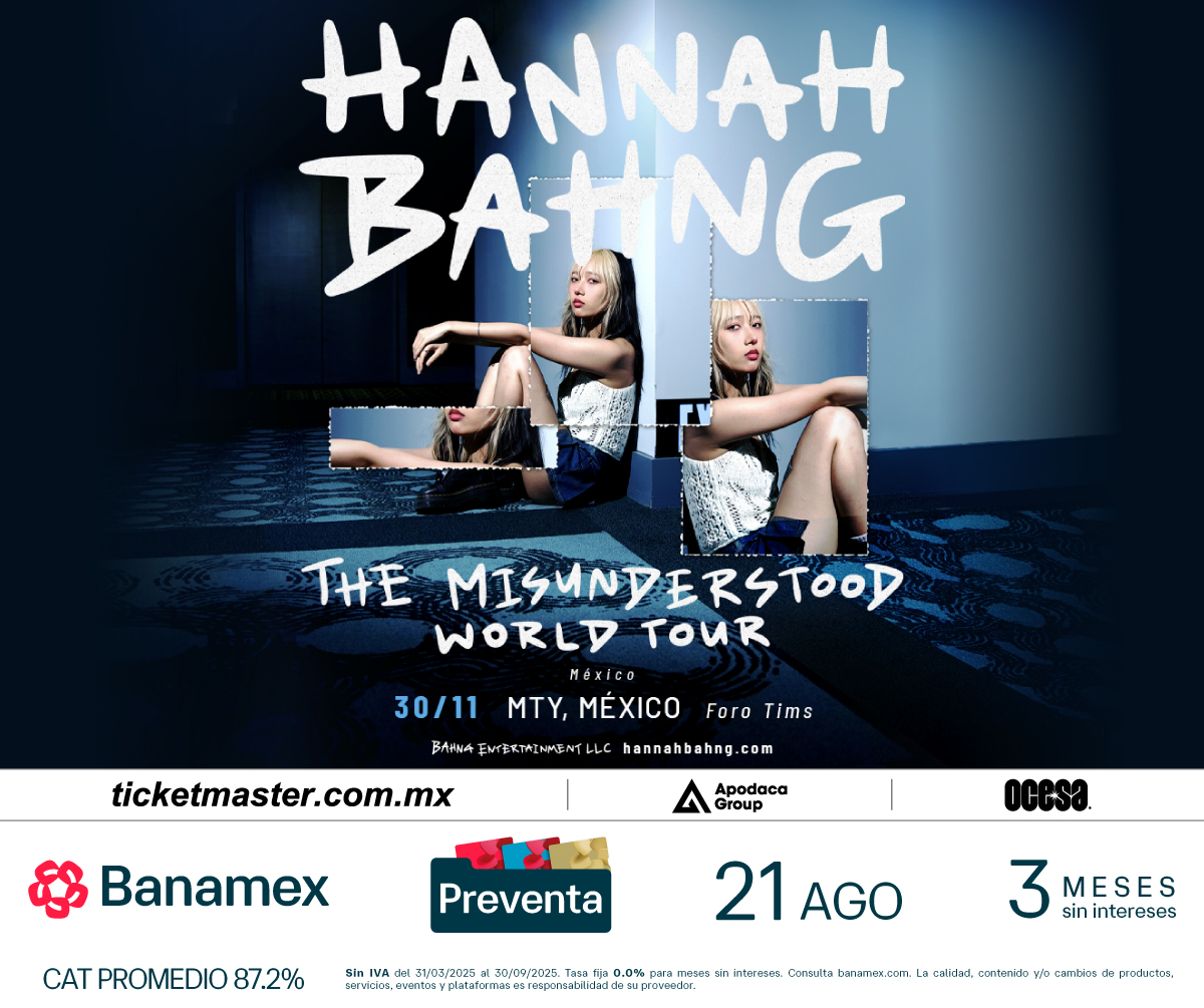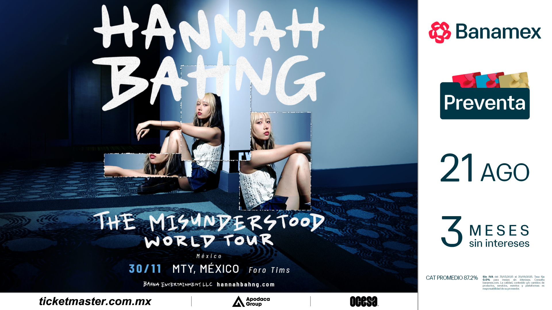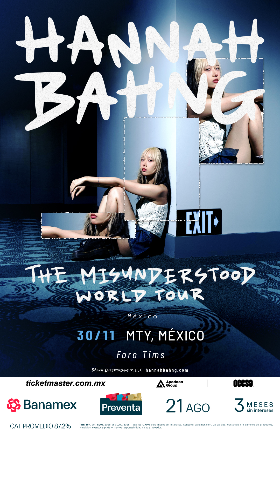 Hannah Bahng está rompiendo la industria del indie pop con sold outs en distintas partes del mundo: Estados Unidos, Alemania, Francia, Países Bajos, Reino Unido y México, lo que hace de esta presentación en Monterrey, una noche imperdible donde conectará la creatividad, la rebeldía y la juventud. Lo mejor, es que llegará a una de las ciudades más importantes del país, donde goza de una sólida base de fans que anhelan su primera presentación en la región norteña.