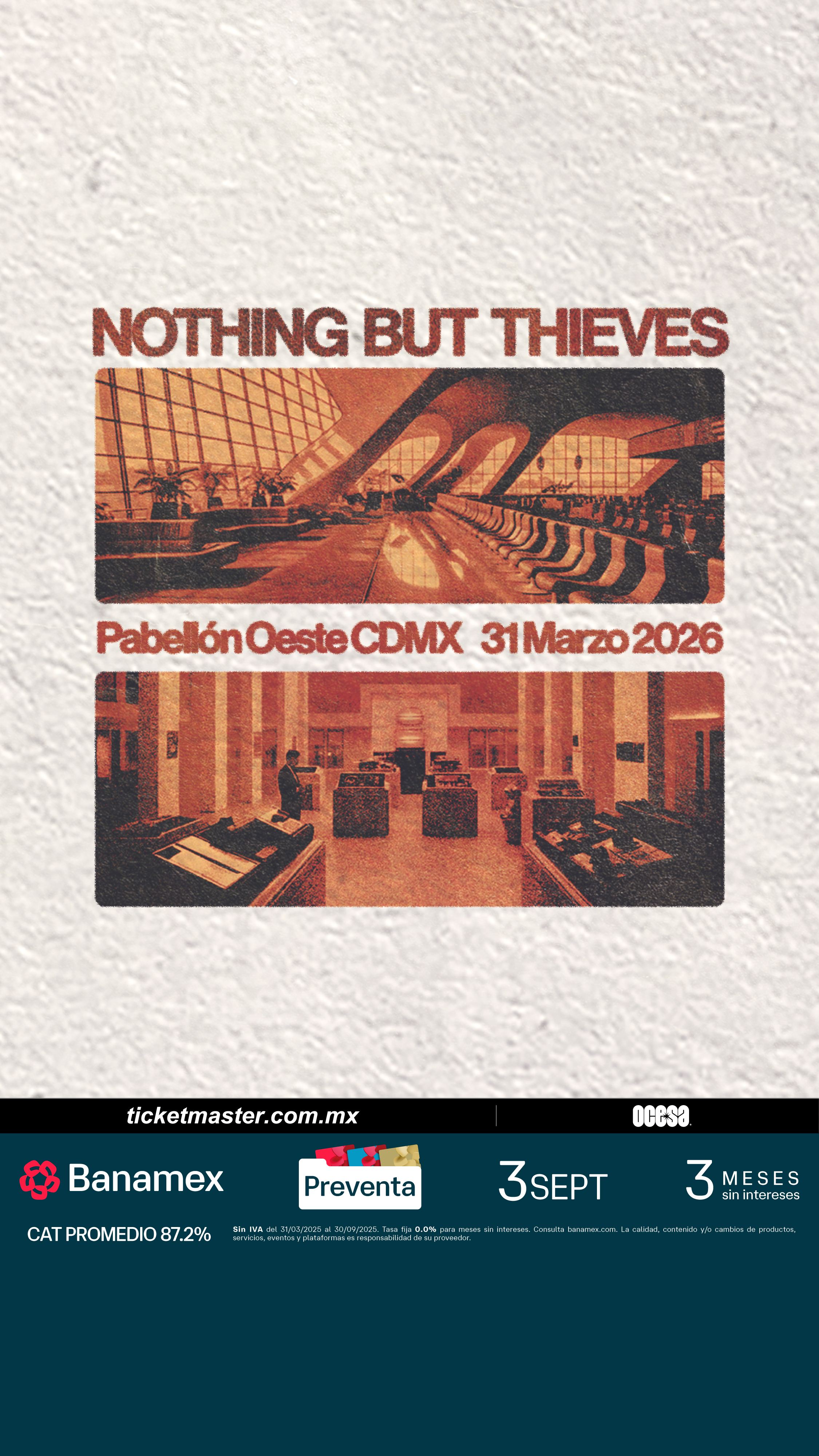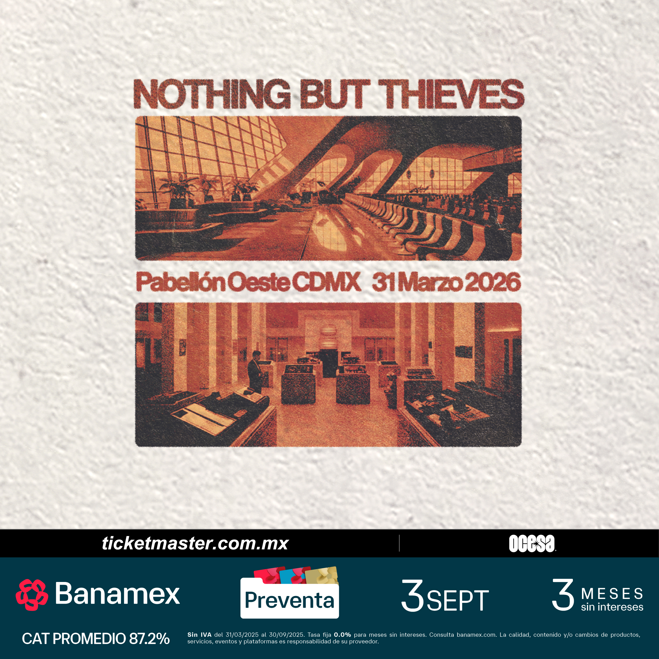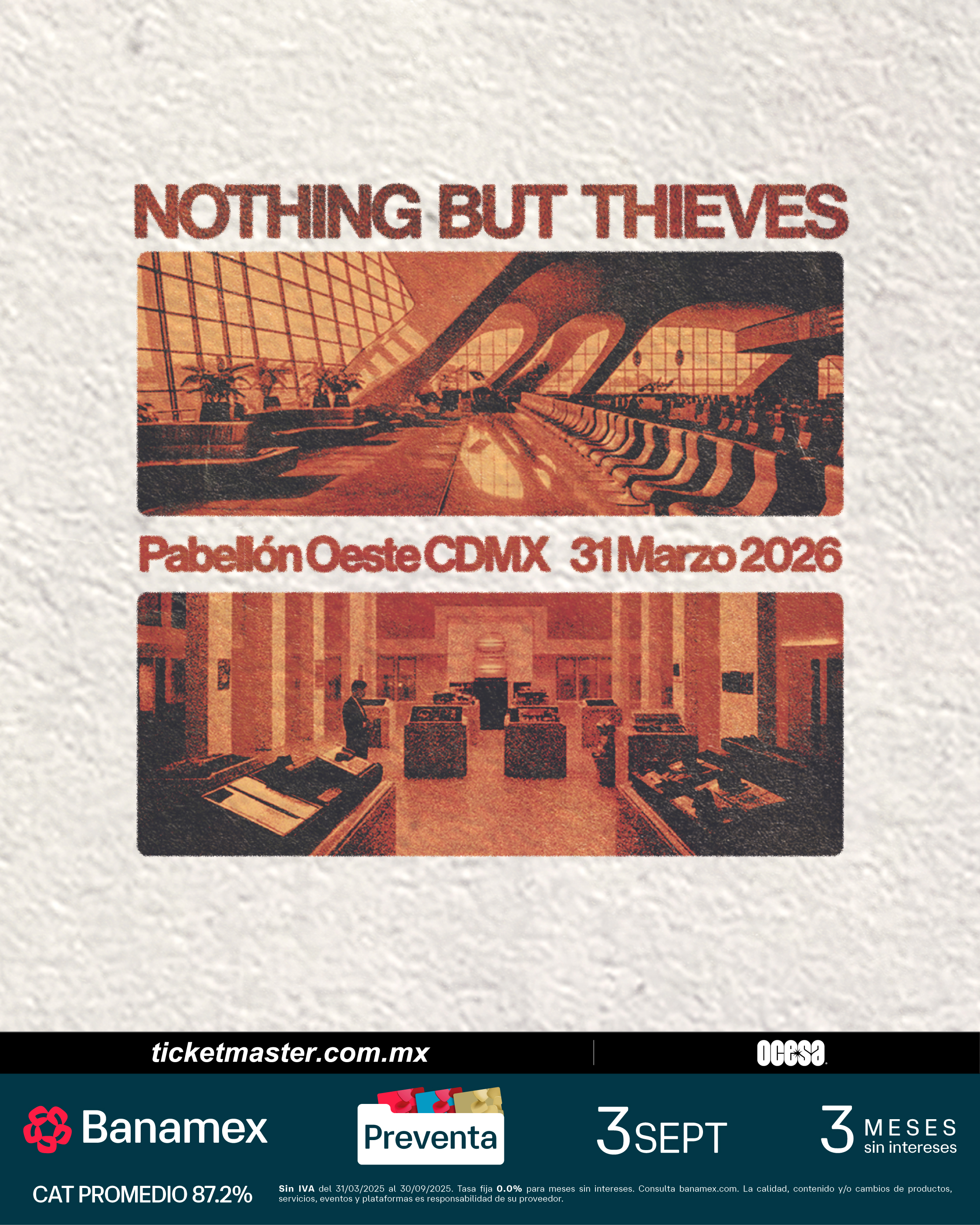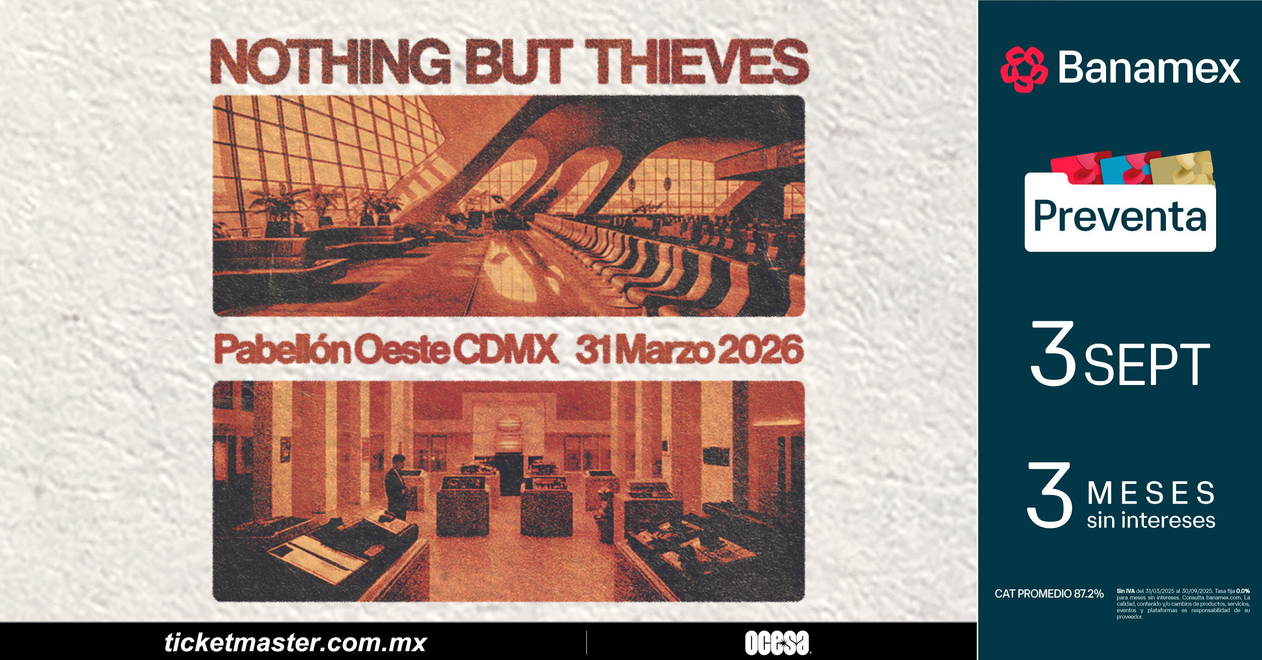 Prepara tus oídos para una experiencia inolvidable. Nothing But Thieves, la banda que ha conquistado el rock alternativo con la poderosa voz de Conor Mason y su energía explosiva está de regreso en Ciudad de México. Recorre en vivo su evolución musical, desde los himnos que marcaron una generación como “Amsterdam” o “Sorry”, hasta las innovadoras texturas de “Overcome” el próximo 31 de marzo en el Pabellón Oeste.