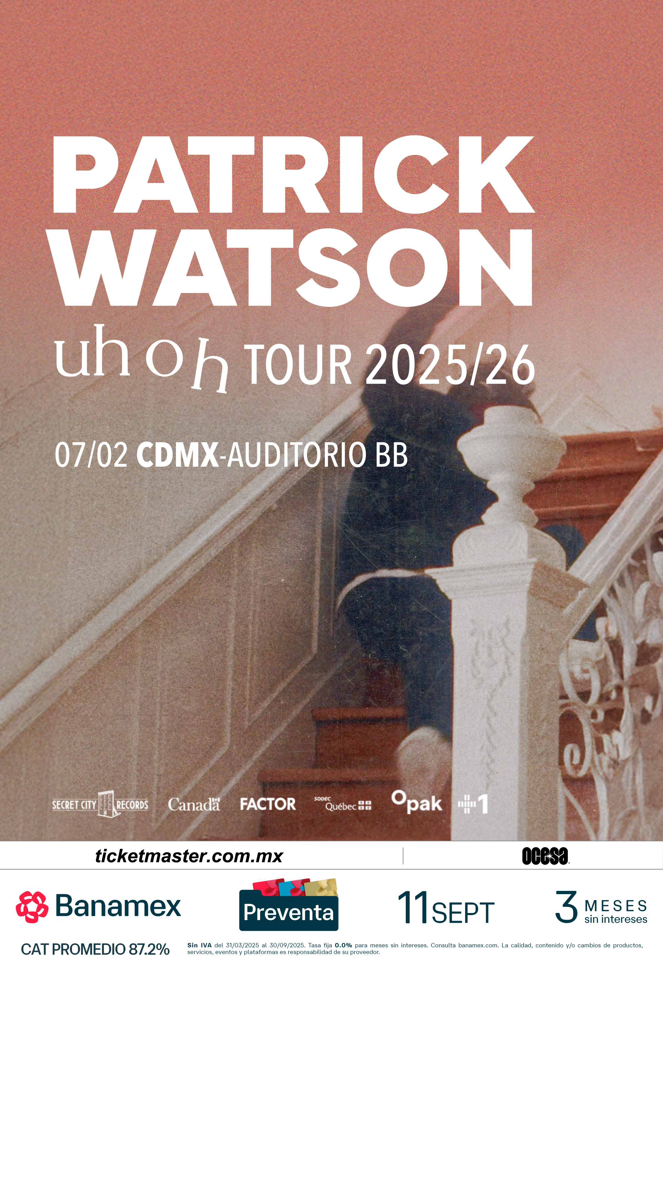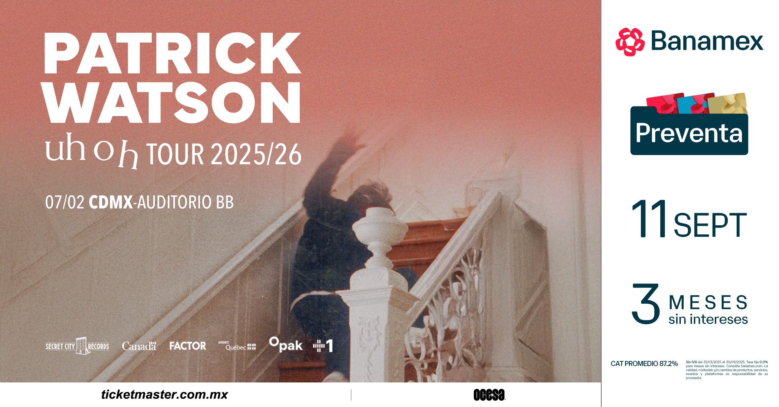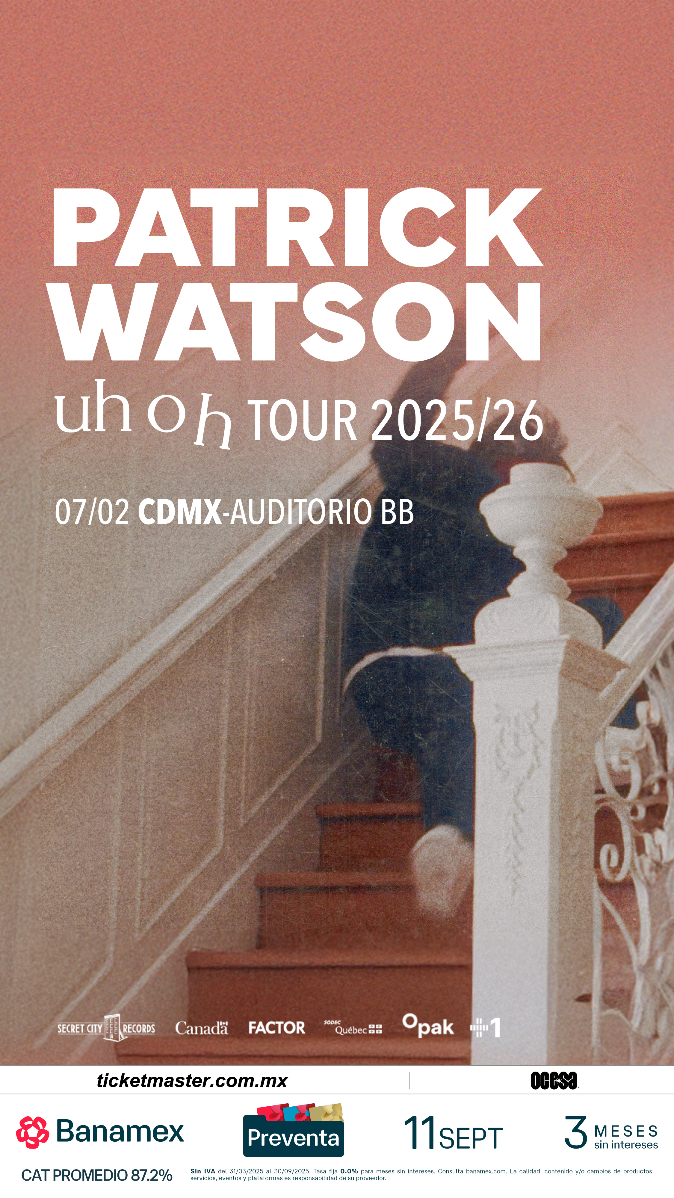 Esta es tu oportunidad para ser testigo de un concierto inolvidable, melancólico, pero, sobre todo, espectacular. Corre por tus boletos y asegura tu lugar para una noche donde la música de Patrick Watson te transportará a otro mundo. ¡Te esperamos el 7 de febrero de 2026 para vivir la magia en vivo!