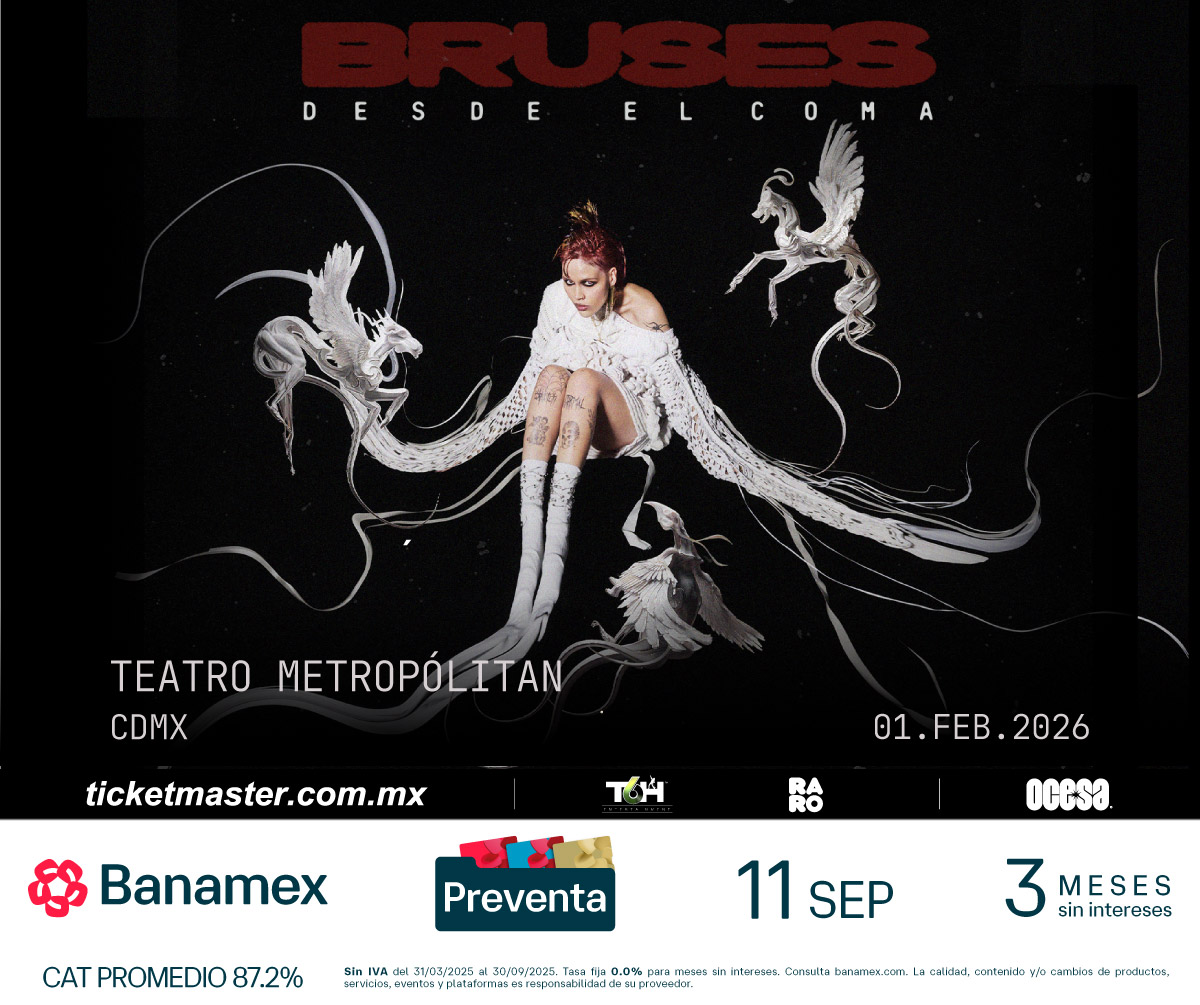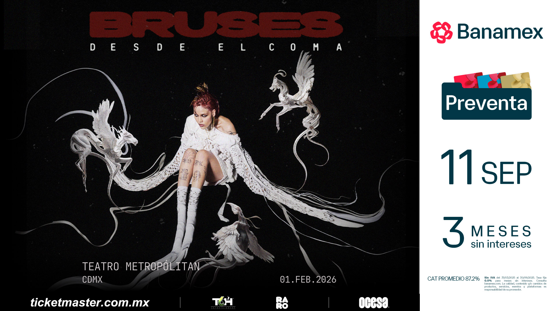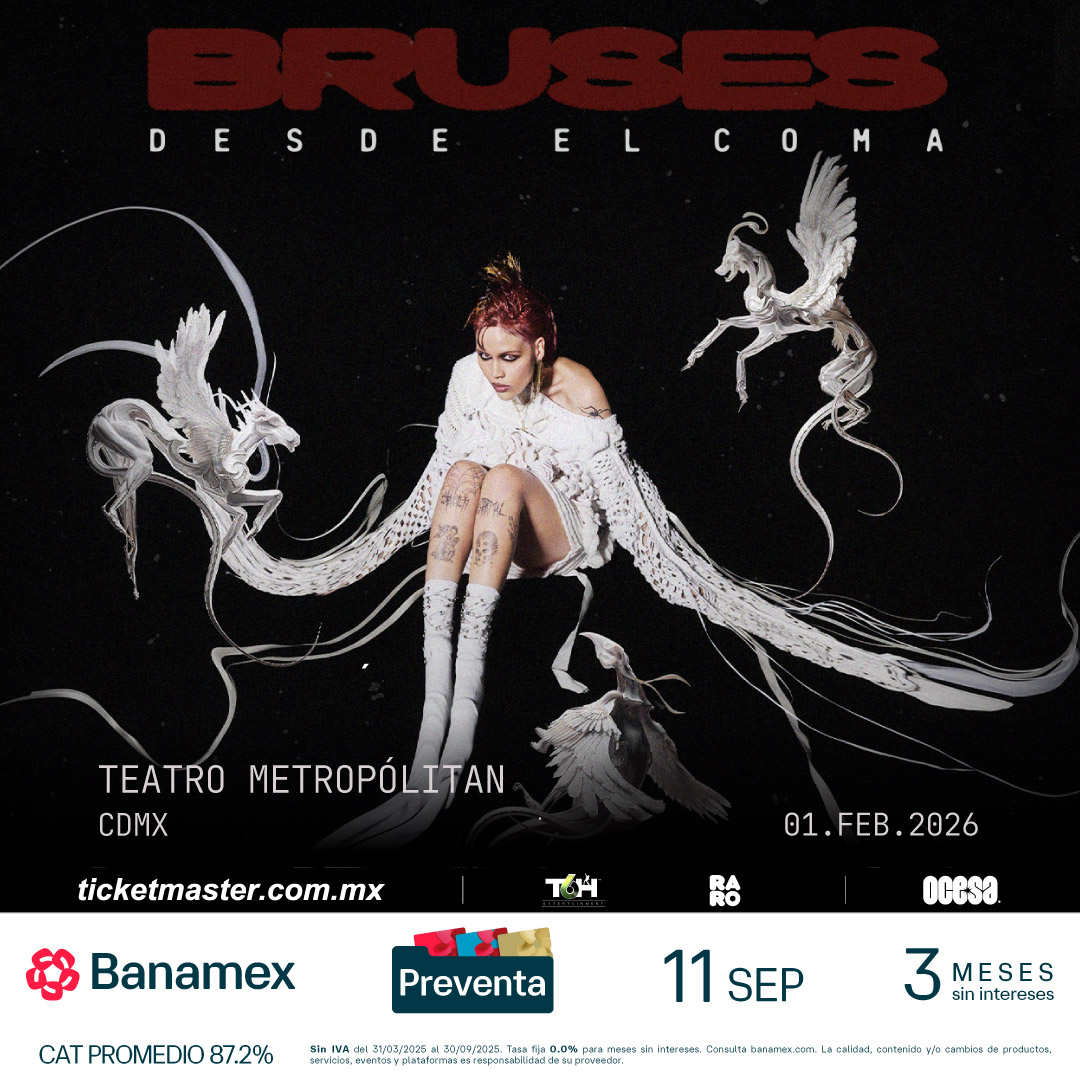 Bruses, la cantautora tijuanense que revolucionó la escena del alt-pop mexicano, llega al Teatro Metropólitan el próximo 1 de febrero de 2026, para presentar su más reciente disco, Desde El Coma, además de sus más grandes éxitos.