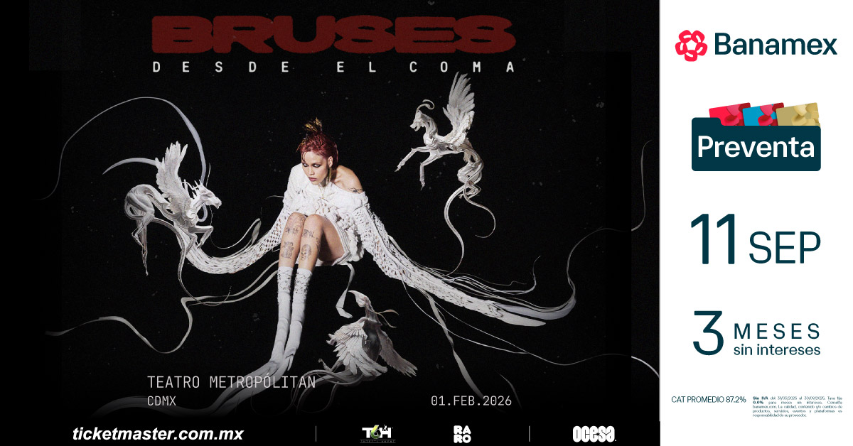 Adquiere tus boletos en Preventa Banamex a partir del jueves 11 de septiembre, mientras que la venta general será un día después en las taquillas del inmueble o a través de Ticketmaster.