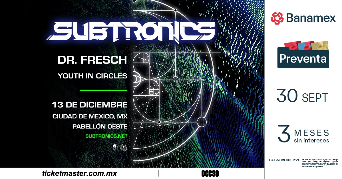 El productor y DJ estadounidense Subtronics está listo para pisar tierra mexicana y encender la Ciudad de México con su future Bass un género que combina elementos del trap, dubstep y el EDM. No te pierdas esta noche legendaria, donde su energía única se apoderará del escenario para crear un espectáculo que te hará mover la cabeza y bailar toda la noche. La cita será el 13 de diciembre en el Pabellón Oeste.