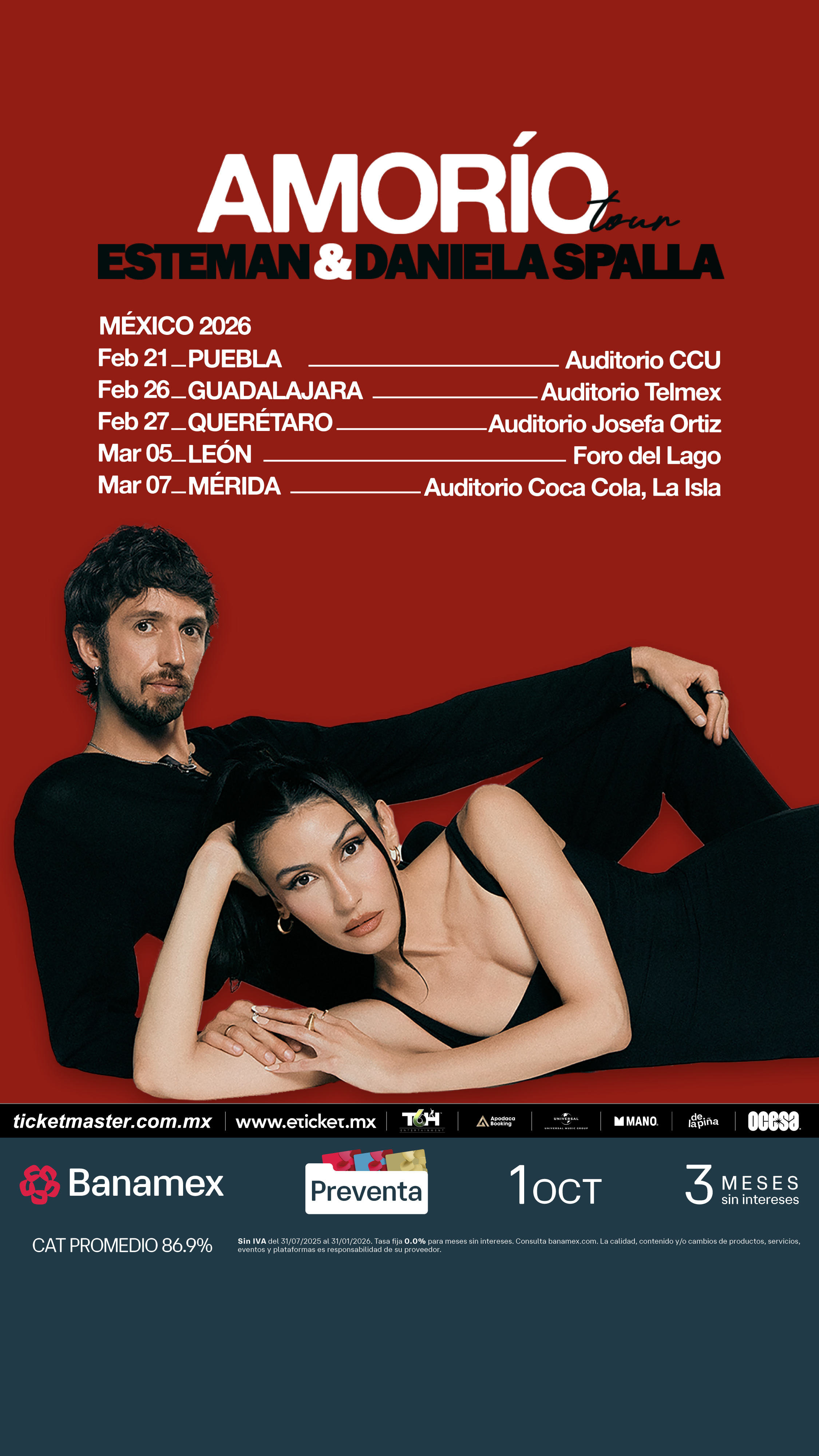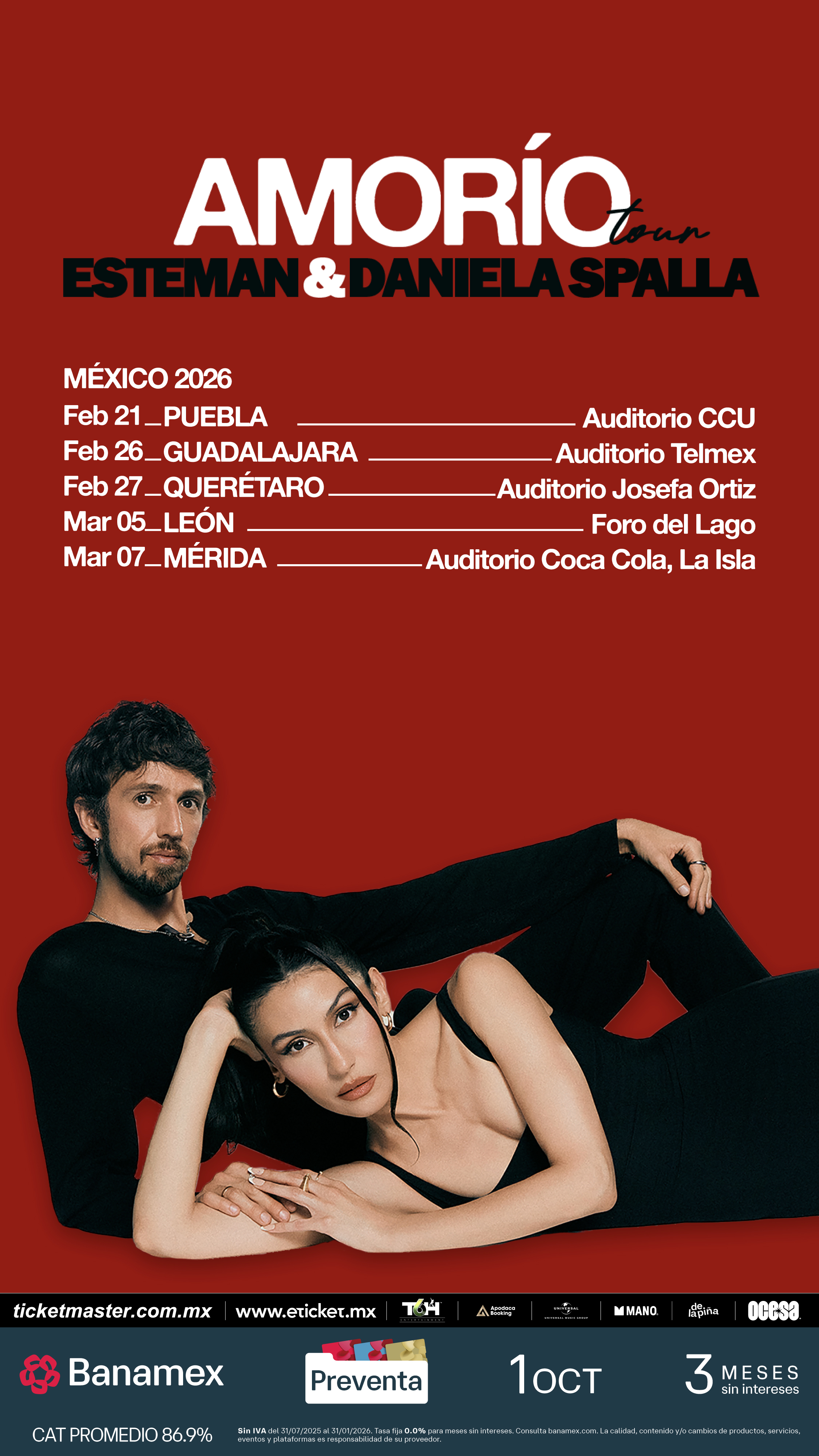 Después del sold out que registraron en el Palacio de los Deportes de la CDMX, los reconocidos artistas, Esteman y Daniela Spalla, se unen de nueva cuenta para ofrecer un extraordinario show que fusionará lo mejor de sus trayectorias, en el que compartirán escenario en distintas ciudades del país.