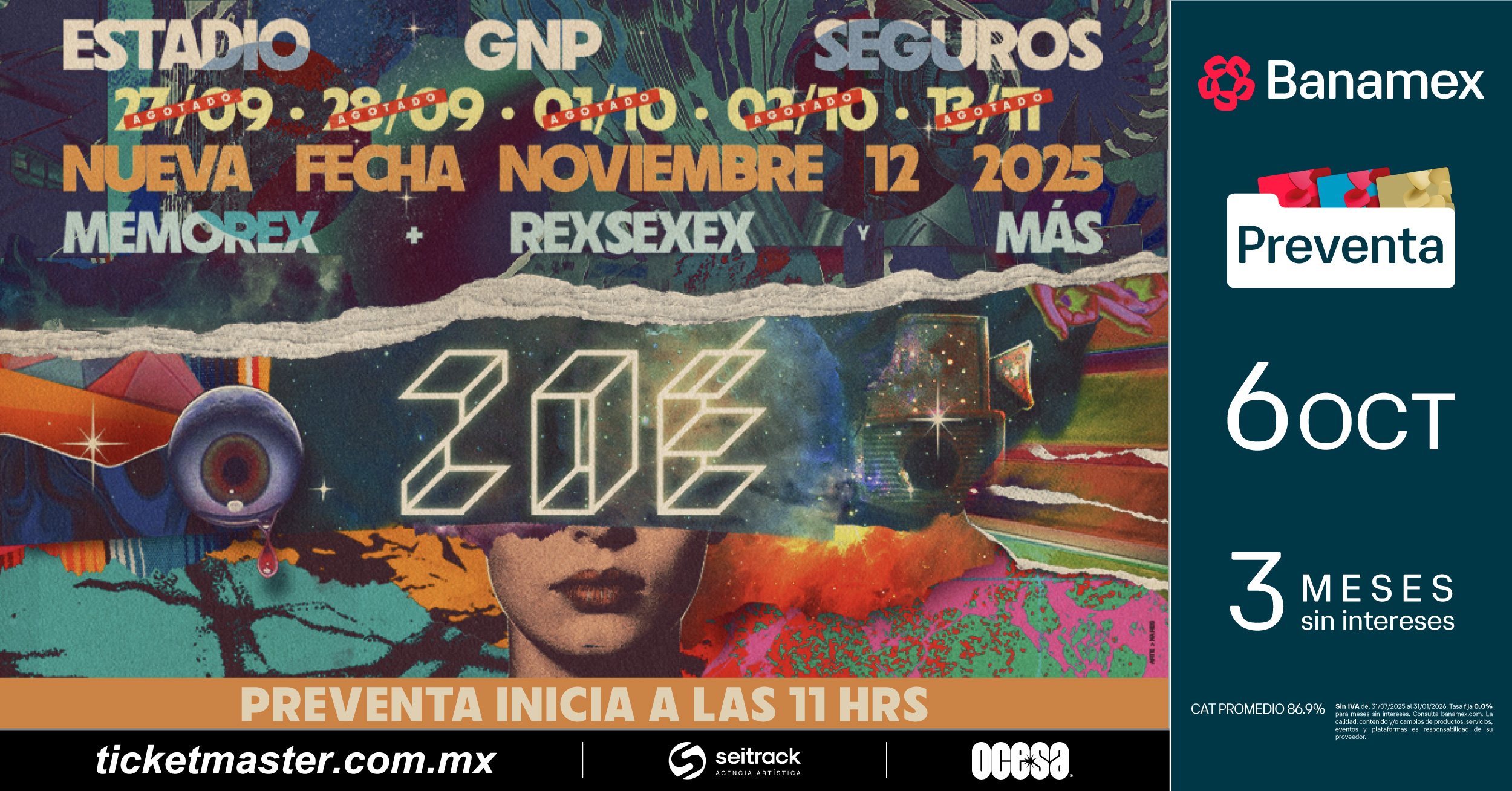 Preventa Banamex: 6 de octubre, 11:00 A.M.