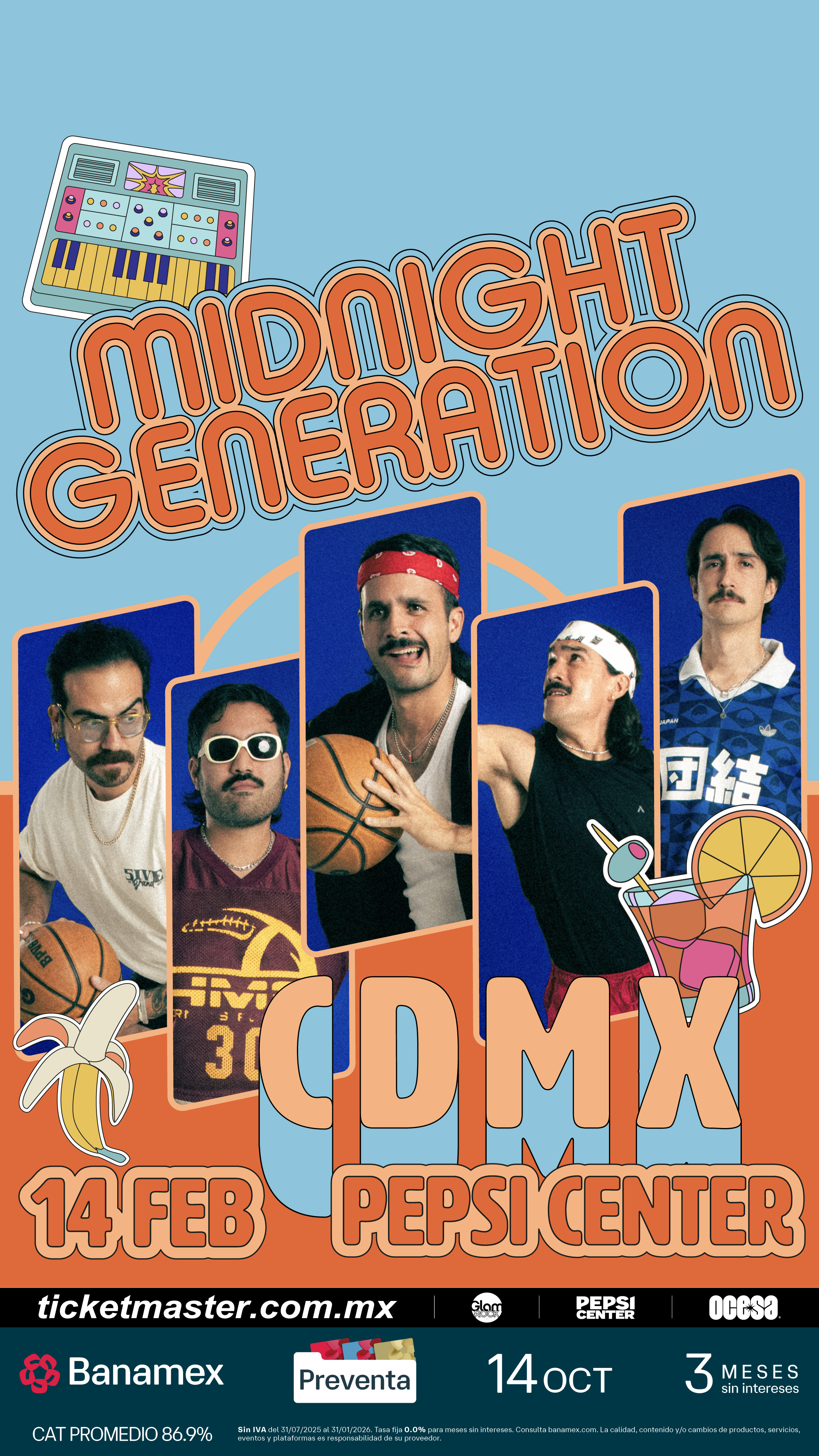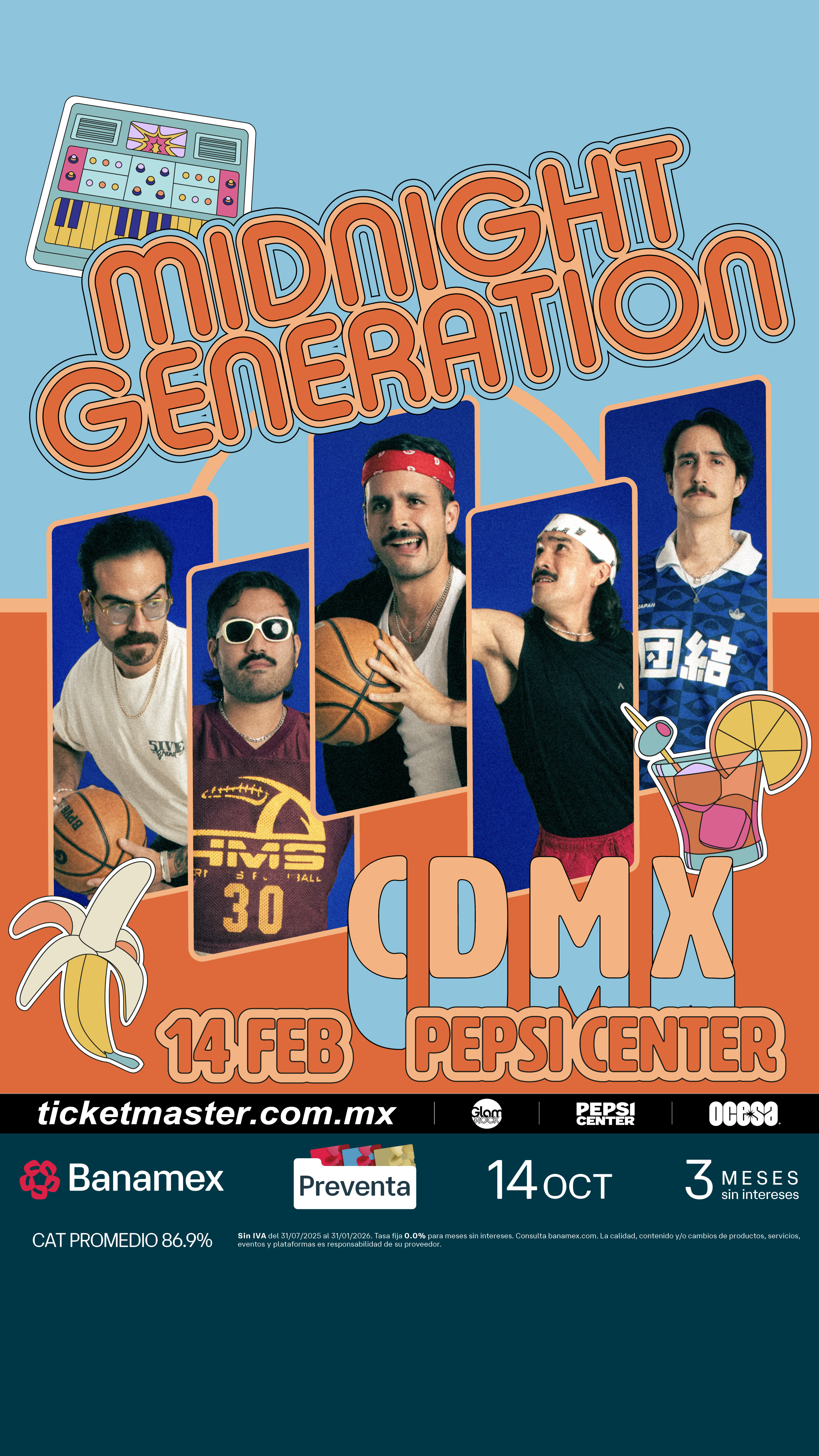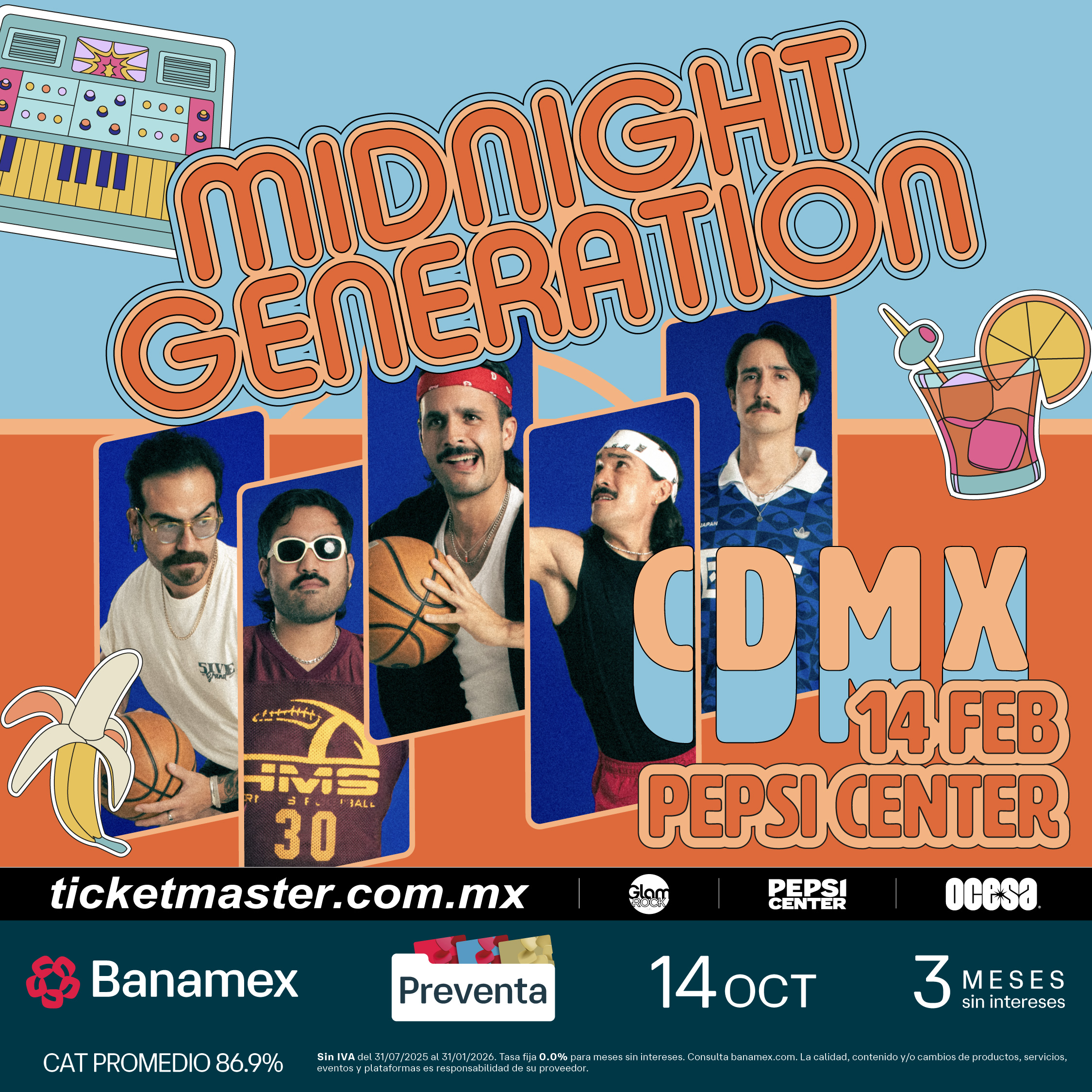 ¡Funk hecho en México, señores! Una de las bandas de electrofunk más importantes de nuestro país está de vuelta en casa. Después de conquistar Europa y agotar fechas en Estados Unidos, Midnight Generation –los mismísimos Daft Punk mexicanos– regresan con más groove, sintetizadores retro y todo ese mood que nos hace bailar hasta que duelan los pies. Prepárense para una noche increíble de electrofunk en la selva de asfalto el próximo 14 de febrero en el Pepsi Center.