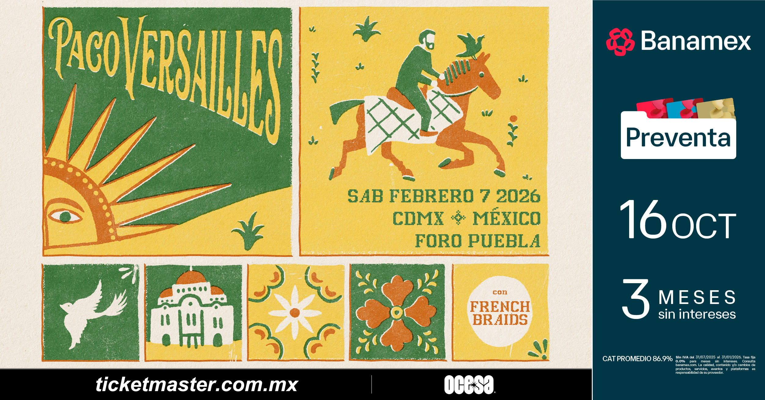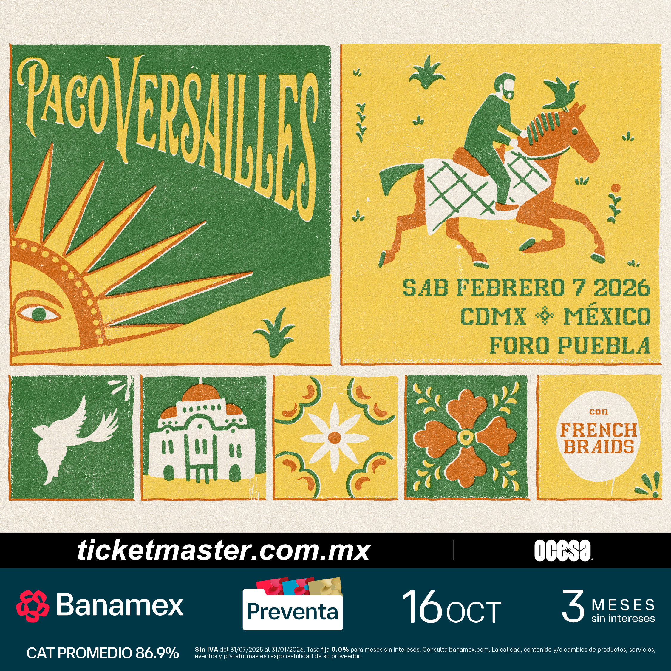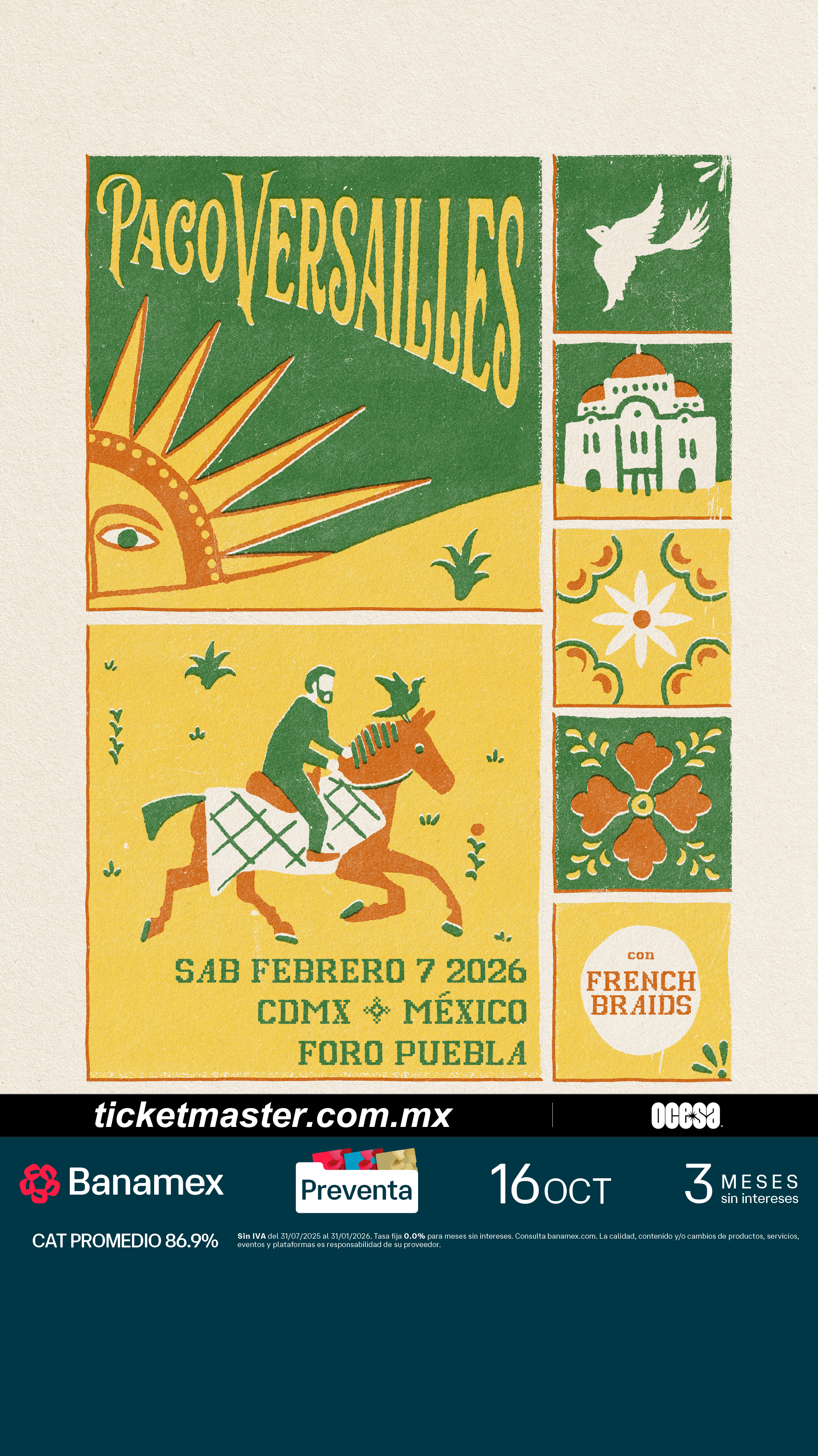 El dúo que ha logrado fusionar la energía de la electrónica con la pasión ancestral de la guitarra flamenca, Paco Versailles, estará en nuestro país para un show que muchos estábamos esperando. No te puedes perder esta velada única, llena de beats hipnóticos y folclor renovado, el próximo 7 de febrero de 2026 en el Foro Puebla.
