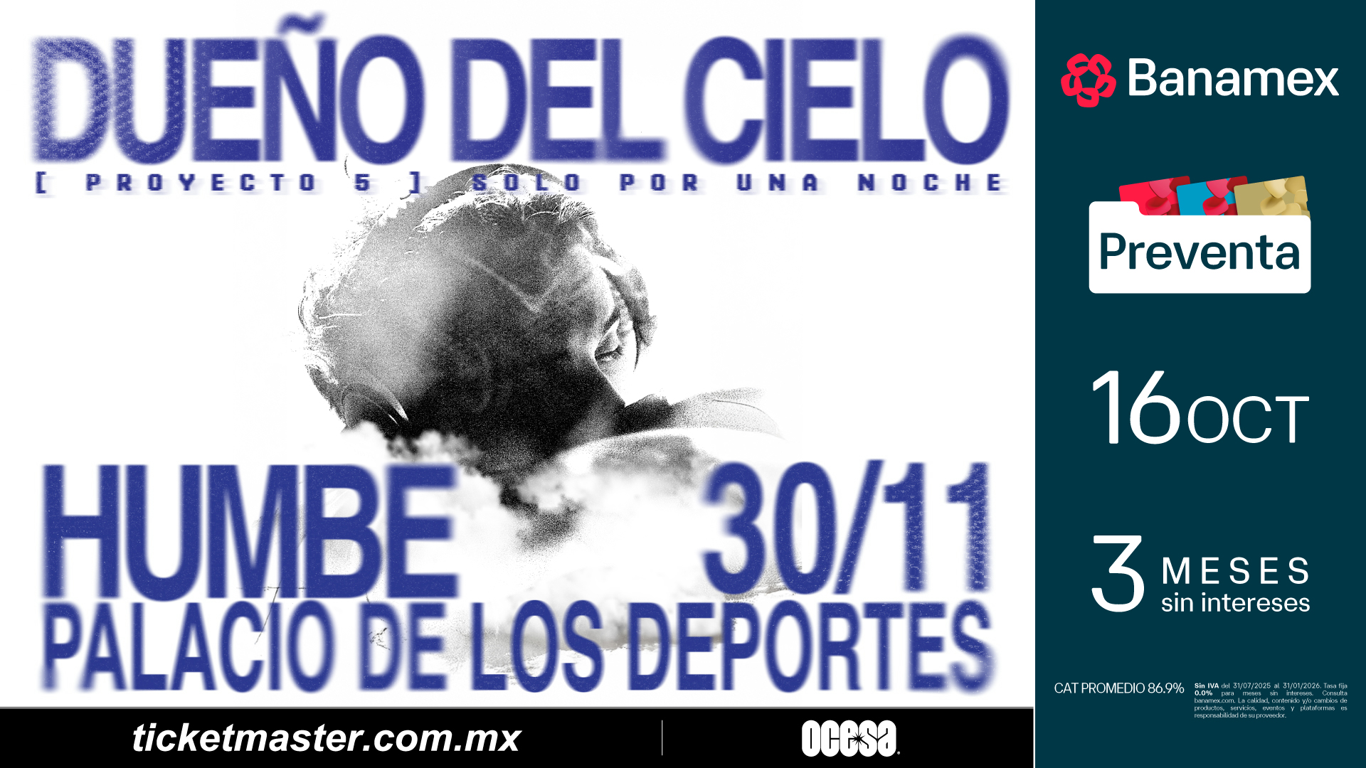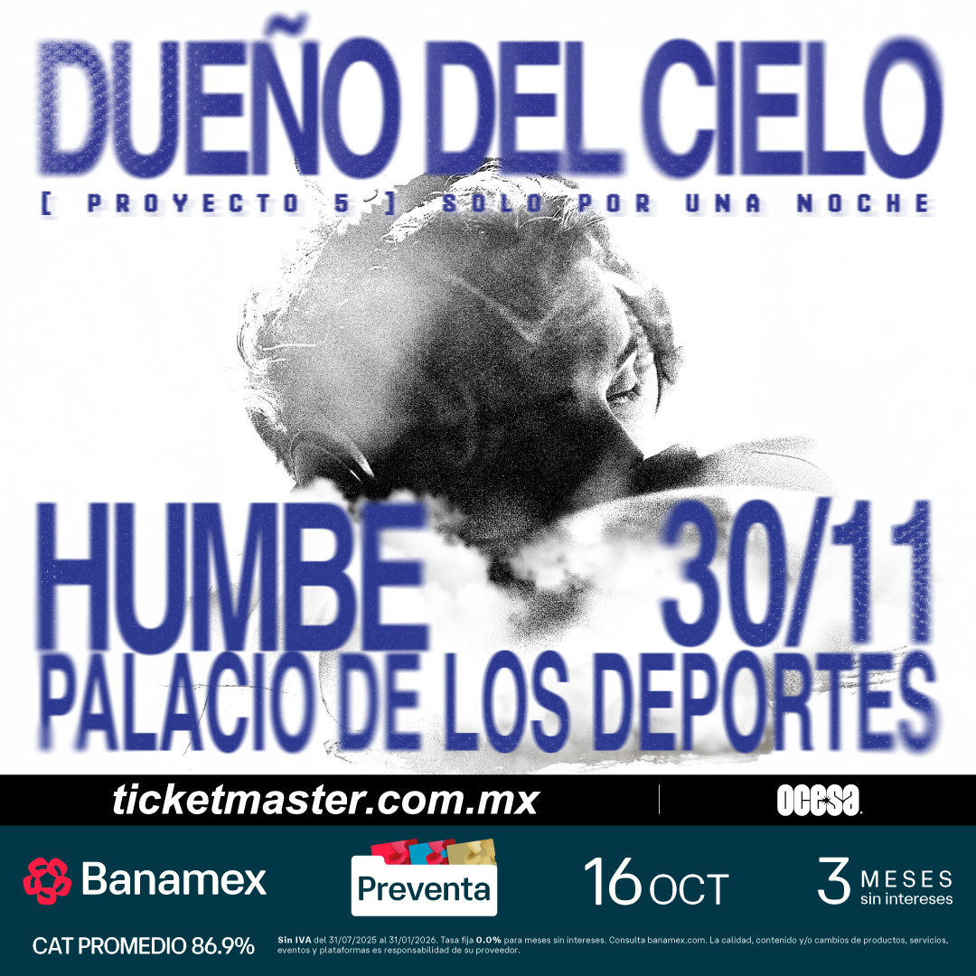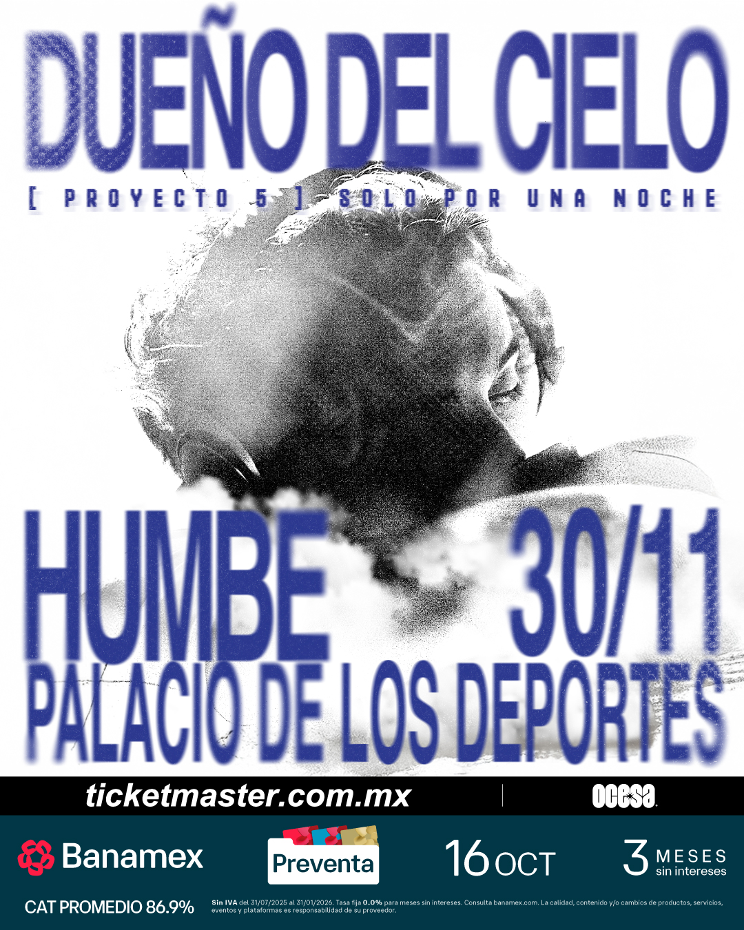 Uno de los cantautores que ha estado rompiendo los charts de las plataformas con sus rolas, está de regreso para una cita inolvidable. HUMBE ha anunciado que el próximo 30 de noviembre tendrá un encuentro épico con todos sus fans en el Palacio de los Deportes, además, esta presentación será una de las más épicas de su carrera ya llegará al domo de cobre con un show en formato 360º. No te puedes perder esta noche mágica, cargada de sentimiento y pura conexión.