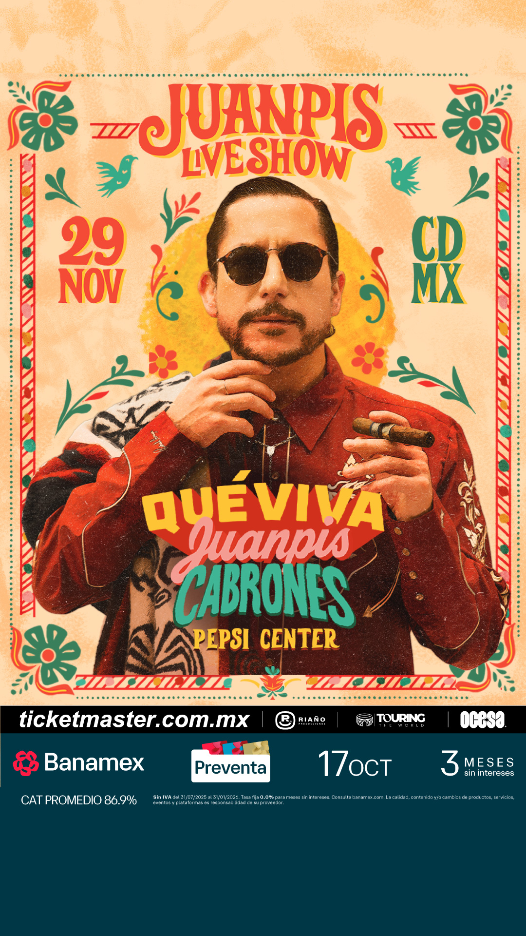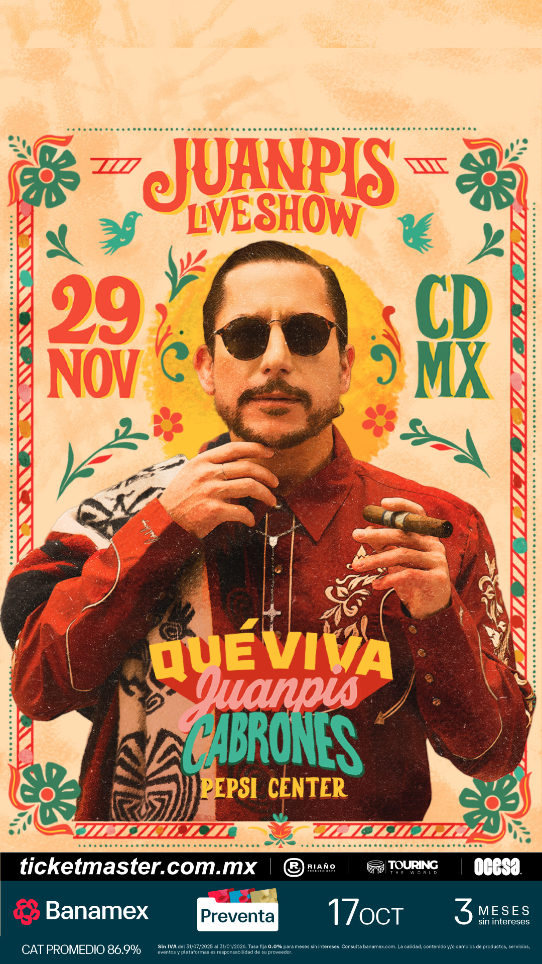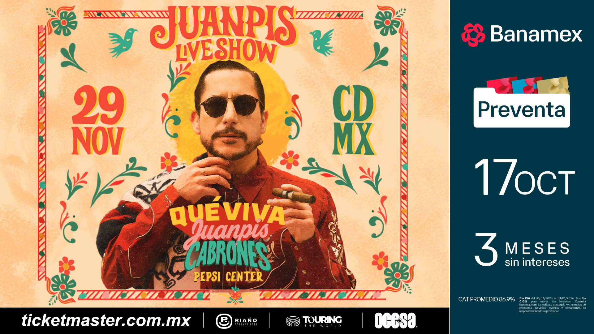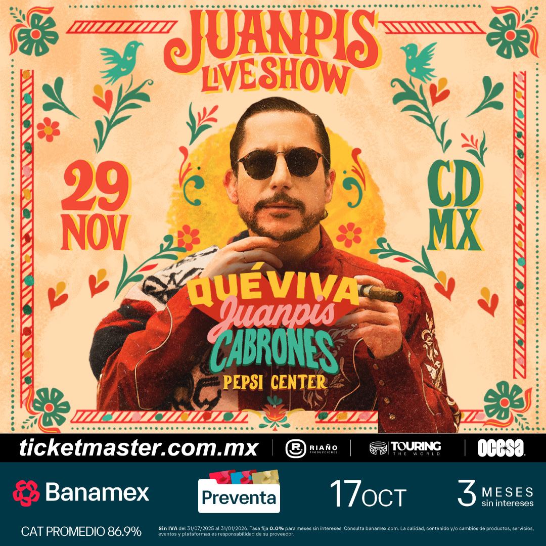El fenómeno de Juanpis está listo para conquistar México, porque la realidad latinoamericana no conoce de fronteras. Asegura tus boletos en la Preventa Banamex el próximo 17 de octubre o bien, durante la venta general el 18 de octubre a través de Ticketmaster o en la taquilla del inmueble.