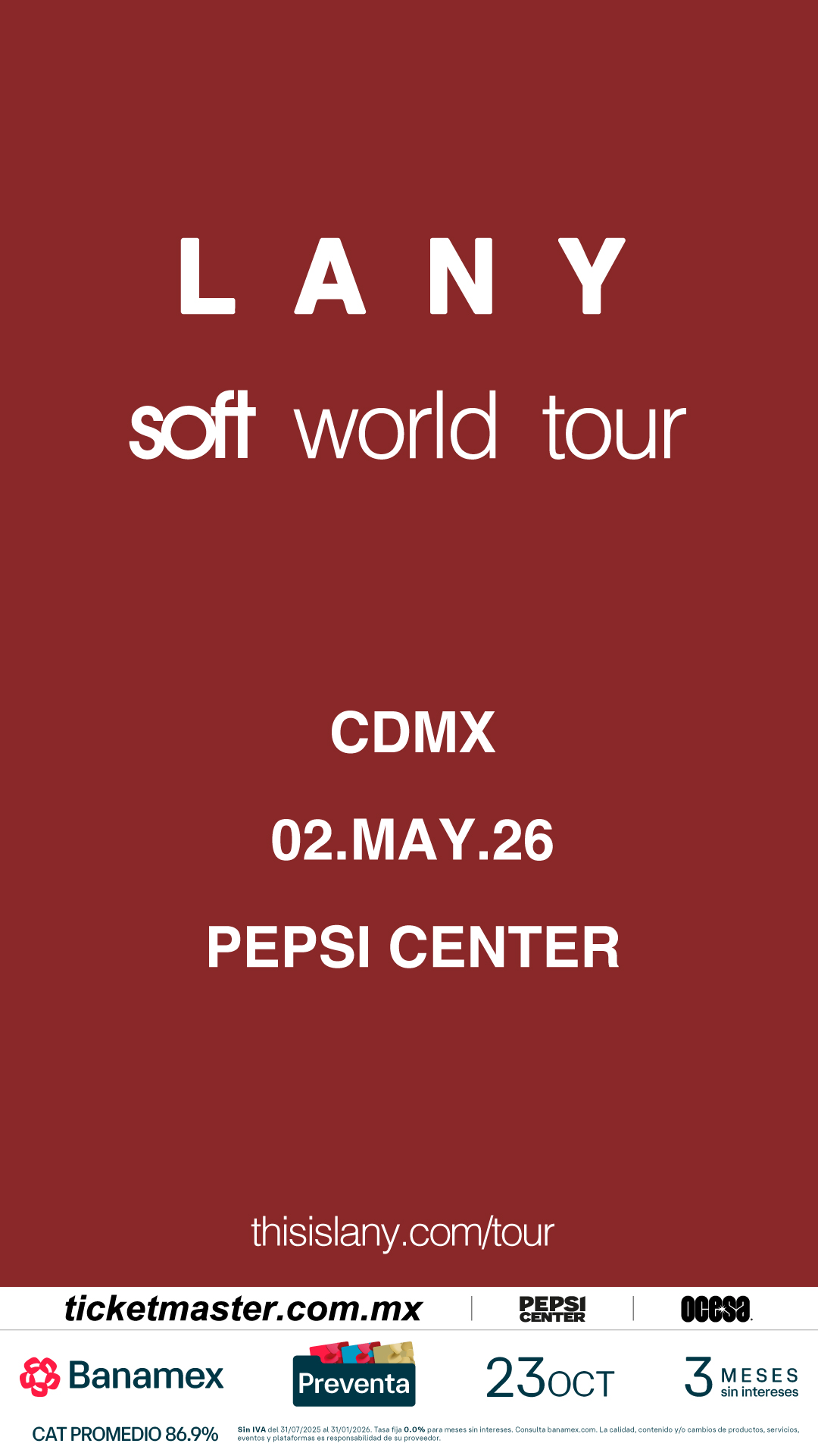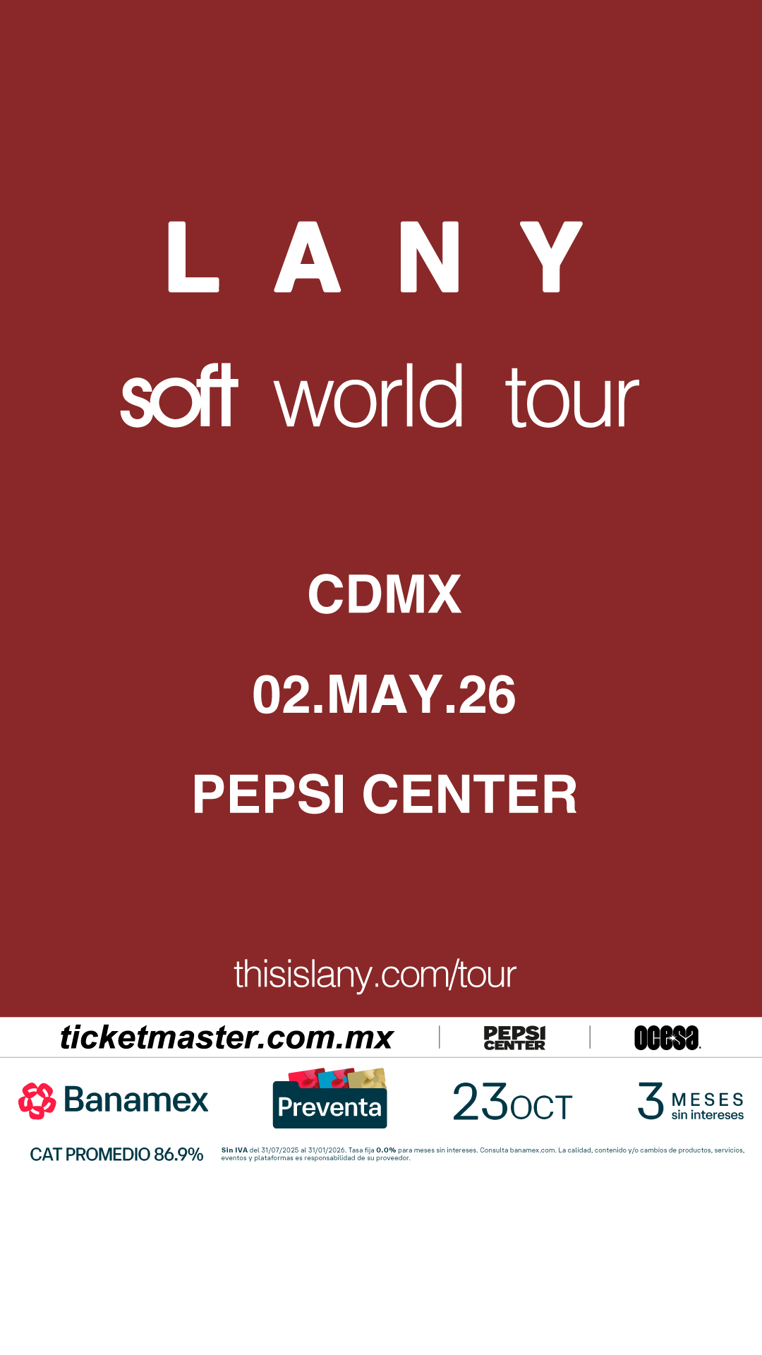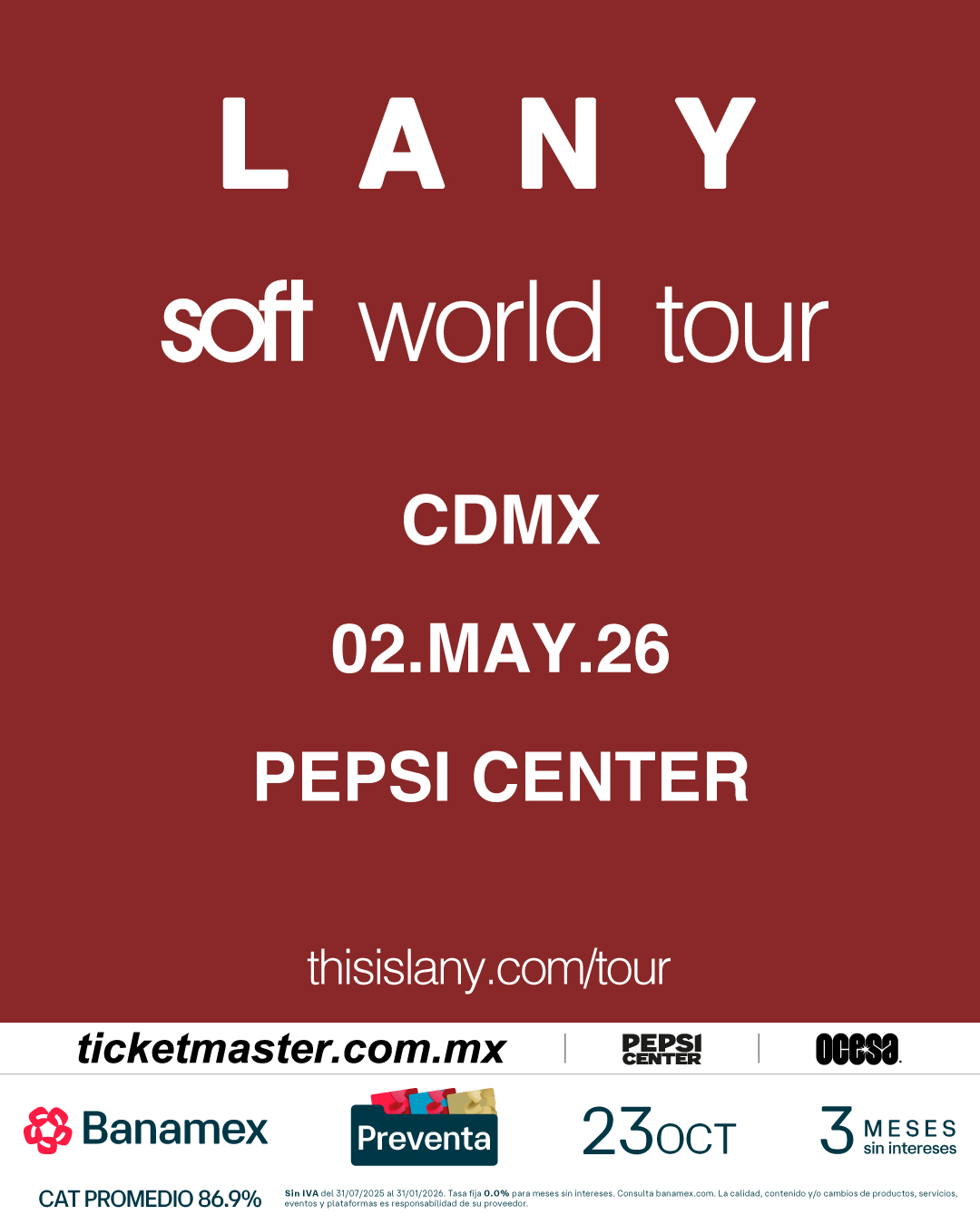 Hoy, la banda de indie-pop multiplatino LANY anunció su gira mundial Soft World Tour de 2026. Tras el lanzamiento de su aclamado álbum, Soft, la banda llevará el proyecto de 10 canciones a la carretera para los fans de Estados Unidos, Canadá, México, Reino Unido y Europa en treinta y ocho fechas. Las paradas principales incluyen el Intuit Dome de Los Ángeles, el Barclay’s Center de Brooklyn, el recién inaugurado The Pinnacle de Nashville y el OVO Arena Wembley de Londres, entre muchos otros.