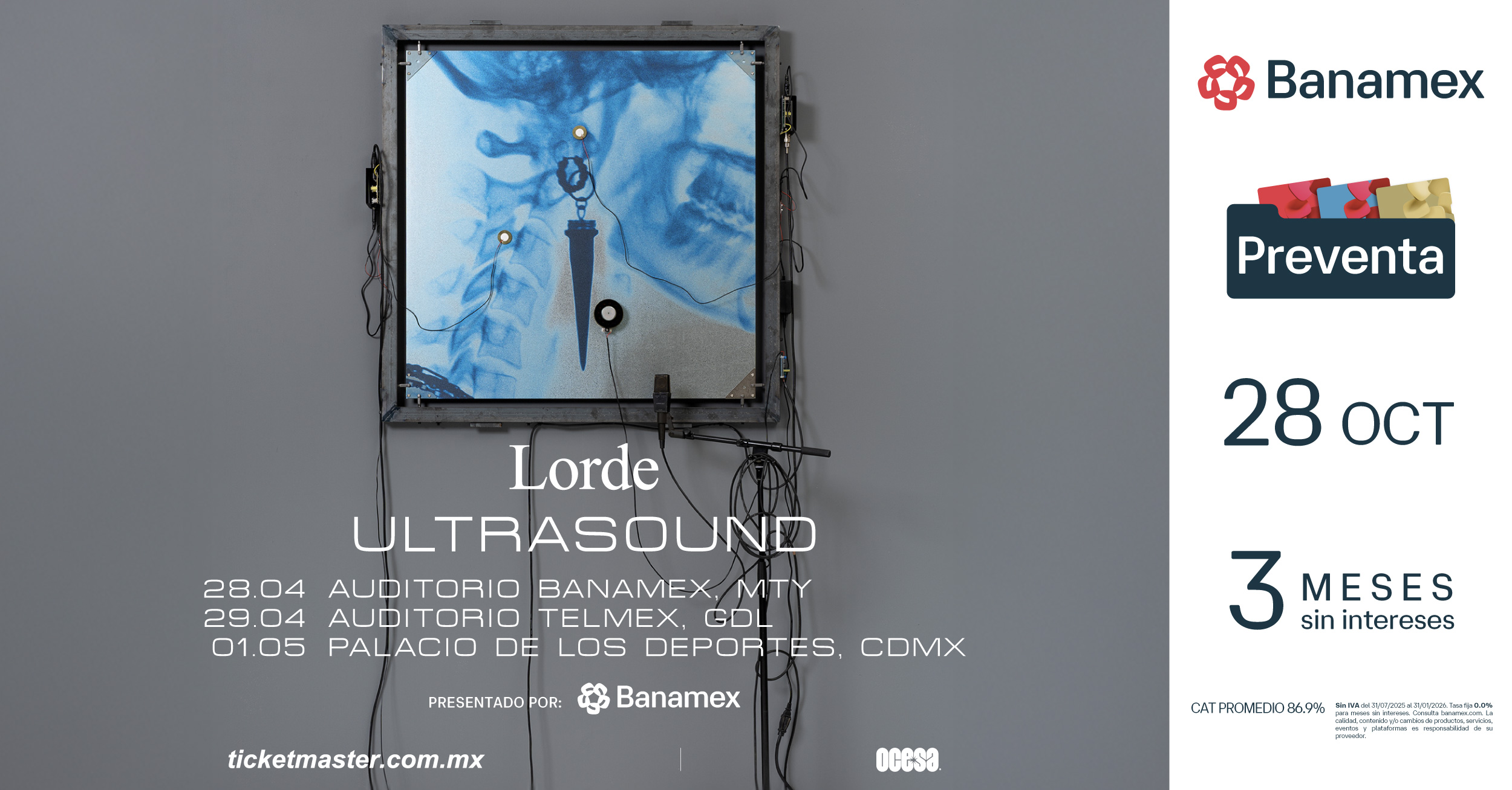 Esta gira de Lorde es (como siempre ha sido su música), extravagante, exótica y completamente revolucionaria. El espectáculo trae un repertorio de álbumes que marcaron toda una era como Pure Heroine, Melodrama y Solar Power, además de ofrecer interpretaciones de su más reciente álbum, Virgin. Con presentaciones arrasadoras en Estados Unidos, Francia, Alemania, Italia, Australia y más, el Ultrasound Tour es un verdadero viaje sensorial por el universo sonoro de Lorde, la artista que está redefiniendo el futuro del pop.