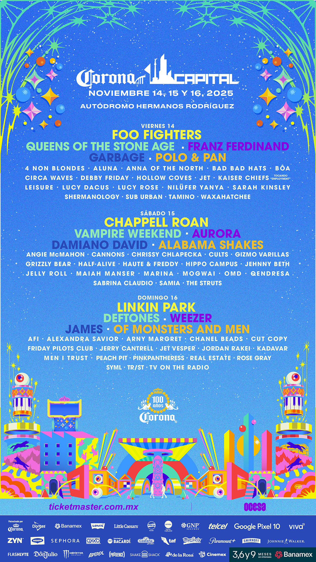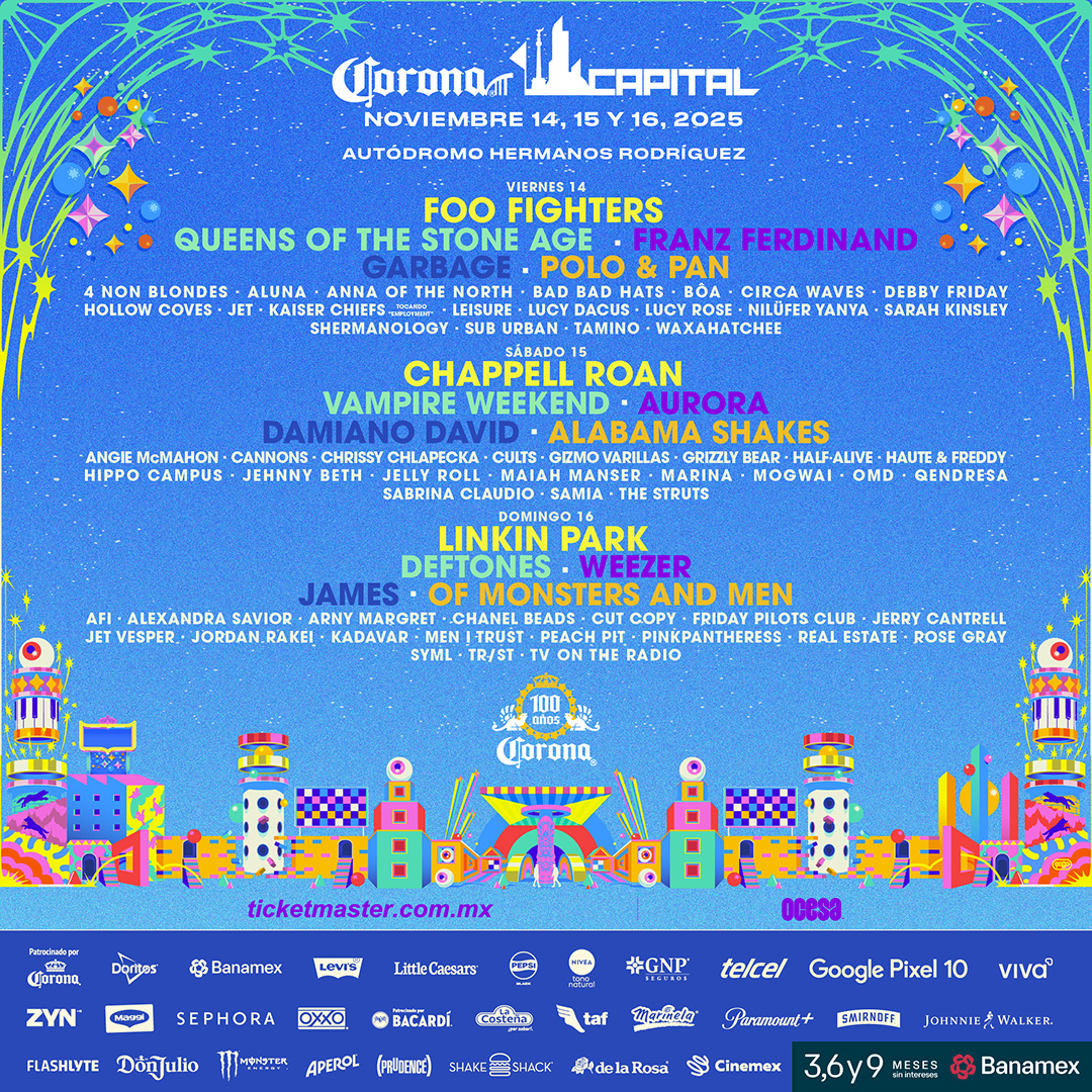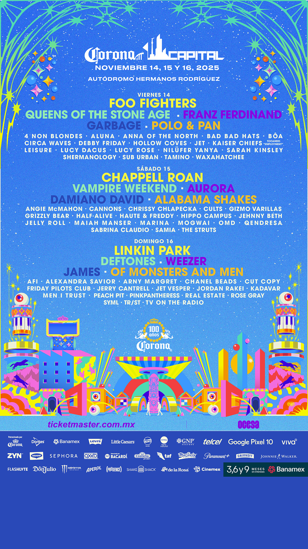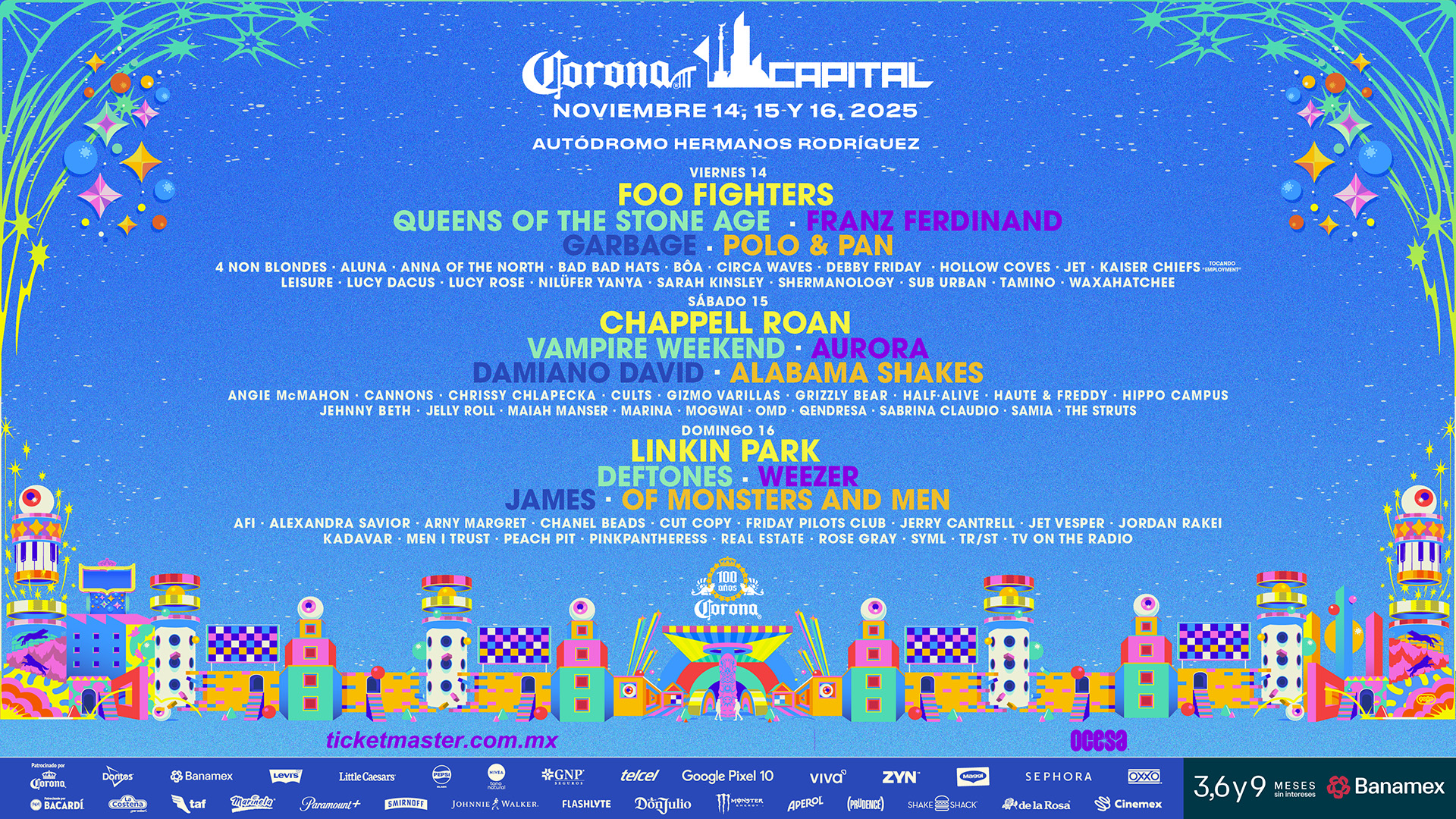 Corona Capital es el festival anual de música internacional más importante de México organizado por OCESA en la Curva 4 del Autódromo Hermanos Rodríguez de la CDMX desde 2010. Además de la música, el festival destaca por su enfoque en la sostenibilidad, contando con la certificación internacional ISO 20121, además, año con año promueve la inclusión y accesibilidad, ofreciendo servicios para personas con discapacidad auditiva o movilidad reducida. Billie Eilish, The Strokes, Arctic Monkeys, My Chemical Romance y Paul McCartney son algunos de los artistas que han encabezado sus ediciones anteriores y este 2025 promete entregar una edición inolvidable de la mano de headliners como Foo Fighters, Chappell Roan y Linkin Park.