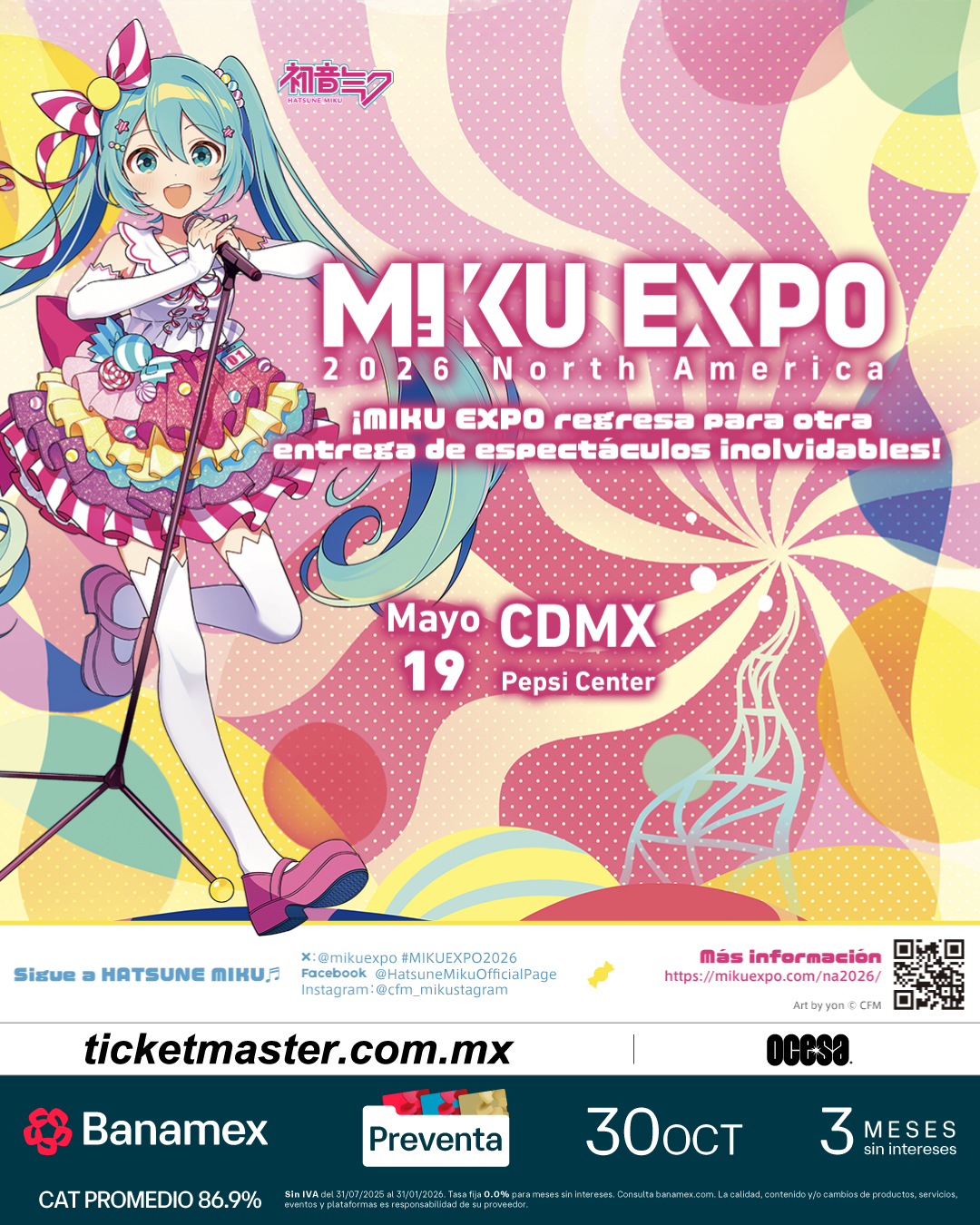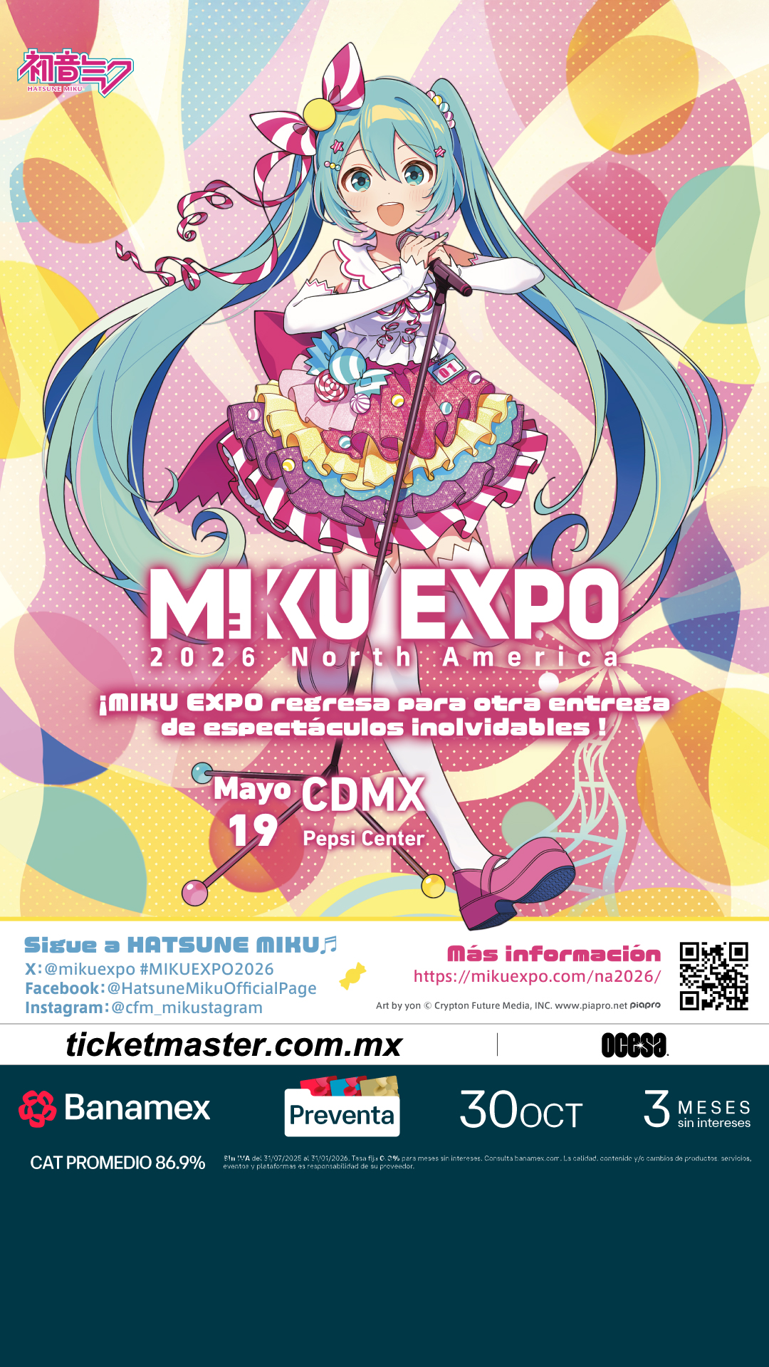 Prepárate para vivir una experiencia única donde la música, la tecnología y la cultura japonesa se fusionan en un solo espectáculo. La incomparable Hatsune Miku, la estrella virtual más famosa del planeta, llega al Pepsi Center para ofrecer un concierto inolvidable el próximo 19 de mayo de 2026. Con proyecciones en 3D, un show visual de última generación y la energía de miles de fans cantando al unísono, esta presentación promete ser el encuentro donde el futuro y la emoción conectan.