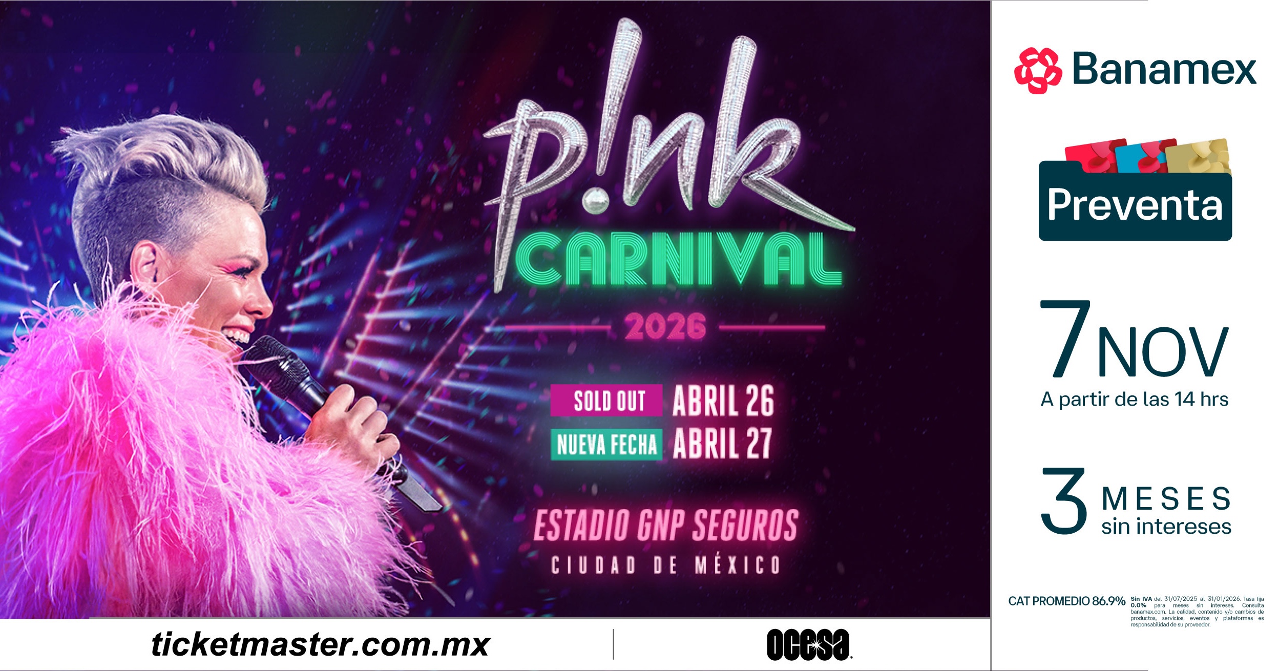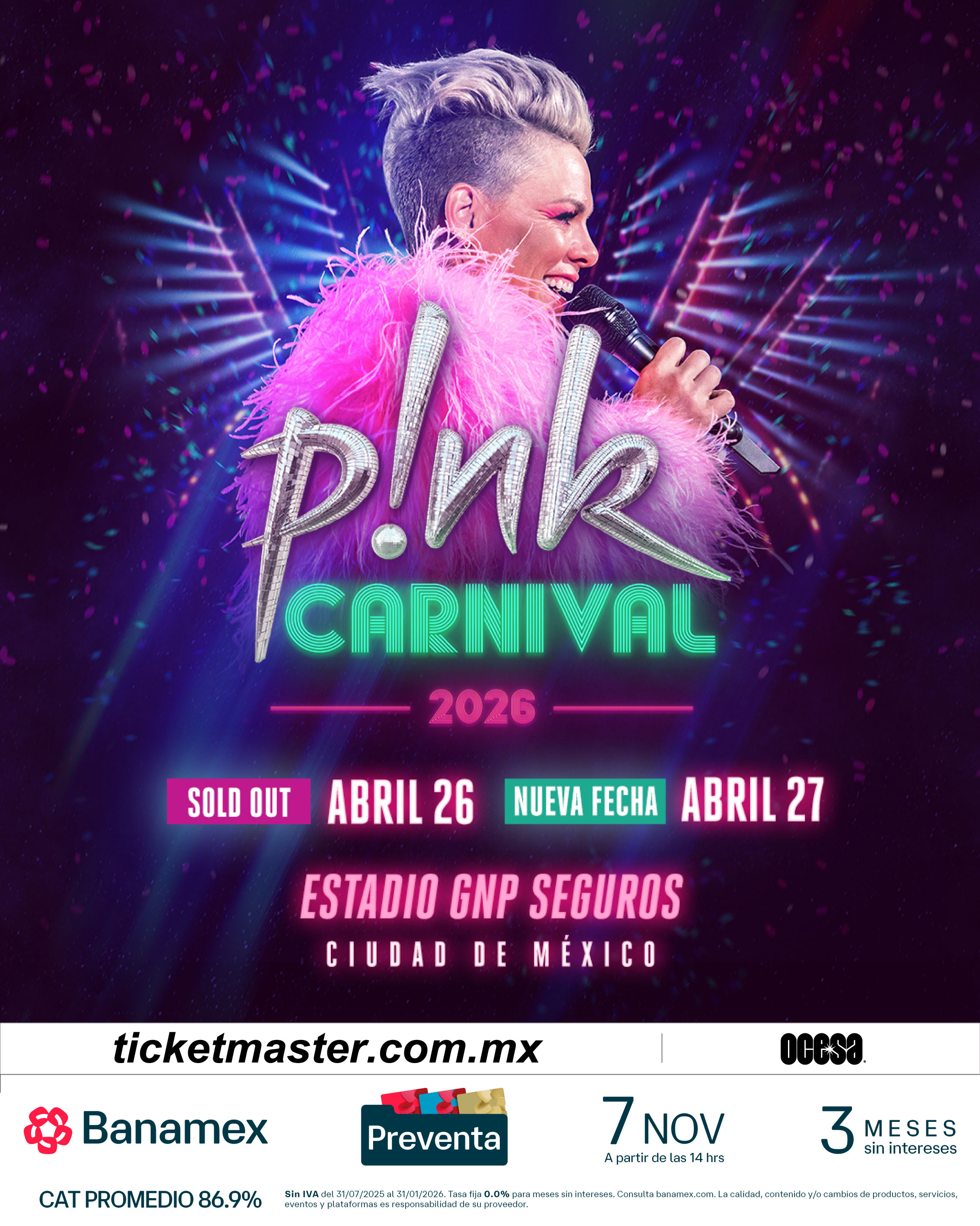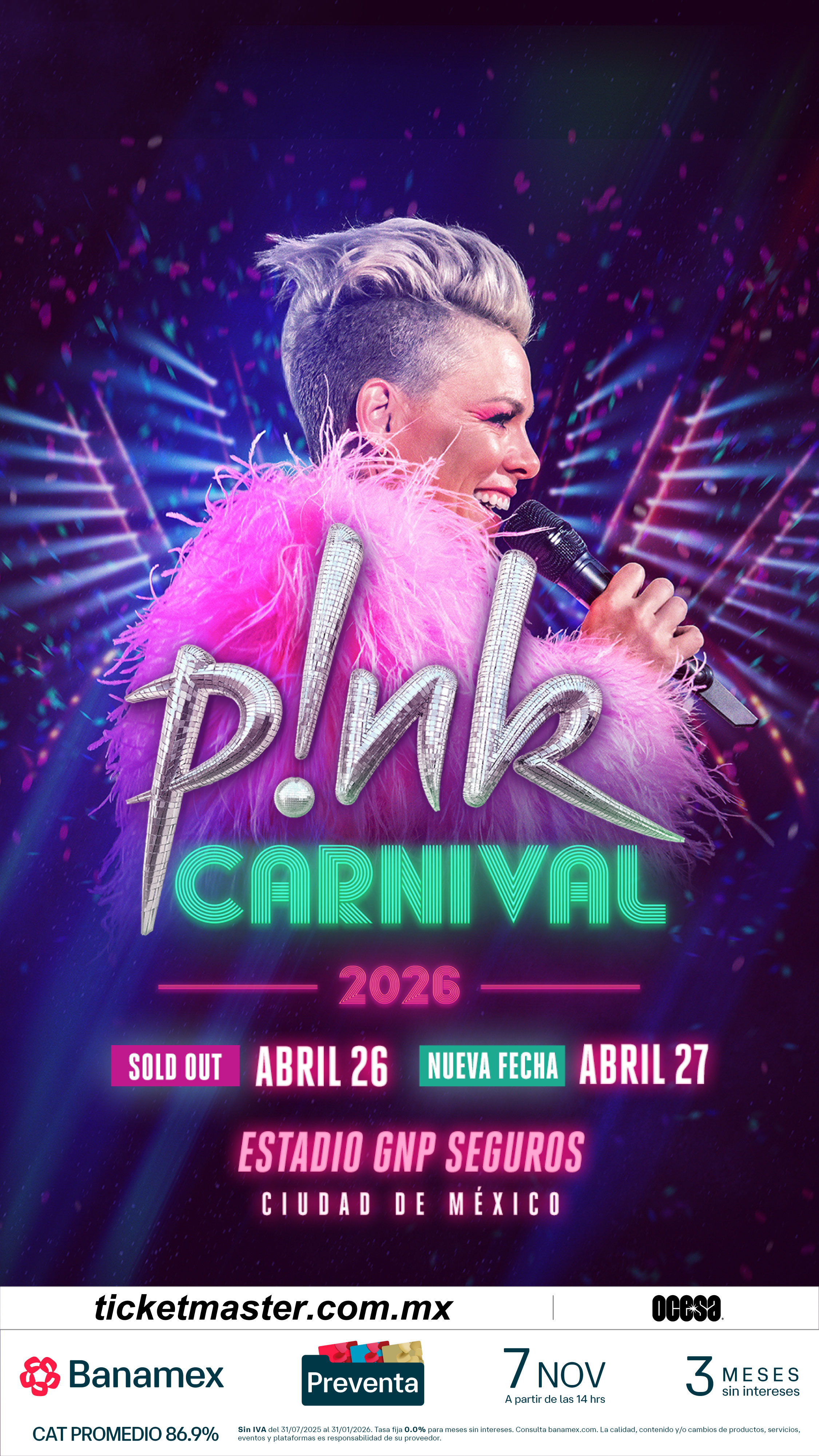 La cantante, intérprete, icono del pop internacional y ganadora de tres premios Grammy, P!NK, anuncia segunda fecha en México, tras el sold out de su primer concierto. La gira Carnival Tour llegará al Estadio GNP Seguros de la Ciudad de México, el próximo 27 de abril de 2026.