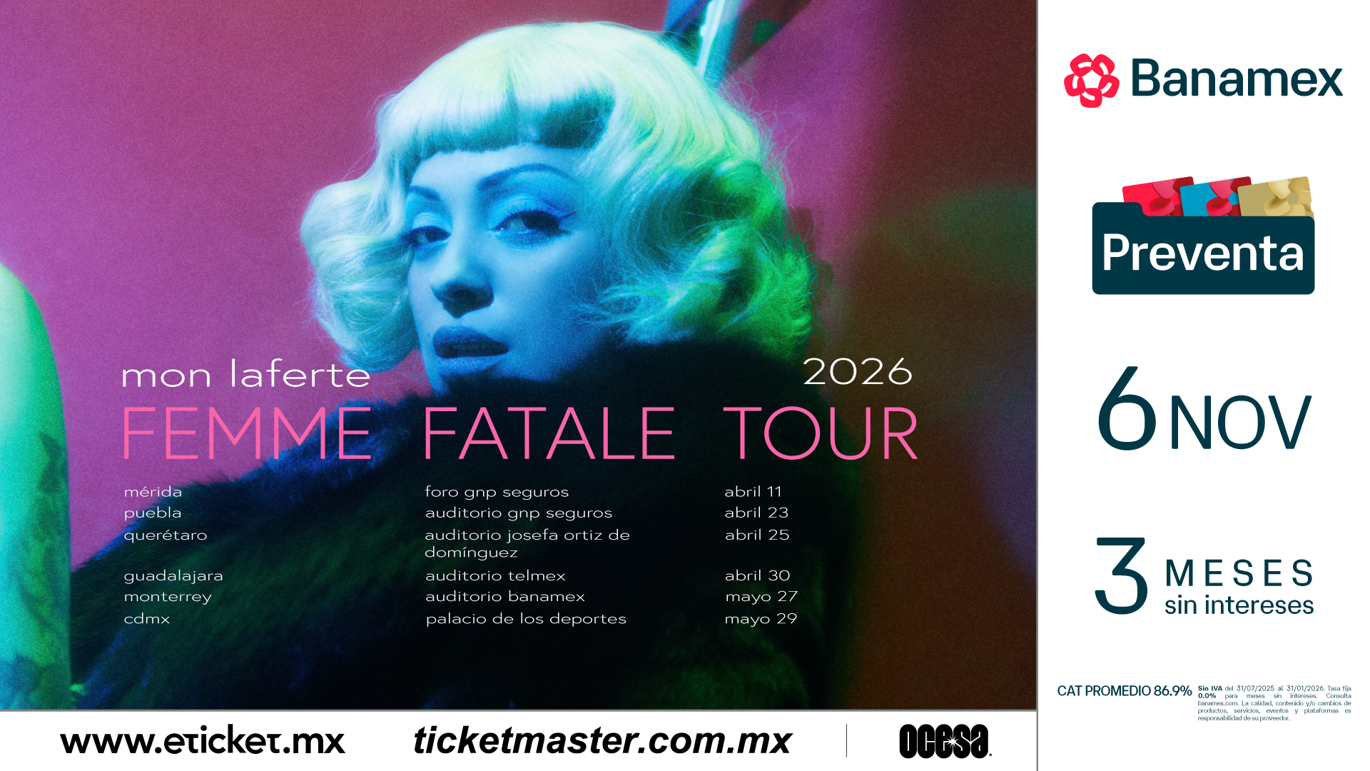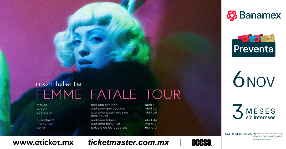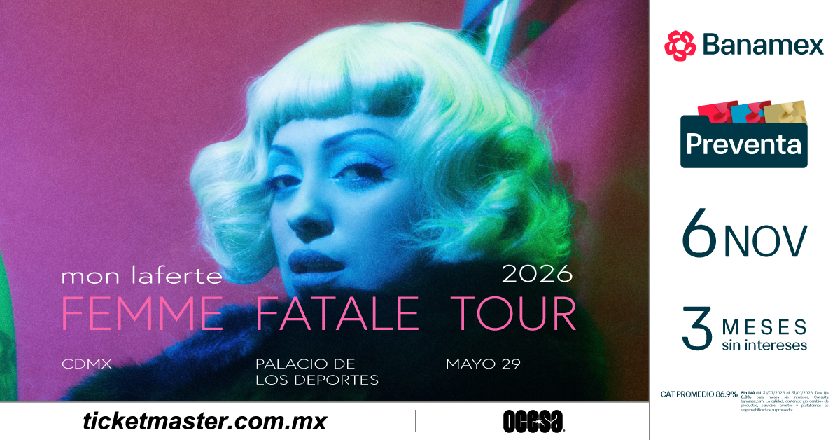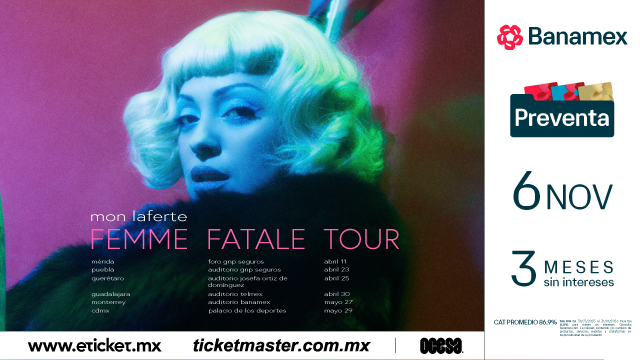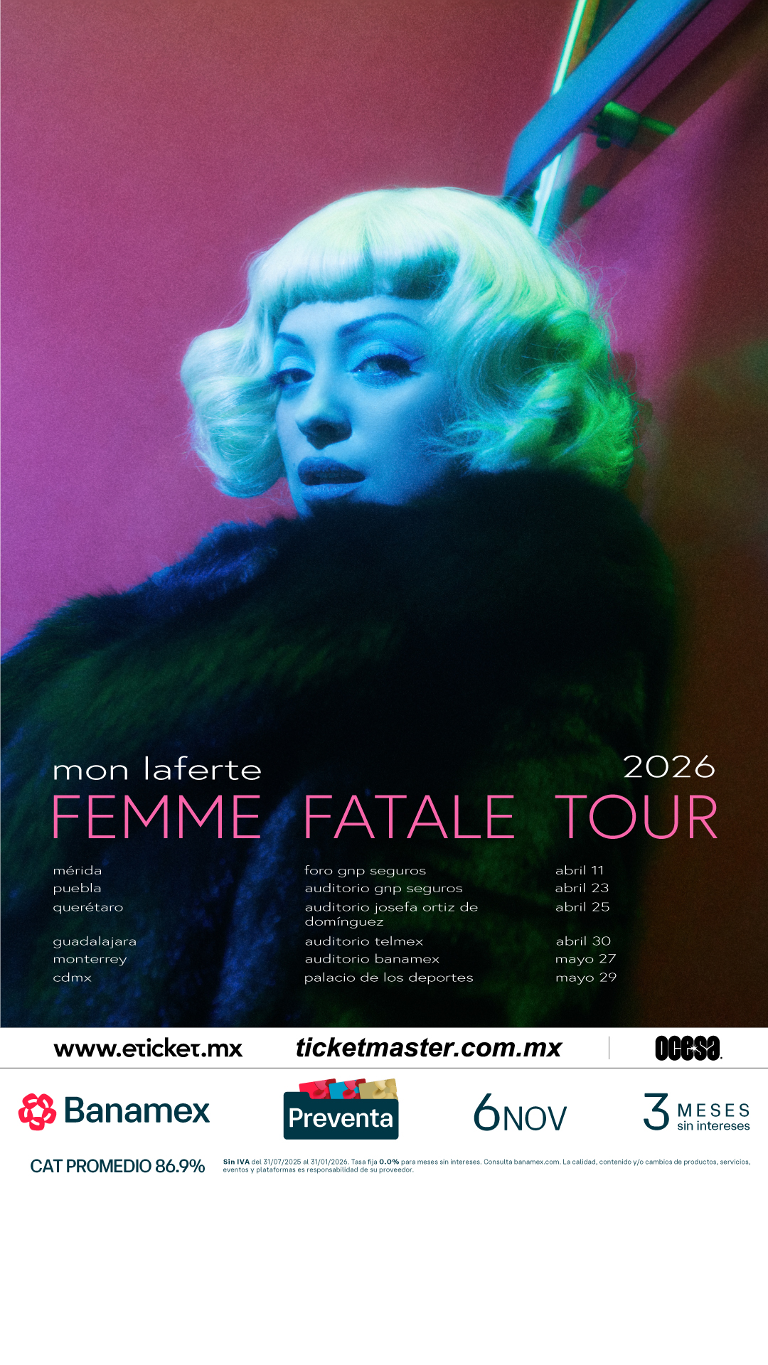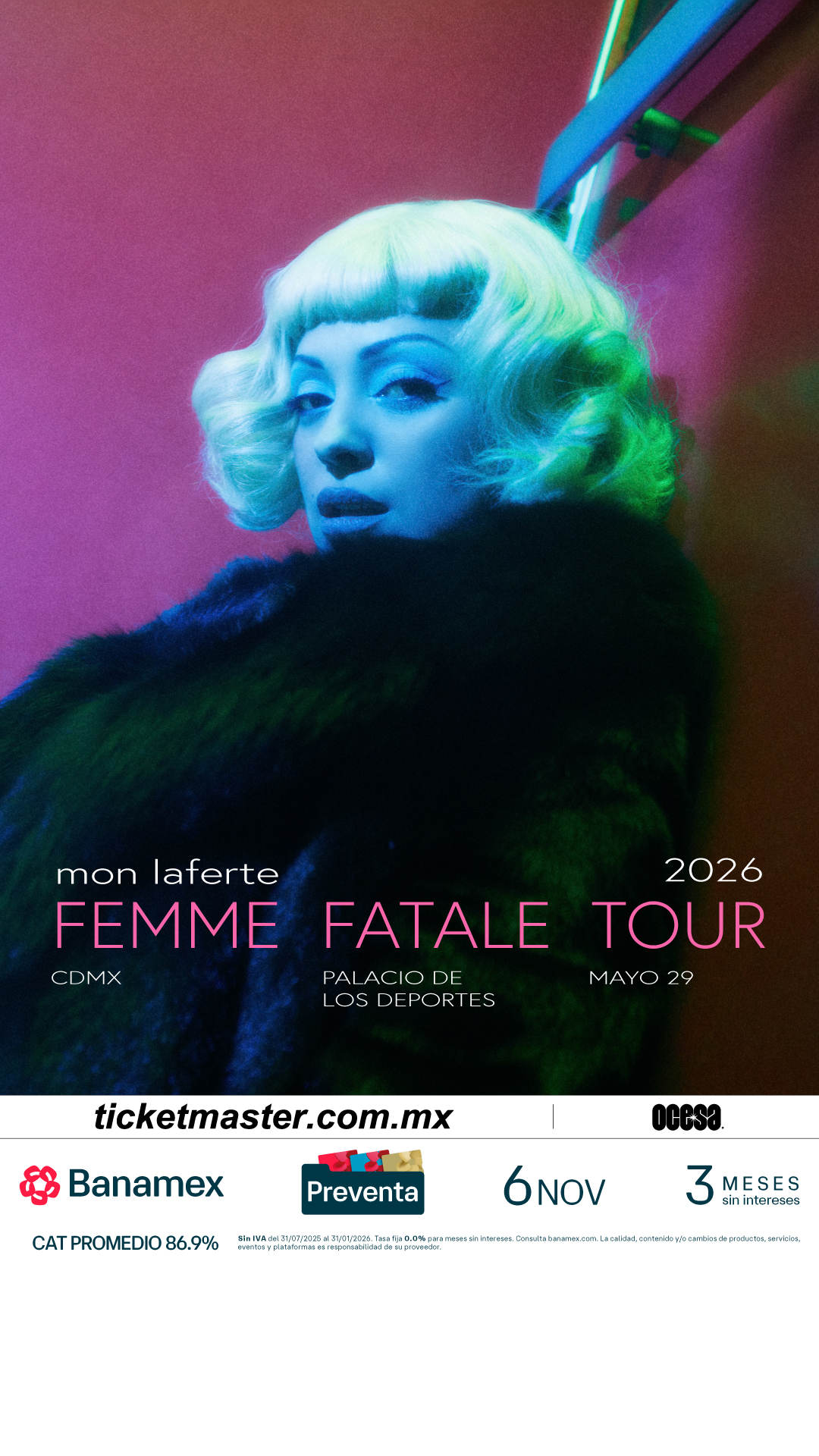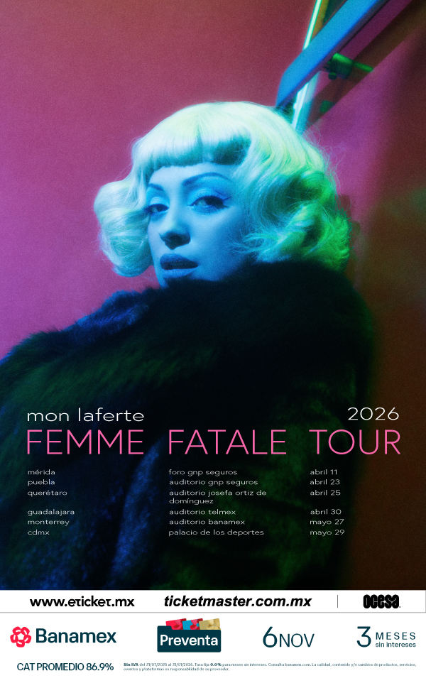 Mon Laferte, la cantante que ha creado toda una estética dentro de la música en español, regresa para 2026. La artista multipremiada y reconocida globalmente, se embarca en una nueva gira para promocionar su más reciente creación: Femme Fatale, un disco que ya se perfila entre los favoritos de la audiencia.