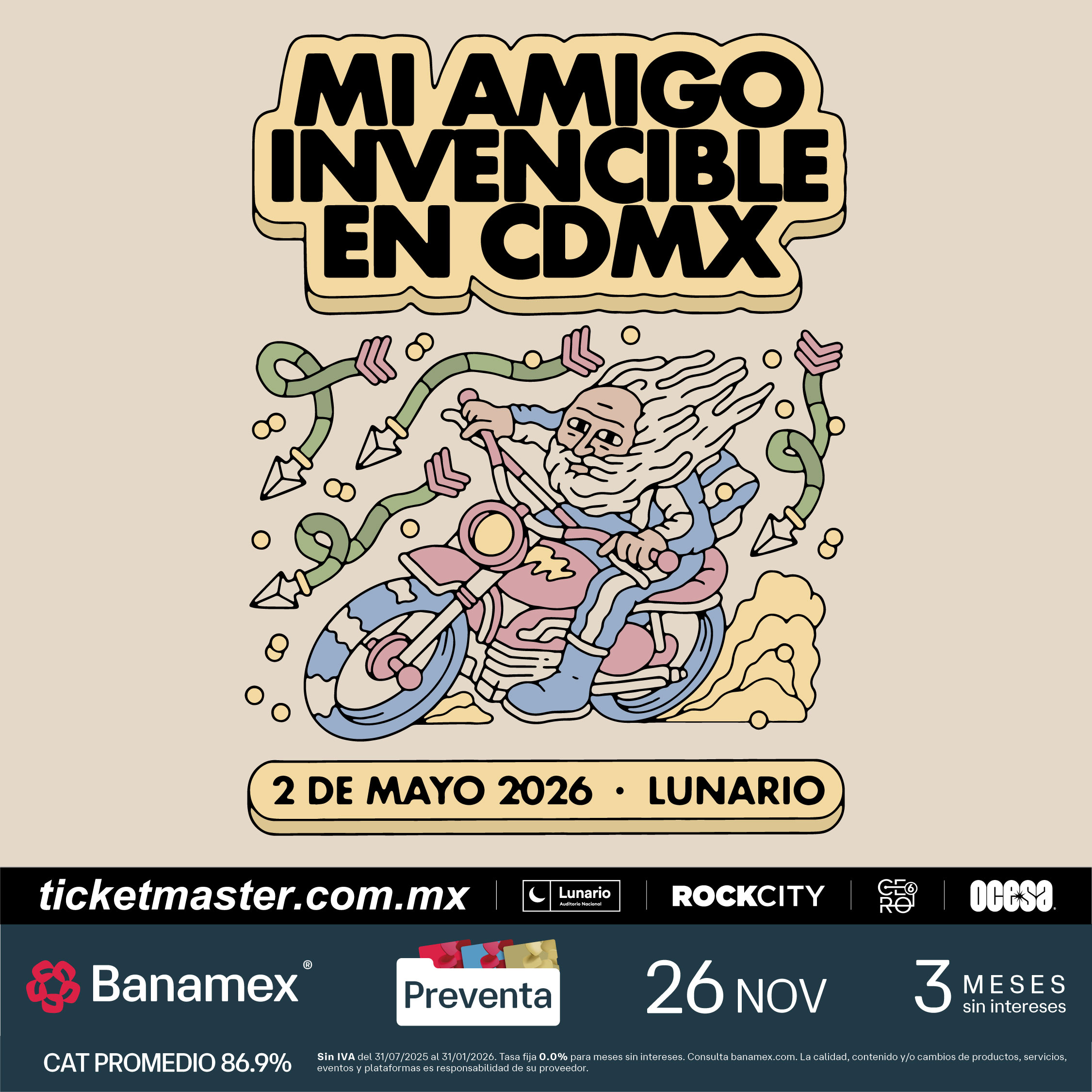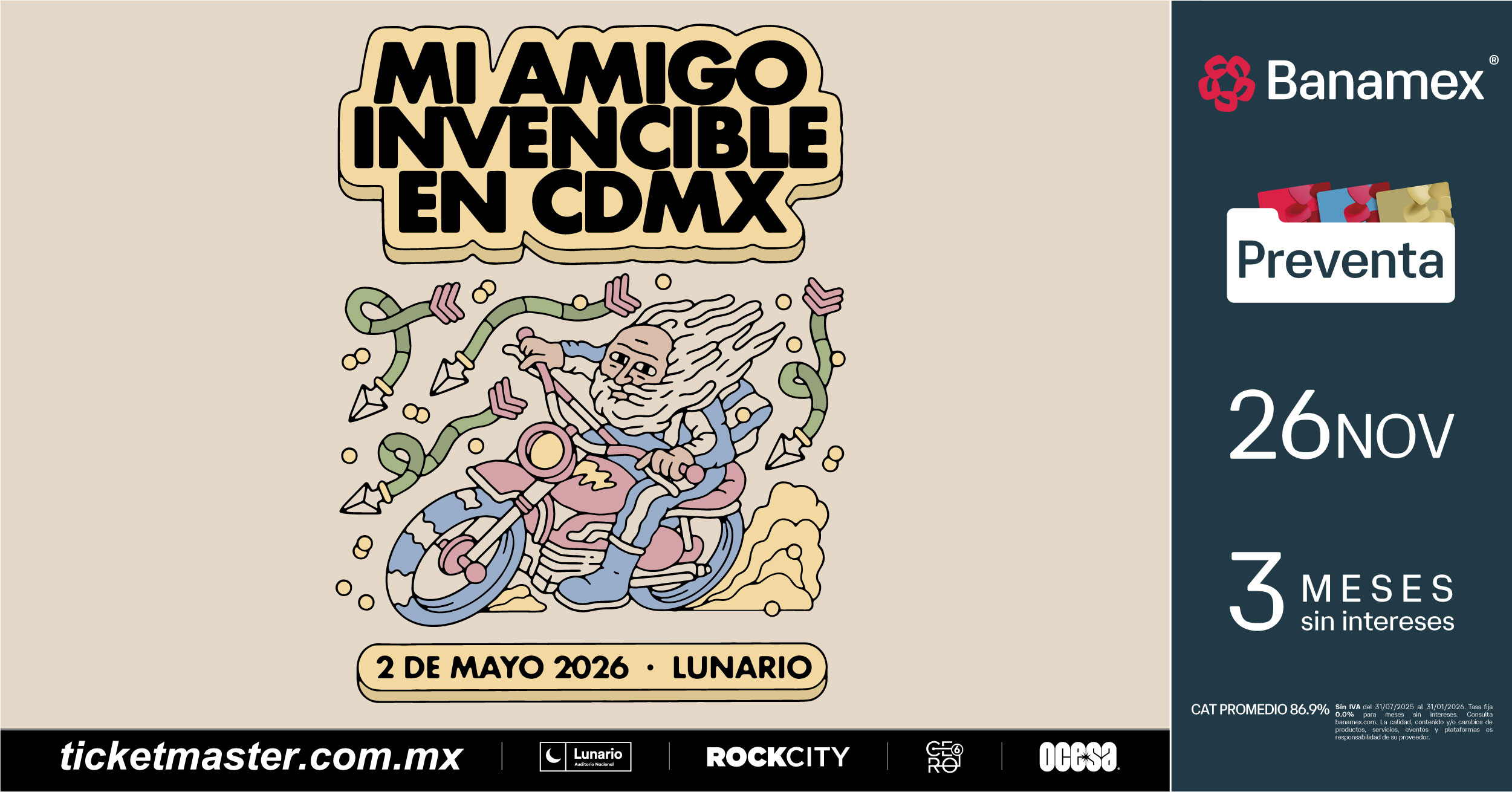 Preventa Banamex: 26 de noviembre, 11:00 a.m.