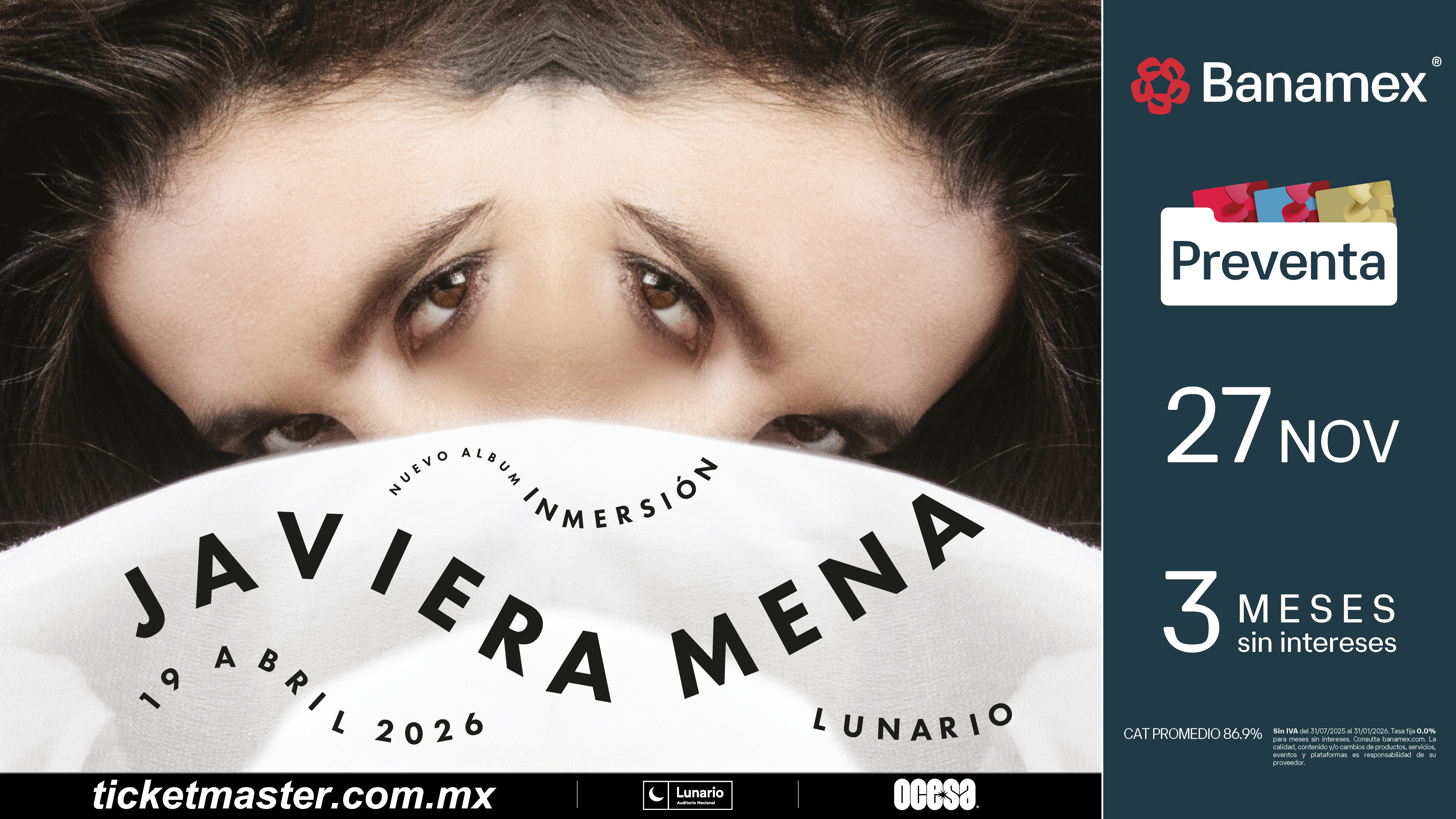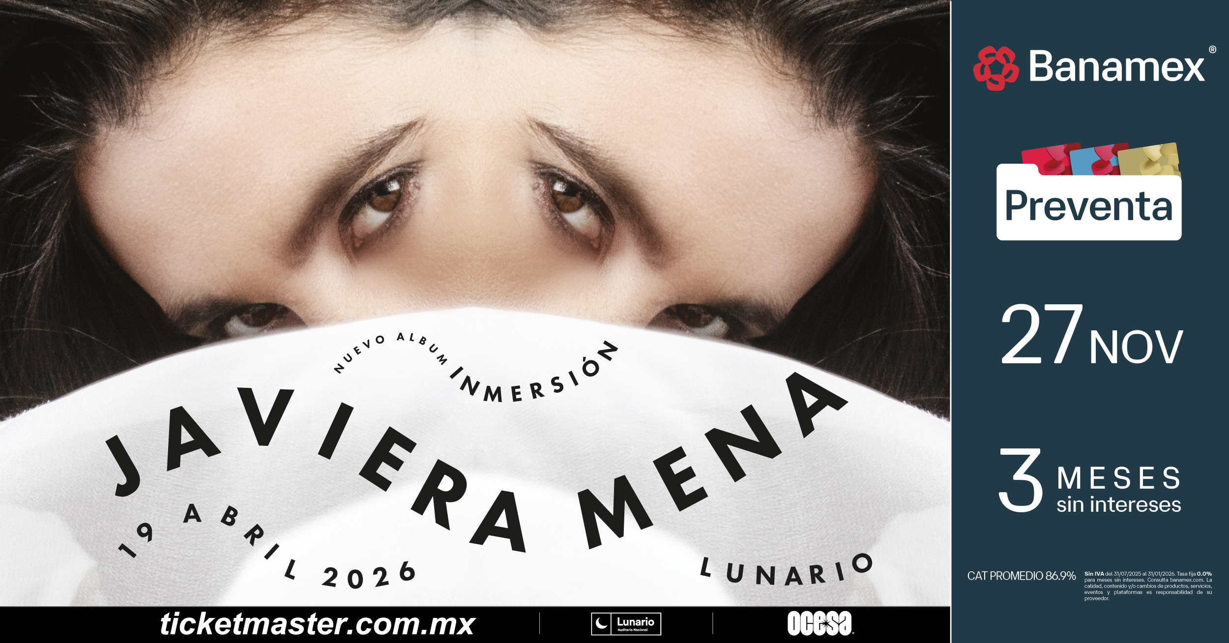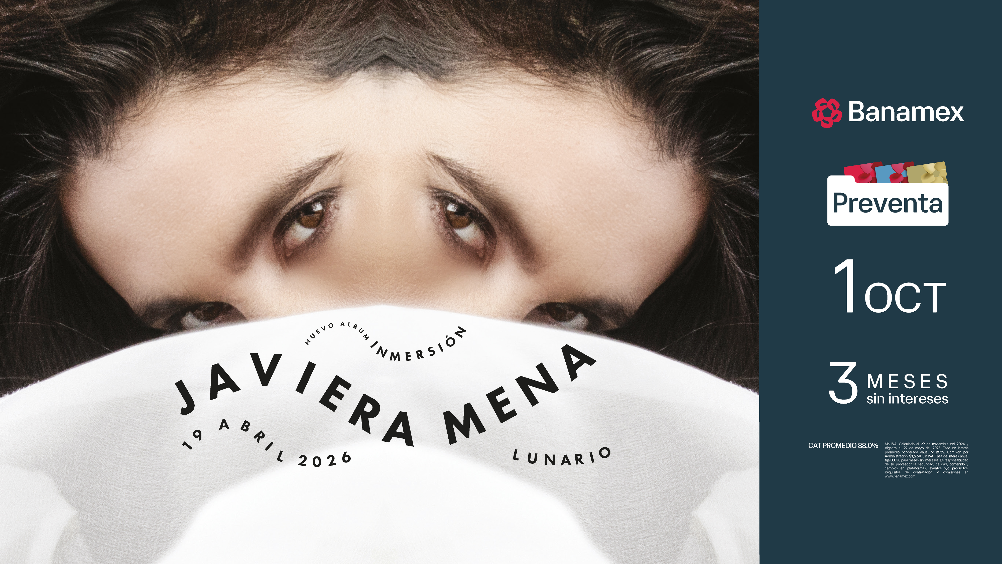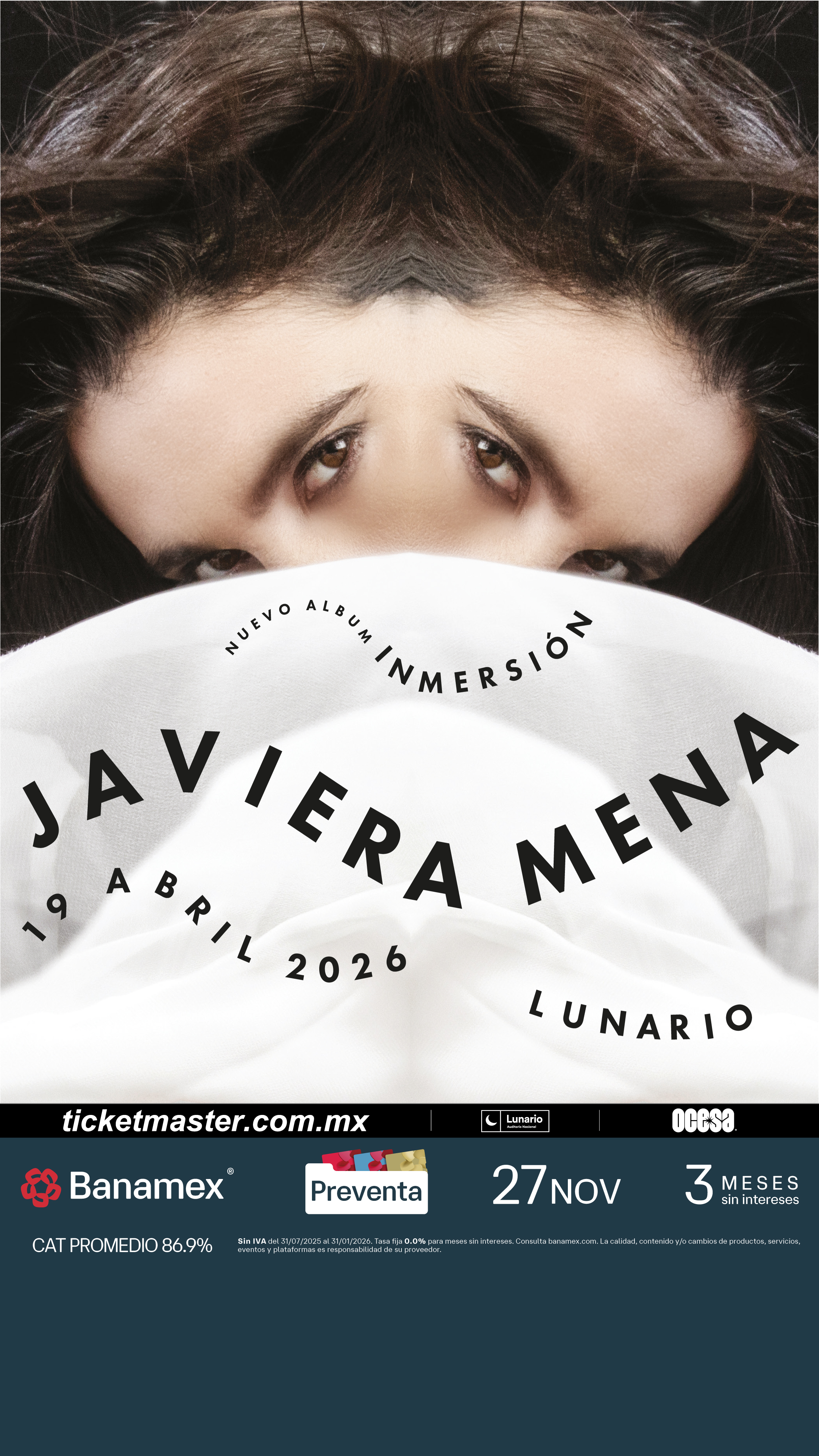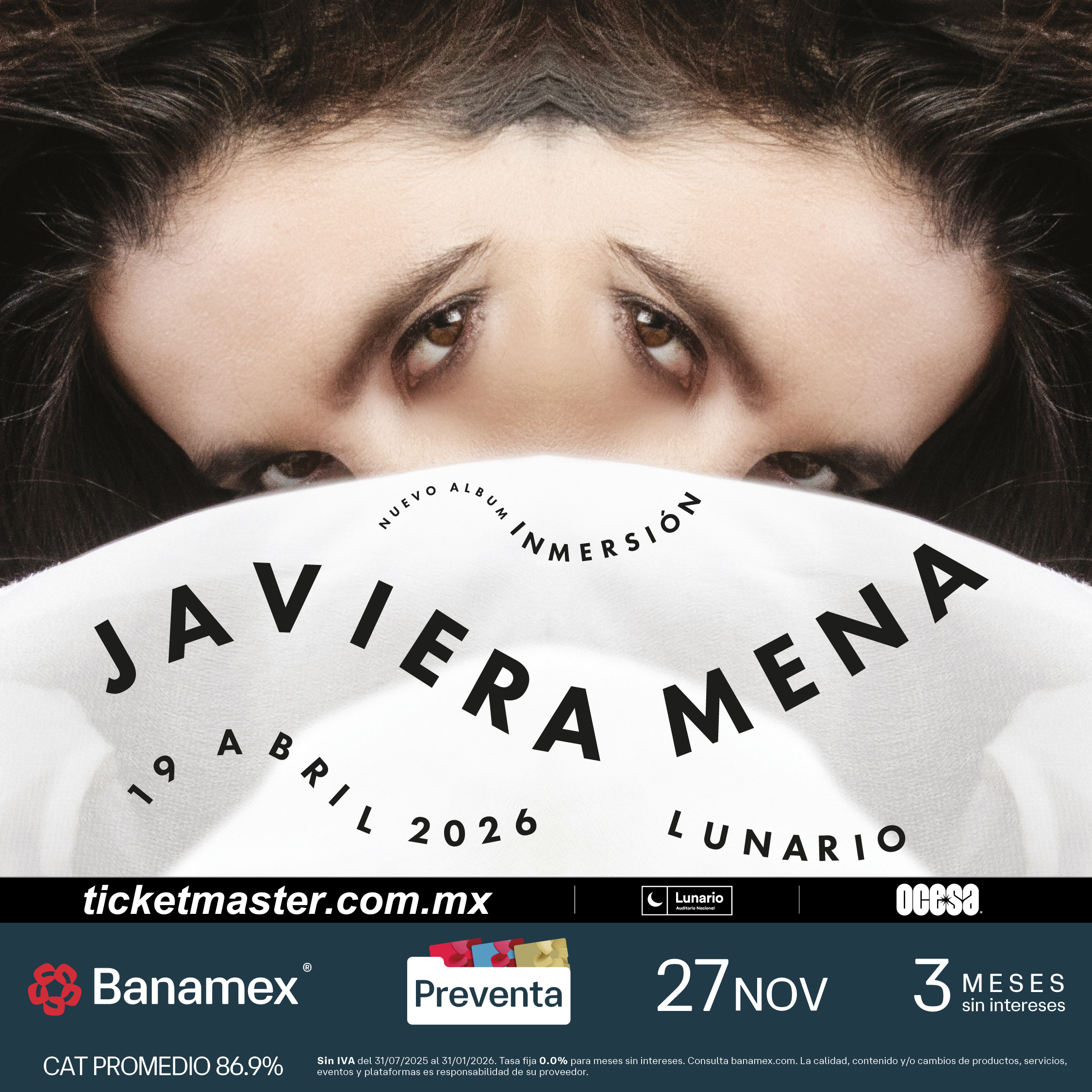 Hoy, Javiera Mena sigue reinventándose sin perder la esencia que la convirtió en una figura imprescindible del panorama musical iberoamericano: la artista que entendió que la música es un puente entre el cuerpo y el misterio. Asegura tus boletos durante la Preventa Banamex el 27 de noviembre o bien, en la Venta General que se liberará un día después, el 28 de noviembre a través de Ticketmaster o en la taquilla del inmueble.