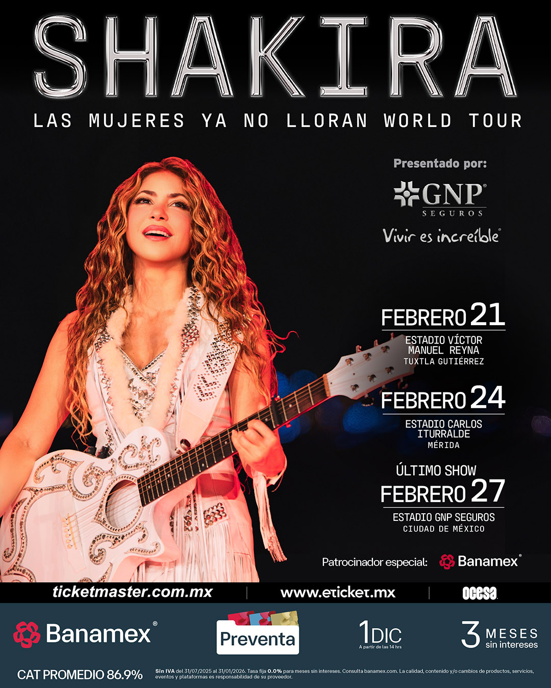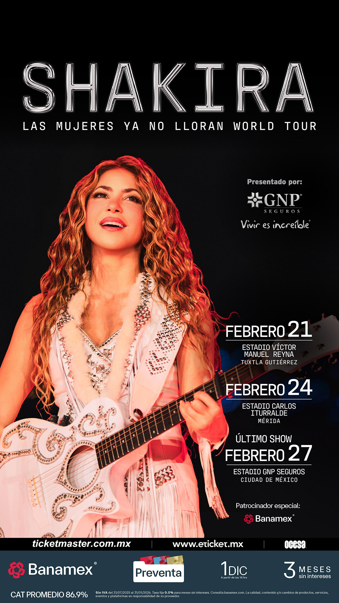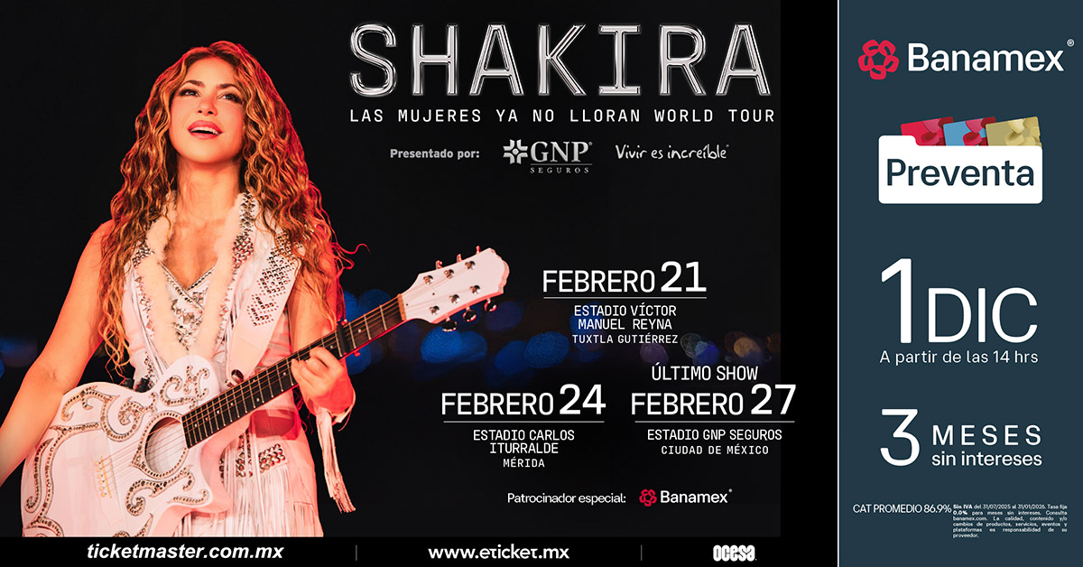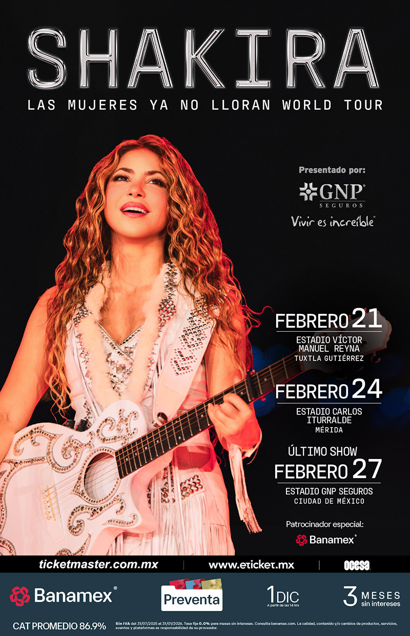 Ciudad de México, 26 de noviembre de 2025 – Después de un año arrasador en escenarios de todo el mundo y recibir el prestigioso reconocimiento de Billboard por La gira latina más taquillera de una mujer en la historia, Shakira anuncia nuevas fechas en México con su monumental Las Mujeres Ya No Lloran World Tour.