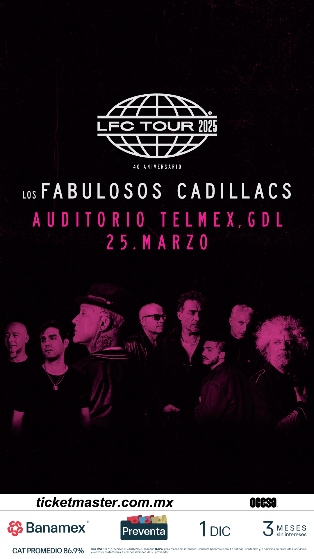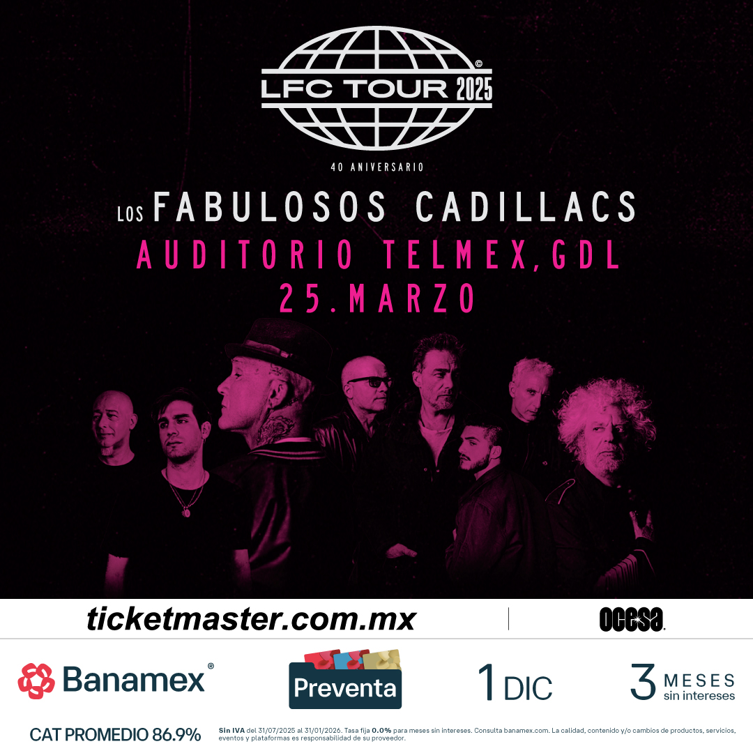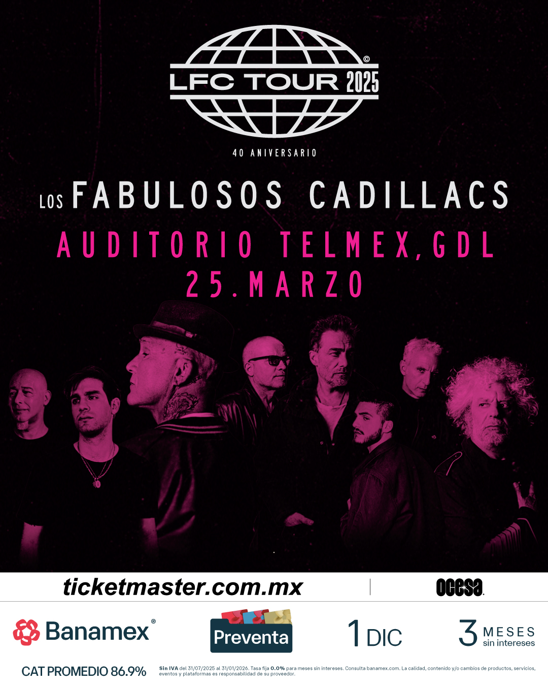 Después de confirmar su regreso a la gran selva de asfalto para la vigésimo sexta edición del Vive Latino, Los Fabulosos Cadillacs han decidido ampliar su estadía en nuestro país. Los argentinos saben que el público de la Perla Tapatía es uno de los más grandes y apasionados, por lo que visitarán Guadalajara para un show monumental el próximo 25 de marzo de 2026 en el Auditorio Telmex.