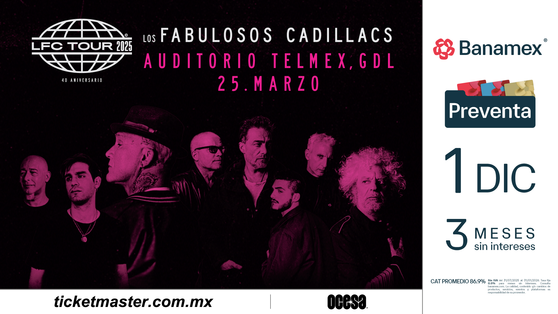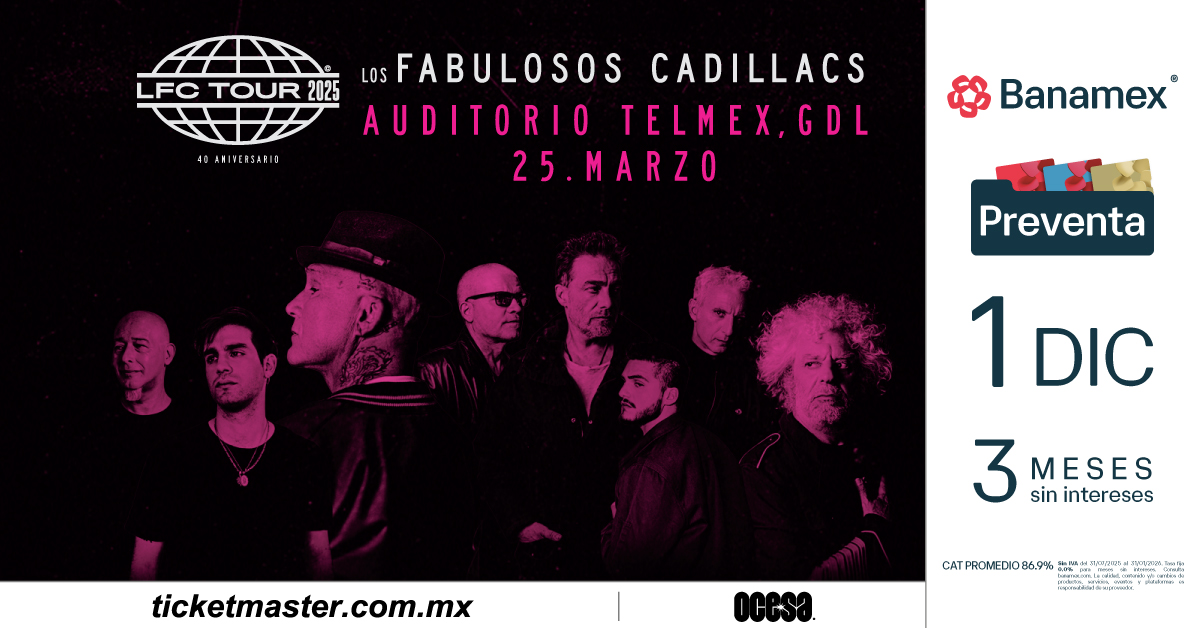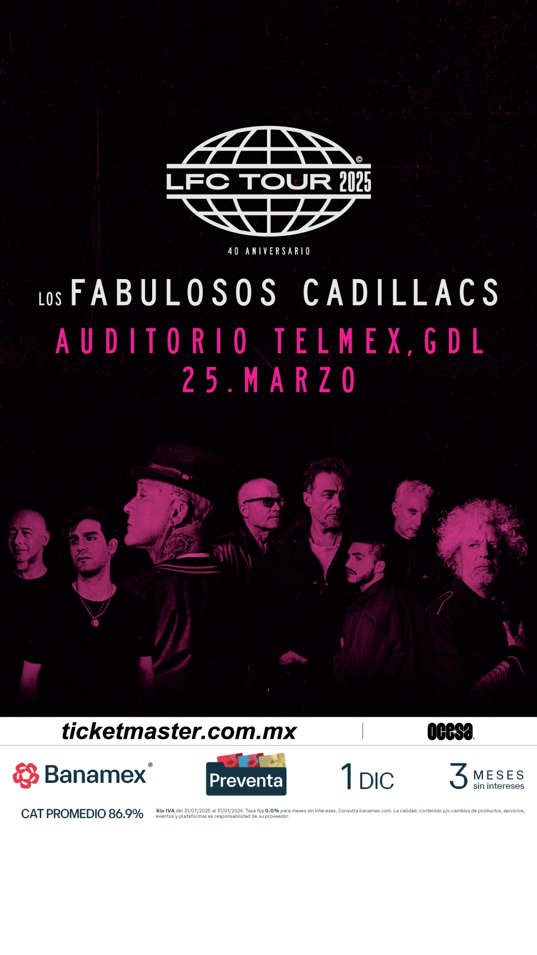 Después de confirmar su regreso a la gran selva de asfalto para la vigésimo sexta edición del Vive Latino, Los Fabulosos Cadillacs han decidido ampliar su estadía en nuestro país. Los argentinos saben que el público de la Perla Tapatía es uno de los más grandes y apasionados, por lo que visitarán Guadalajara para un show monumental el próximo 25 de marzo de 2026 en el Auditorio Telmex.