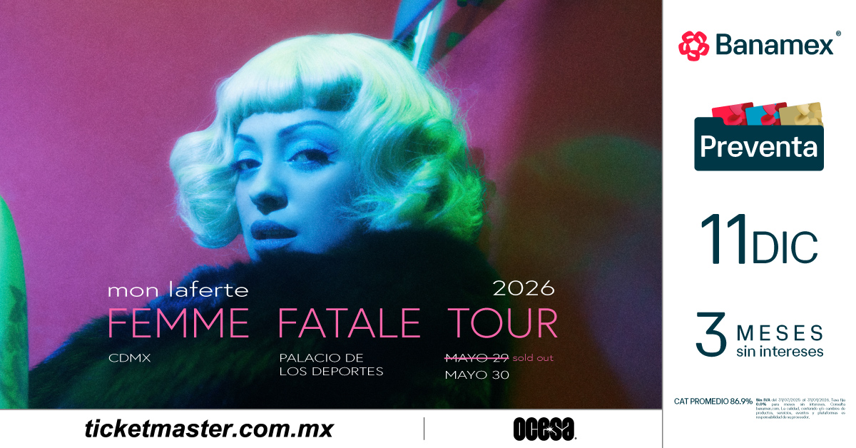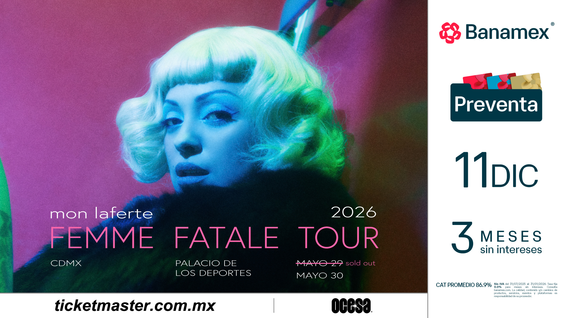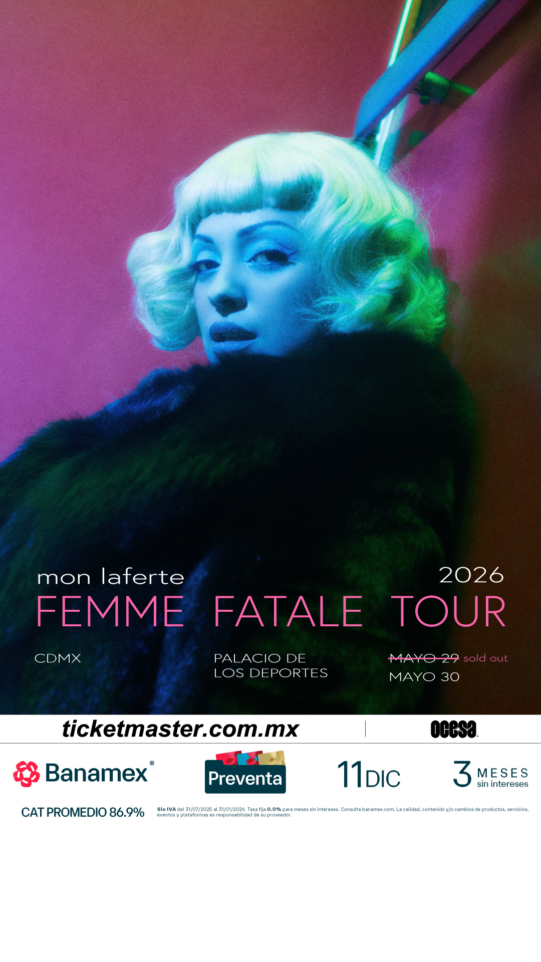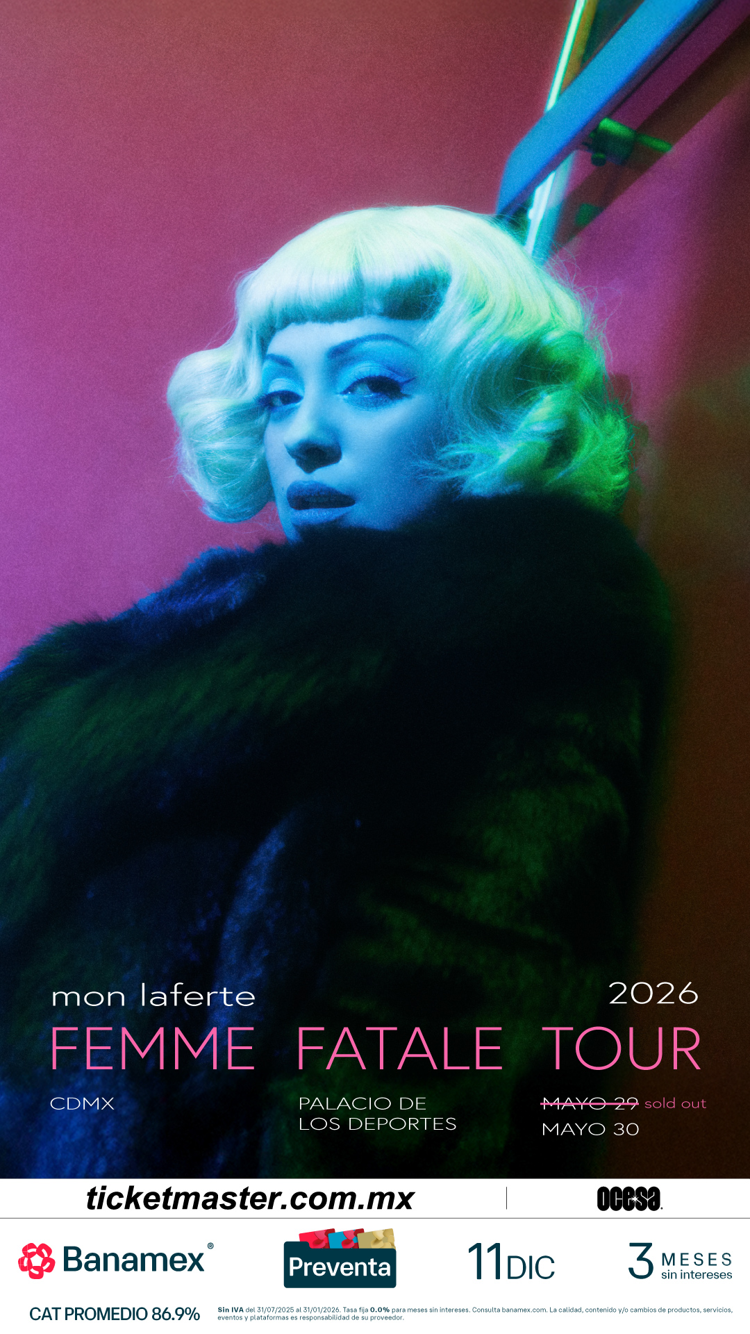 Antes de iniciar su gira latinoamericana, Mon volverá a Viña del Mar —la ciudad que la vio nacer— para presentarse el 26 de febrero en el icónico Festival de Viña del Mar, previo a conquistar nuevamente la capital mexicana con el magnetismo de su era, Femme Fatale.