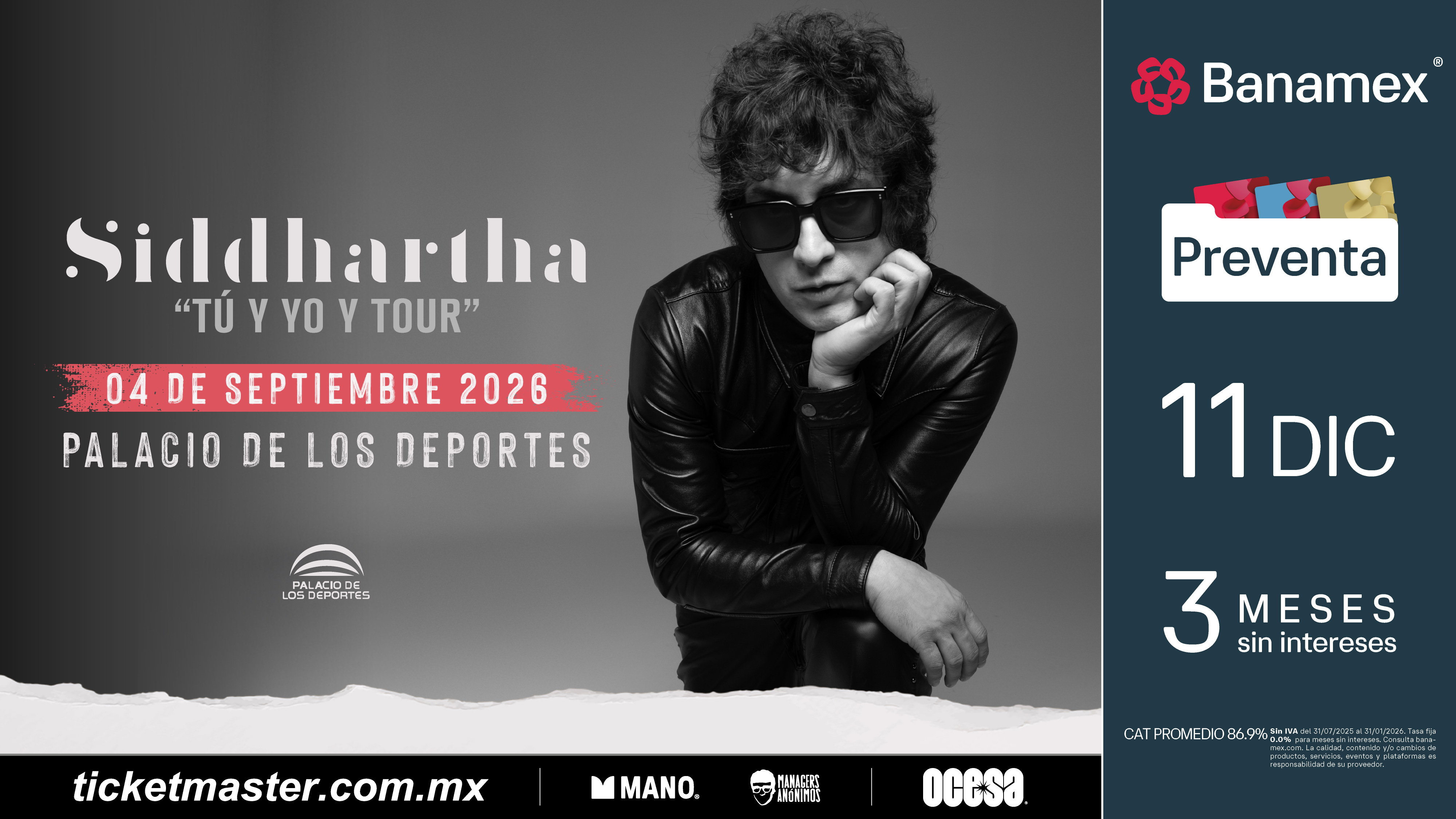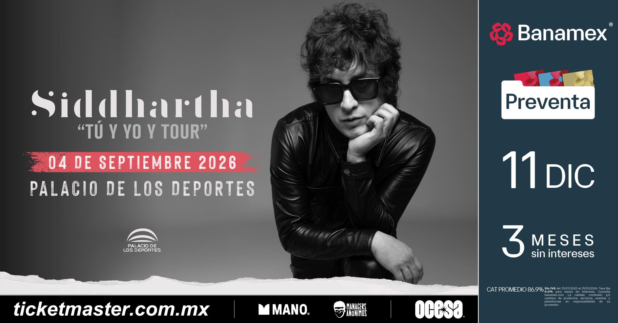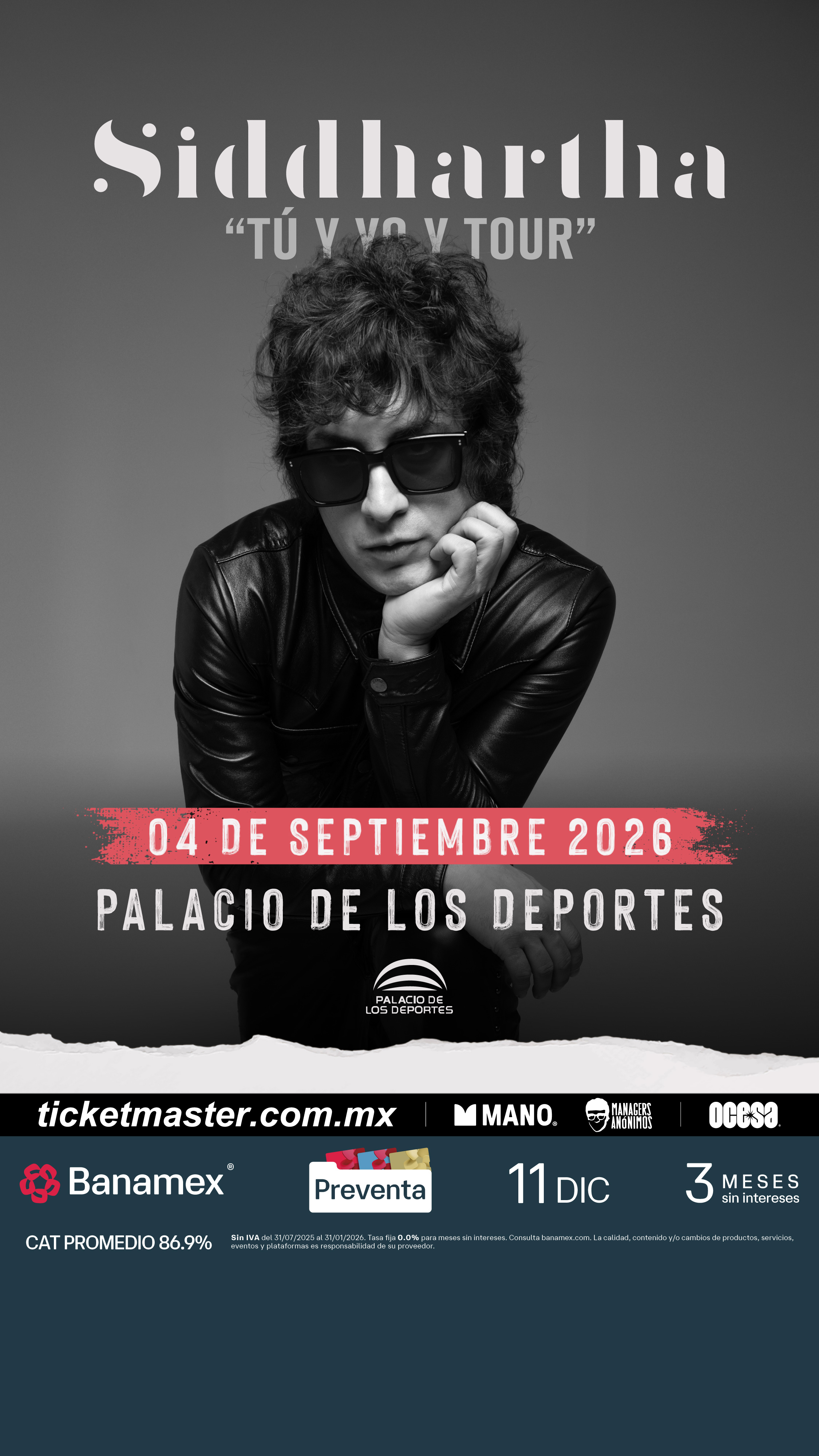 Si quieres ser de los primeros en escuchar el material inédito del artista y disfrutar de una noche de conexión pura con canciones que ya son himnos, tienes que estar en el Palacio de los Deportes. ¡Corre por tus boletos y sé parte de esta nueva era musical de Siddhartha!