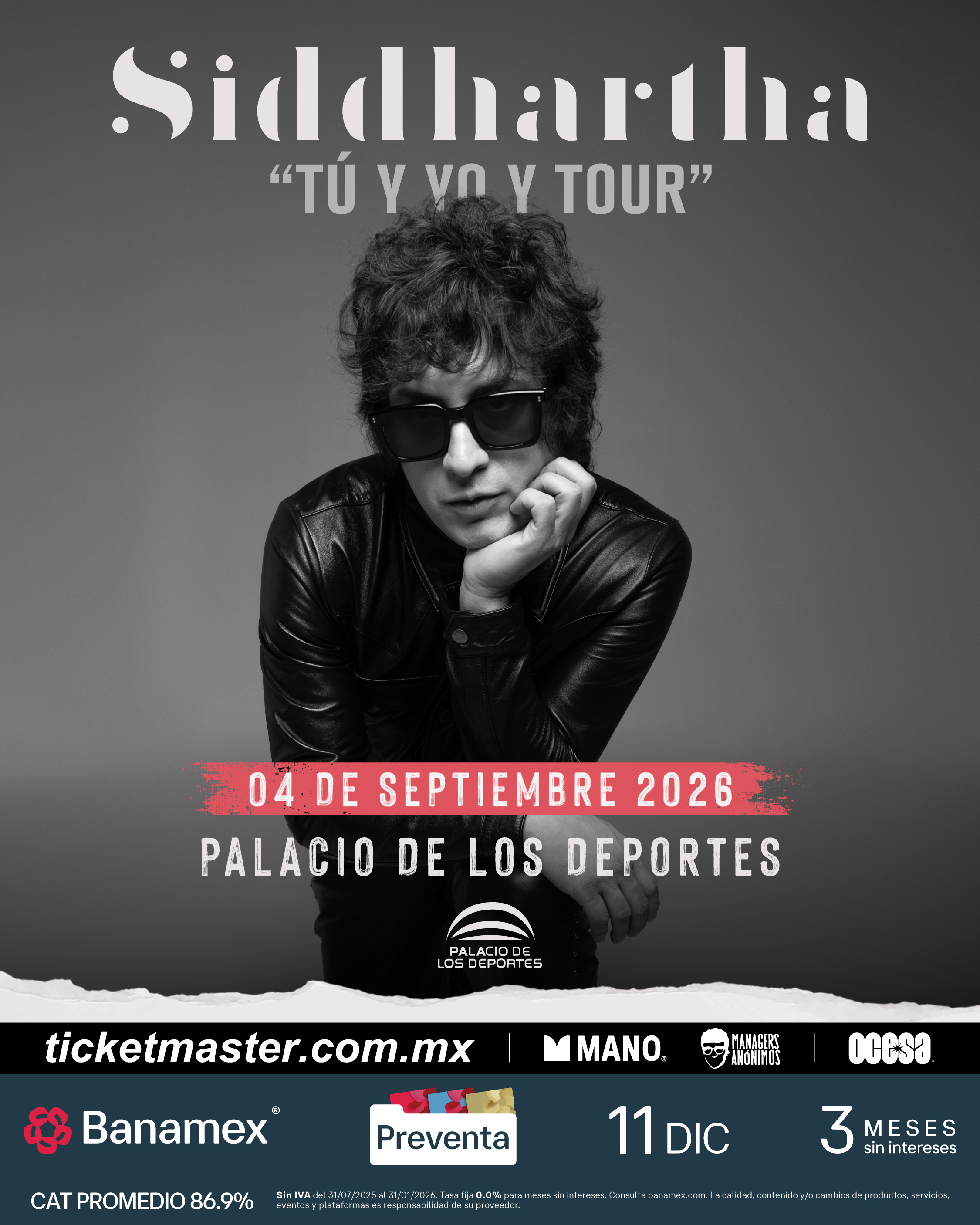 Después de agotar las entradas para su concierto en el Auditorio Nacional, el icónico cantante llegará ahora al Palacio de los Deportes el 4 de septiembre, donde deleitará a sus seguidores con el repertorio que lo ha consolidado como una de las figuras más queridas del indie latino, además de presentar los nuevos tracks que definirán su próxima producción. Siddhartha regresa a este recinto luego de cuatro años, tras haber logrado dos sold out históricos en 2022, marcando así un nuevo capítulo en su crecimiento artístico y un esperado reencuentro con el público que lo ha acompañado a lo largo de su trayectoria.