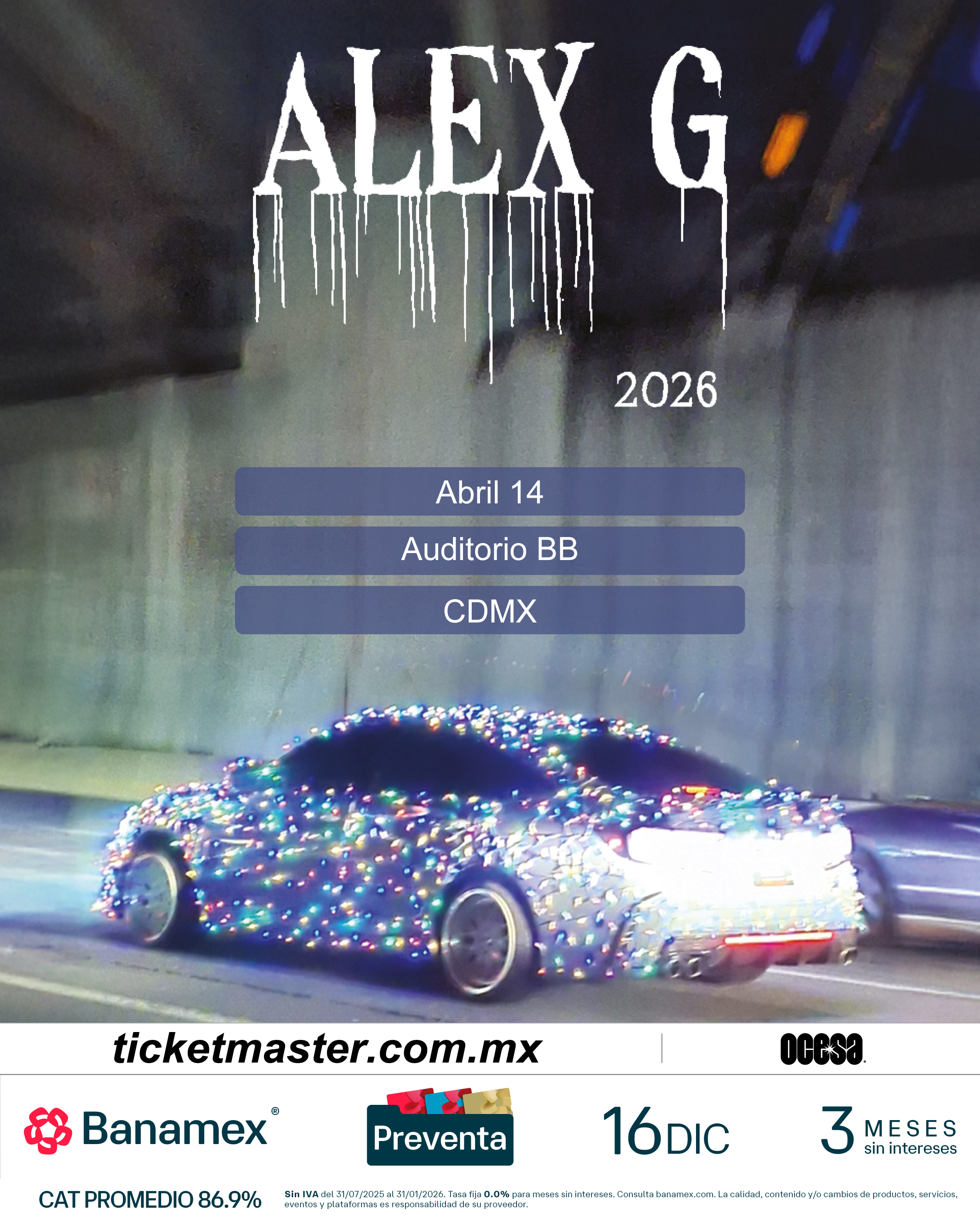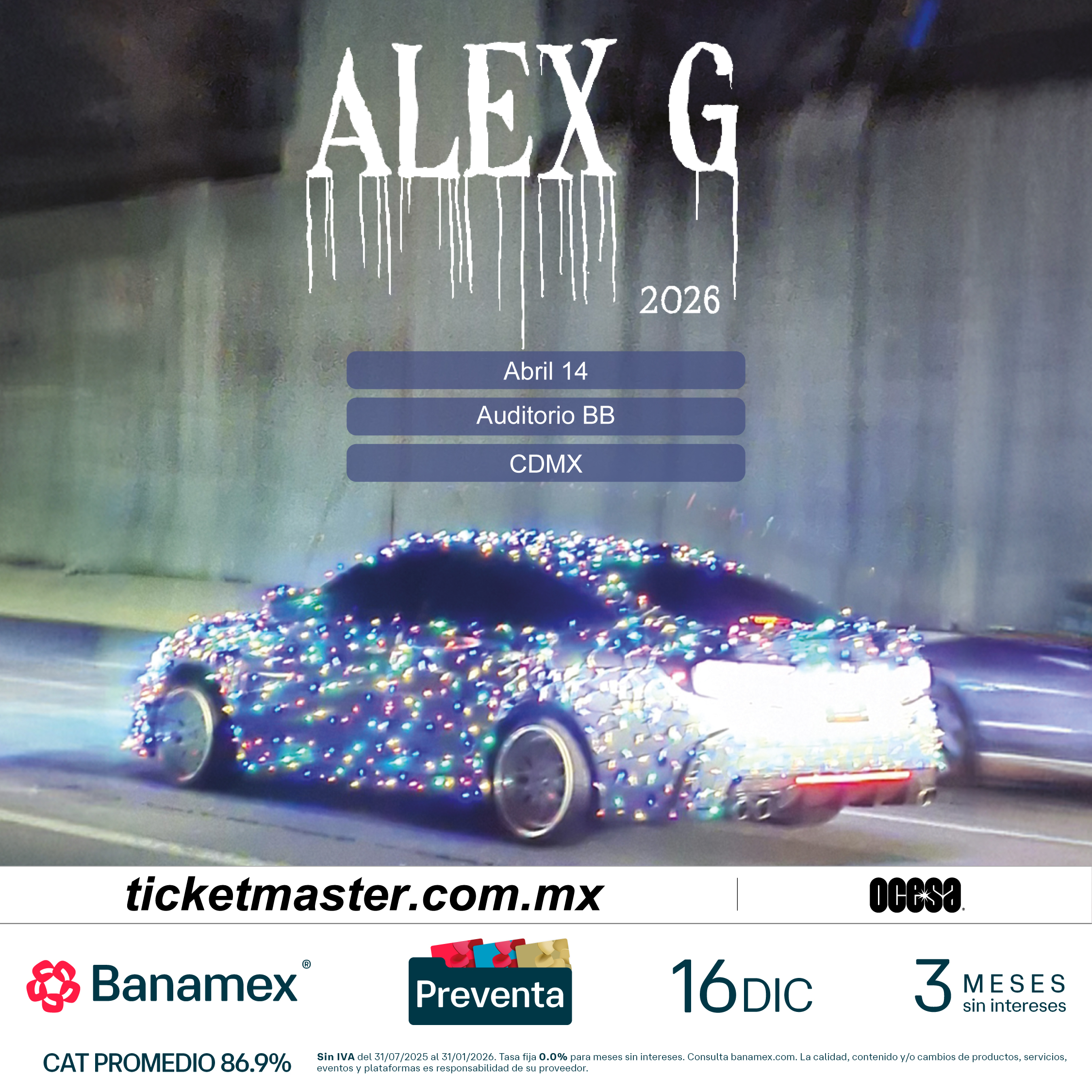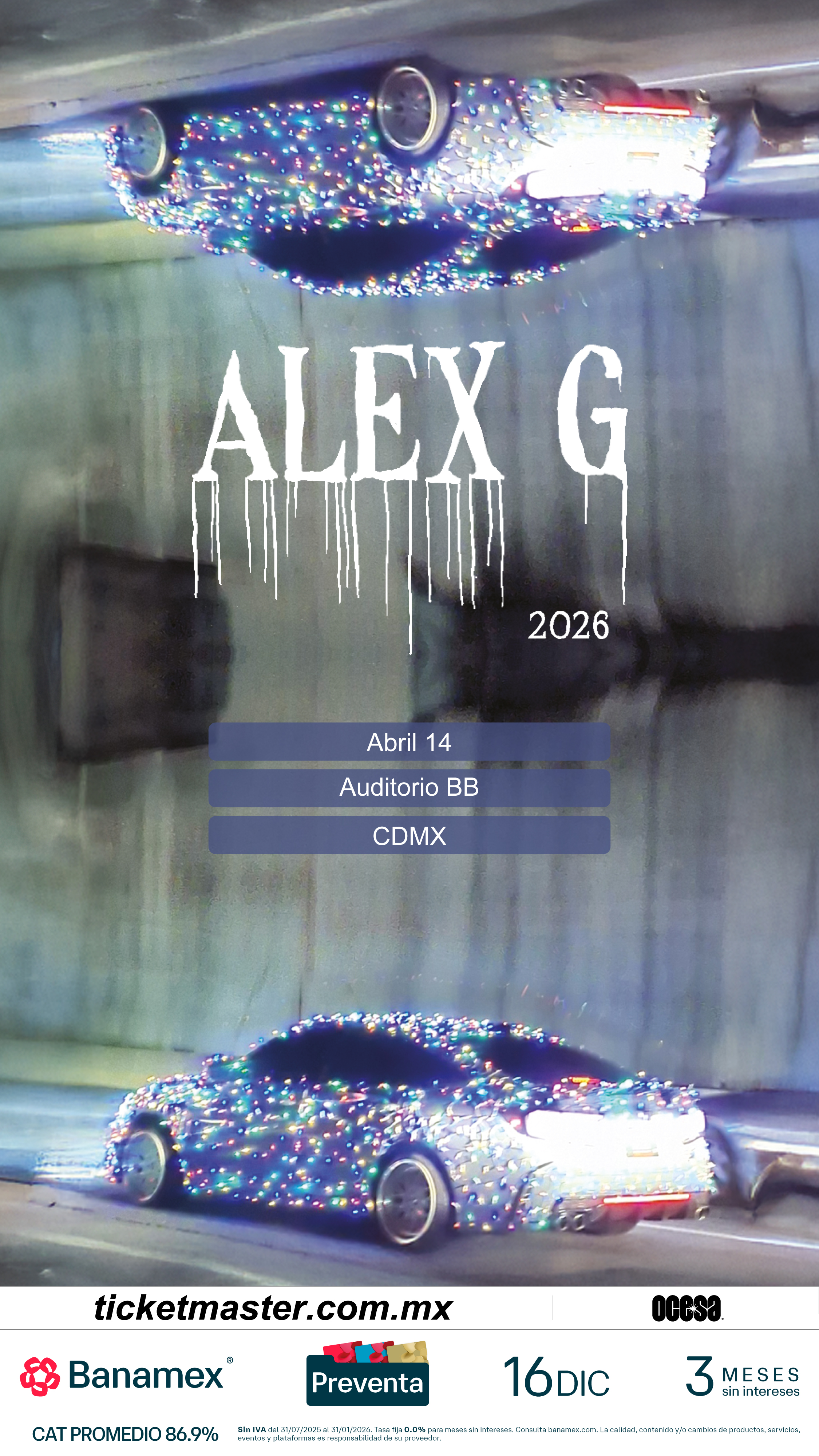 11 de diciembre de 2025 – Hoy, Alex G anuncia una nueva serie de fechas como artista principal en Norteamérica para el próximo año. Comenzando el 14 de abril en Ciudad de México, la gira lo llevará a presentarse dos noches en Portland y Seattle, además de paradas adicionales en Sacramento, San José, Boise, Salt Lake City y Las Vegas. Todas las fechas de la gira se pueden consultar a continuación.
