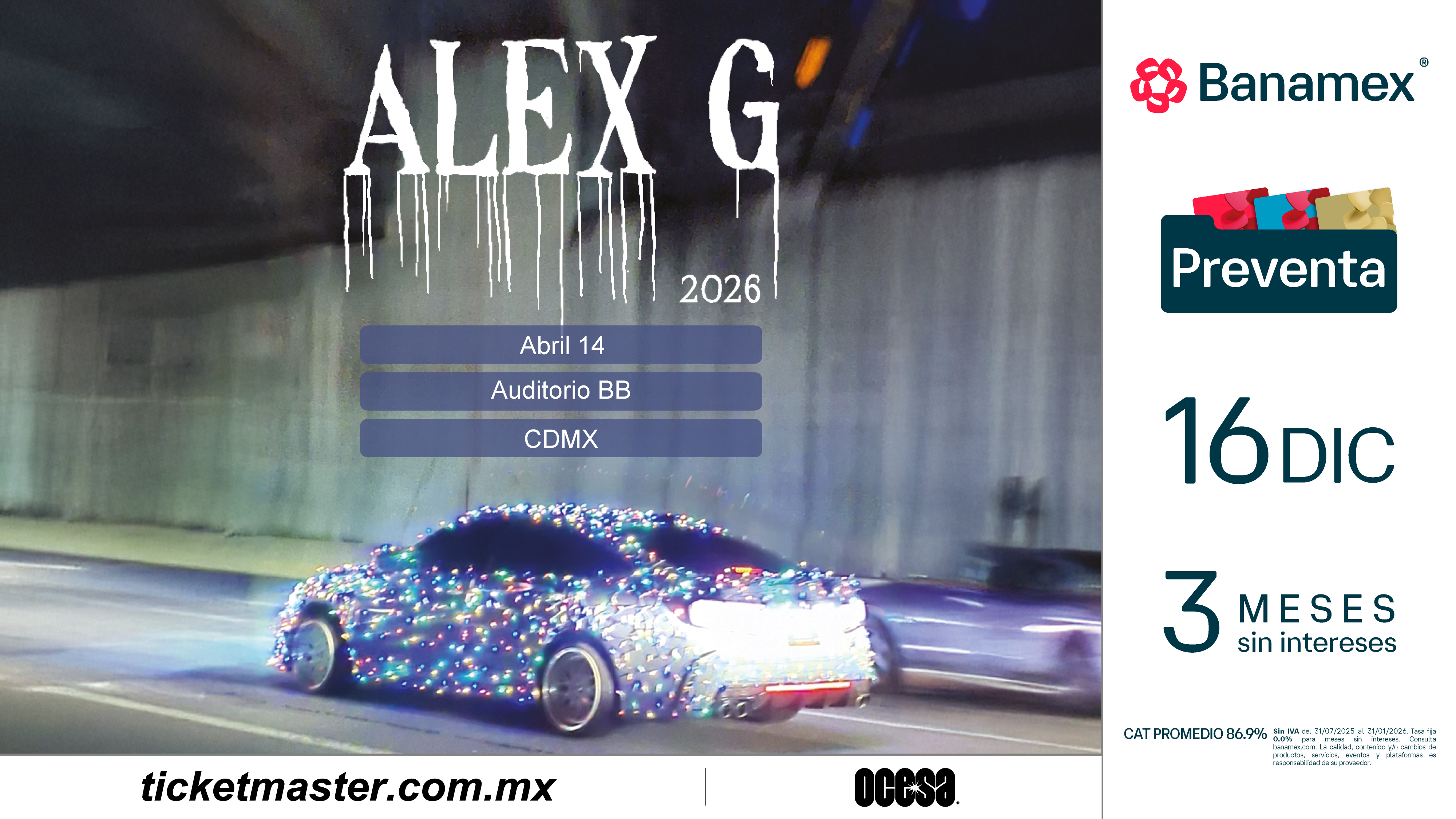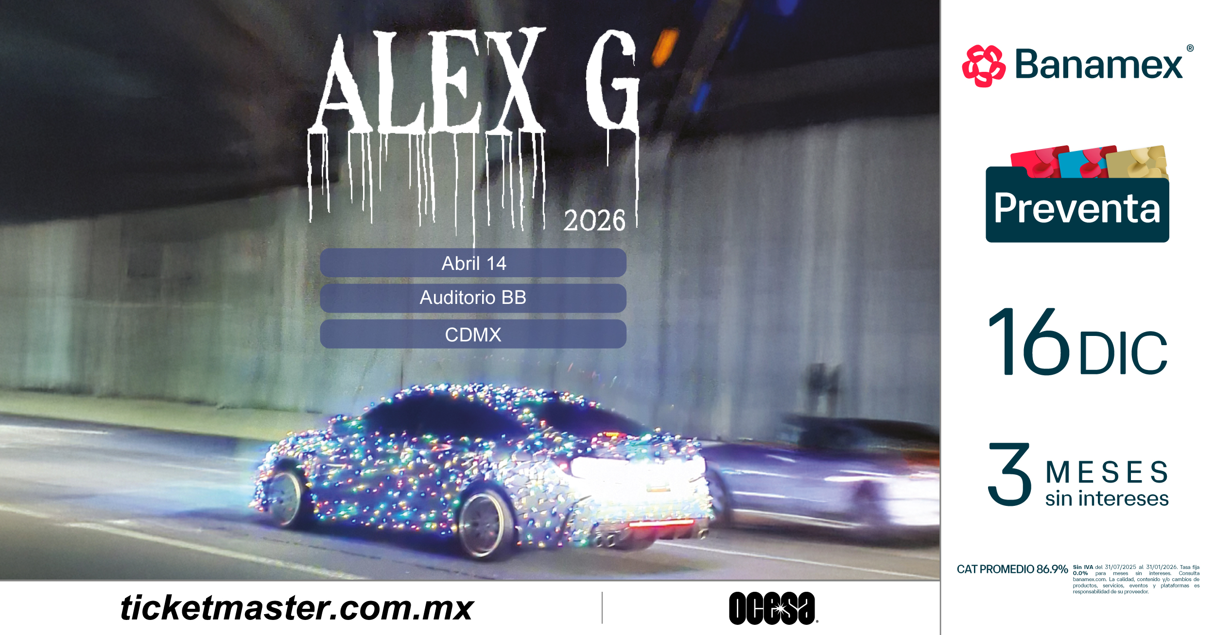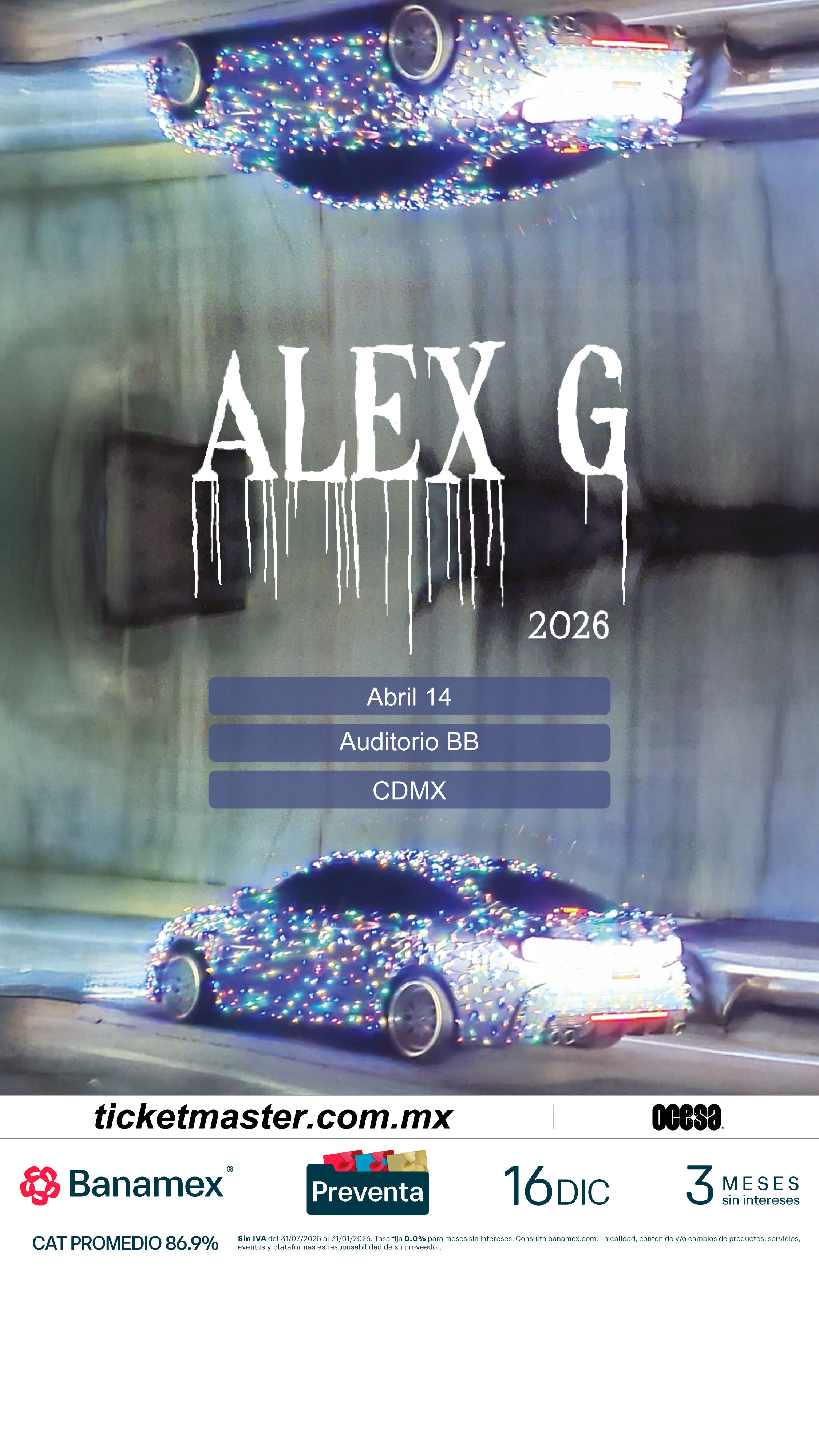 11 de diciembre de 2025 – Hoy, Alex G anuncia una nueva serie de fechas como artista principal en Norteamérica para el próximo año. Comenzando el 14 de abril en Ciudad de México, la gira lo llevará a presentarse dos noches en Portland y Seattle, además de paradas adicionales en Sacramento, San José, Boise, Salt Lake City y Las Vegas. Todas las fechas de la gira se pueden consultar a continuación.