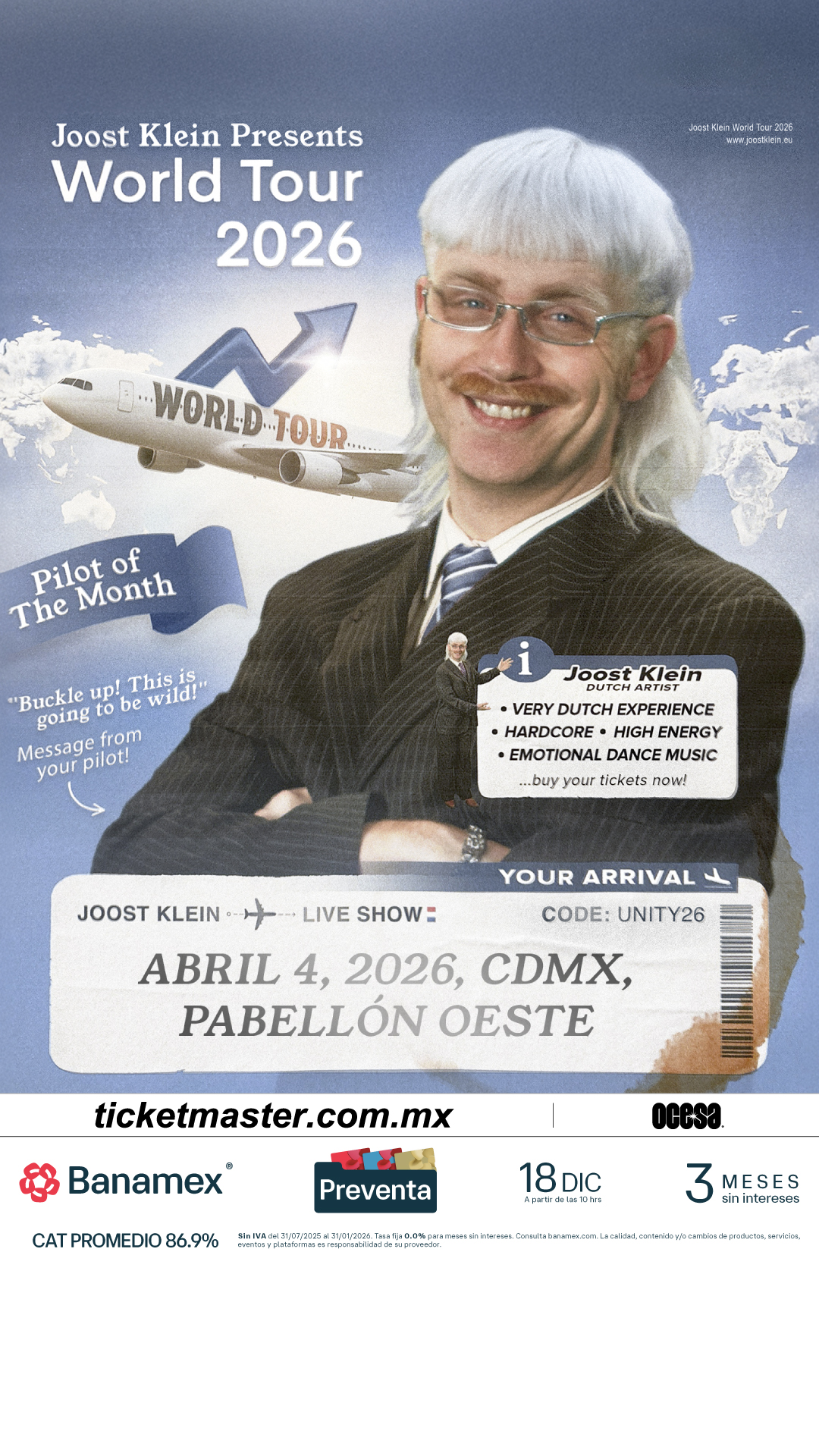 El artista emergente neerlandés Joost Klein ha anunciado una extensa gira mundial para 2026, que incluirá actuaciones en Sudamérica, Norteamérica, Australia, Nueva Zelanda y Europa. La gira marca un hito histórico, ya que Joost se convertirá en el primer artista de habla neerlandesa en presentarse en uno de los festivales más importantes en california.