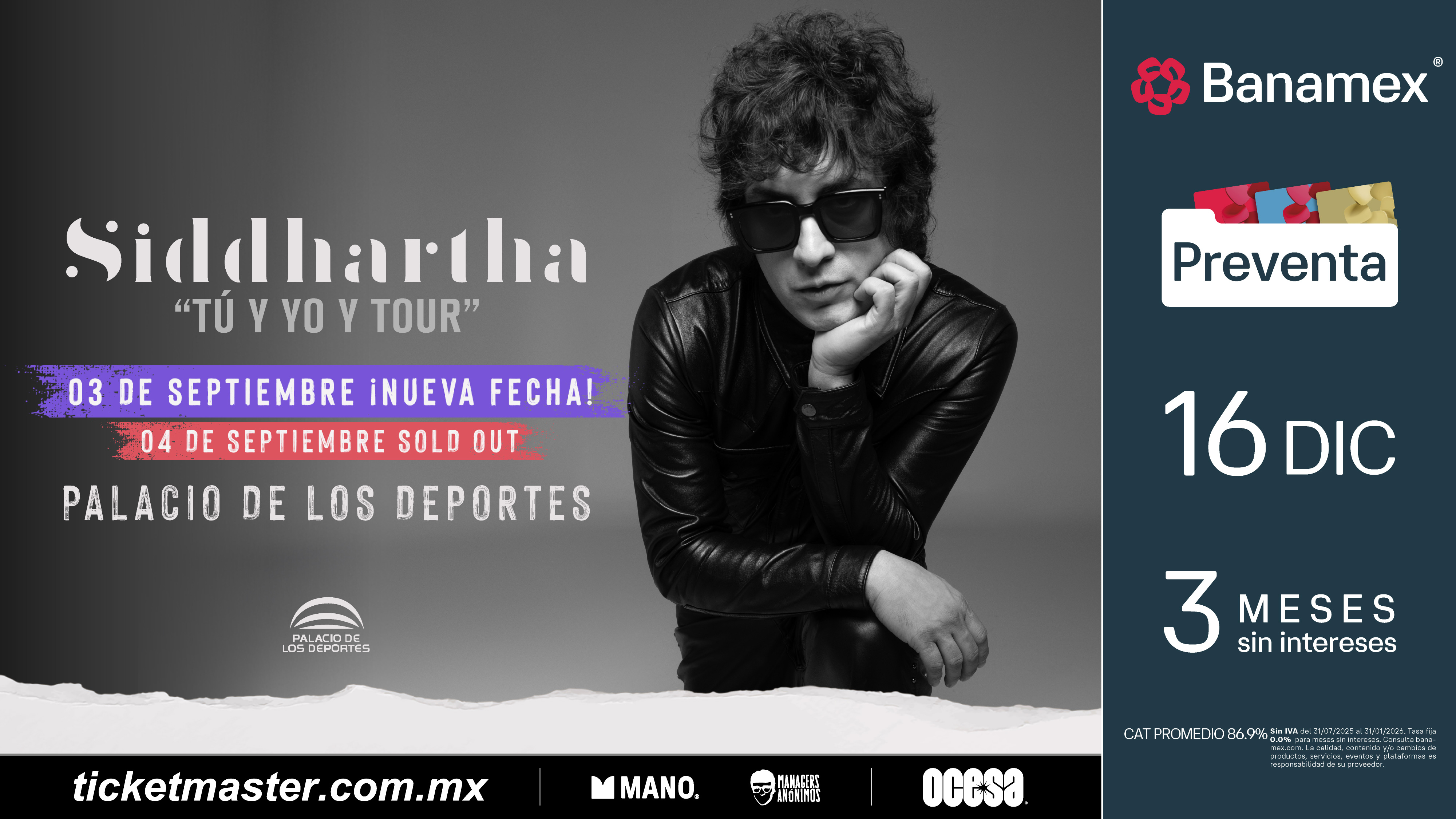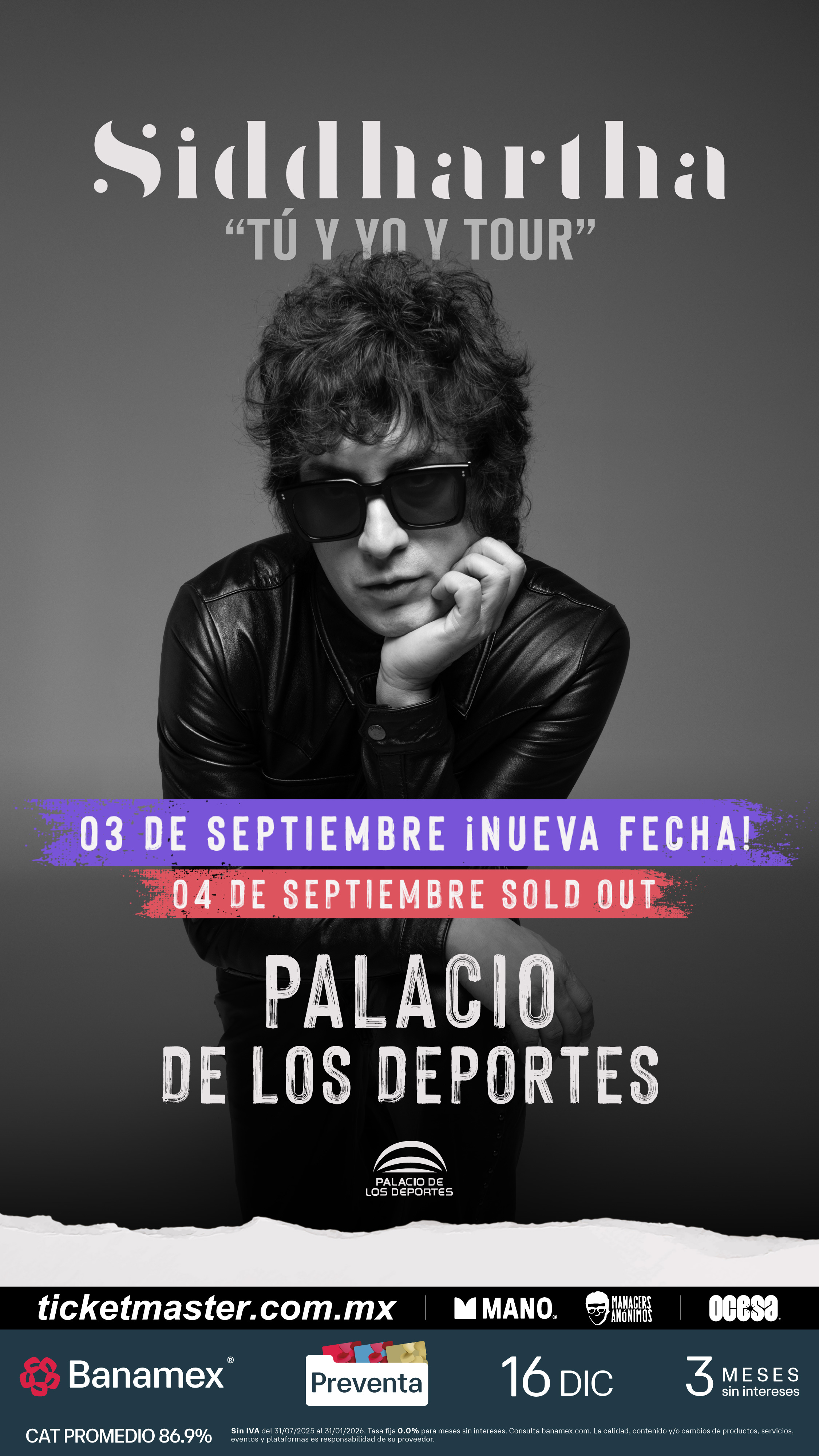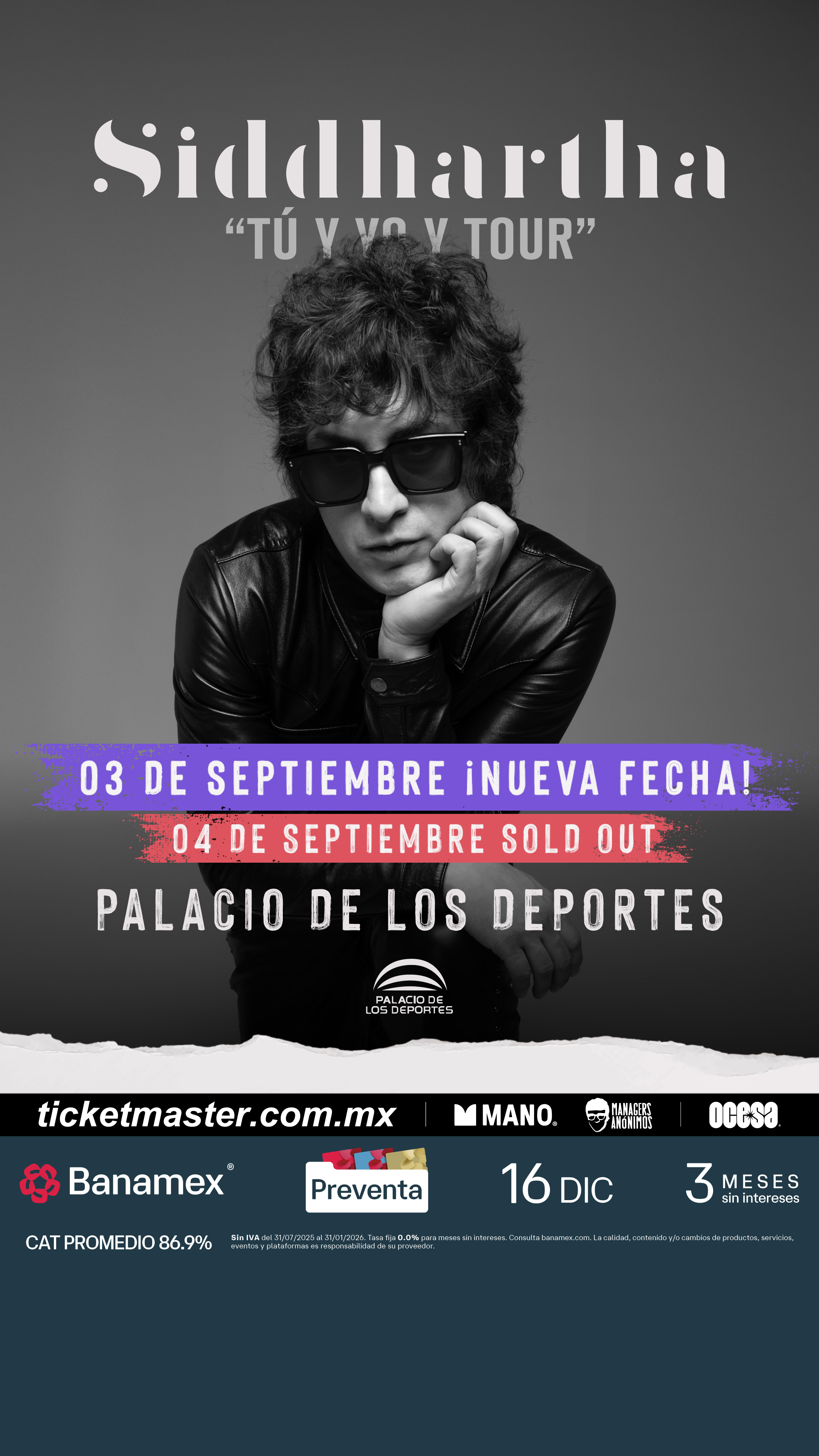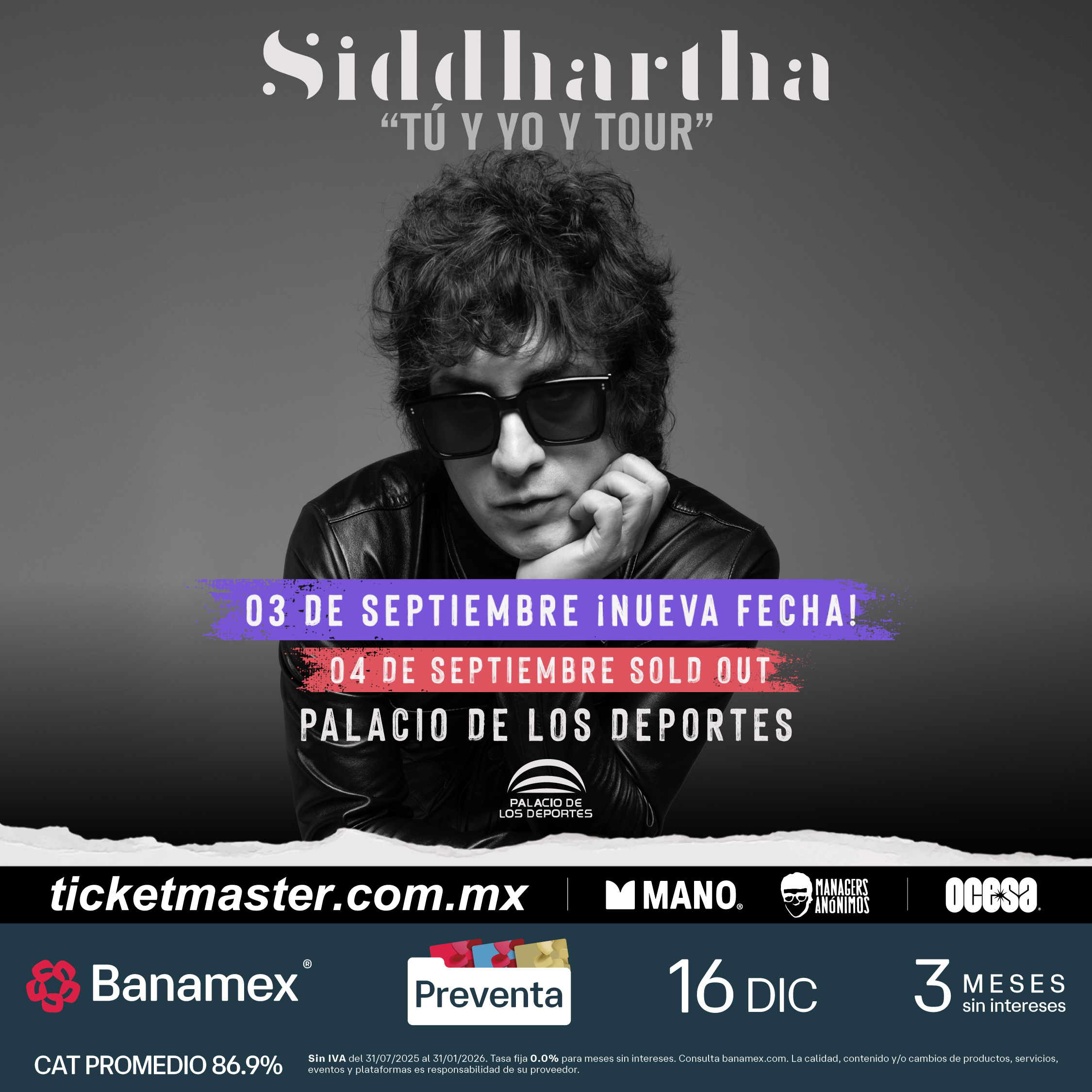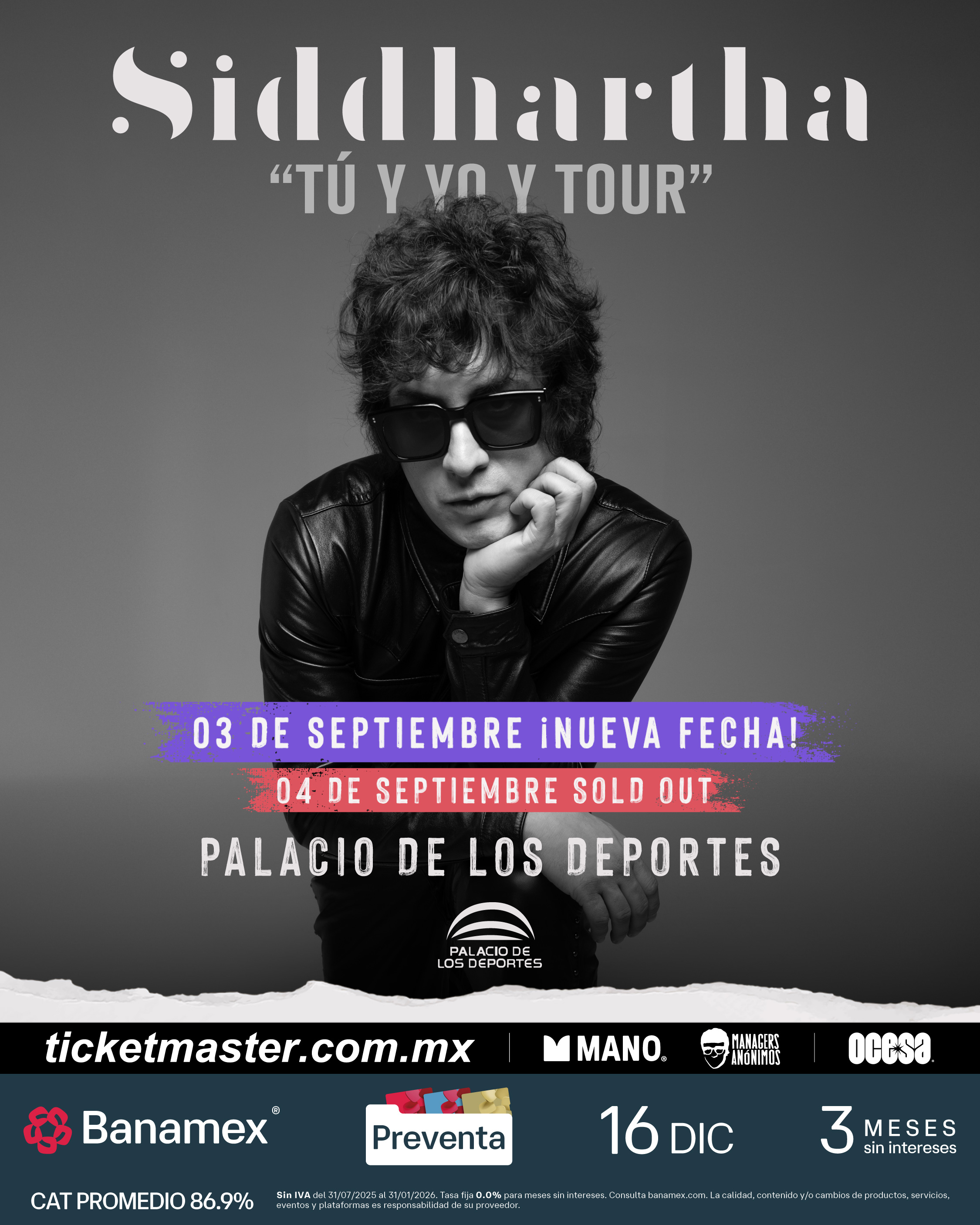 Si quieres ser de los primeros en escuchar el material inédito del artista y disfrutar de una noche más de conexión pura con canciones que ya son himnos, tienes que estar en el Palacio de los Deportes. ¡Corre por tus boletos y sé parte de esta nueva era musical de Siddhartha!