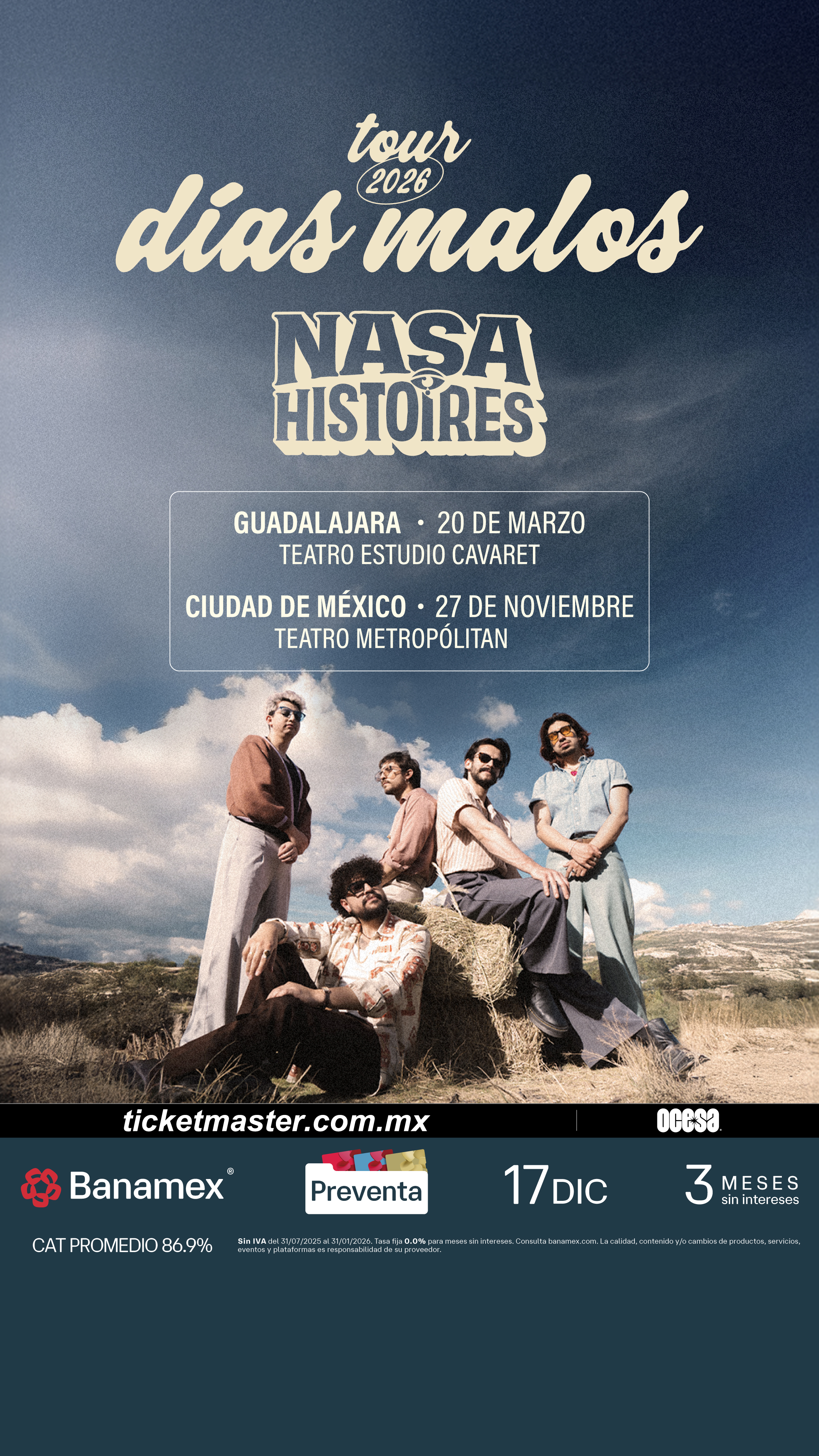 Si buscas una noche de baile, introspección y un flow inigualable, tienes que vivir la experiencia de Nasa Histoires en vivo. ¡Asegura tu entrada para Guadalajara o Ciudad de México y vive una de las mejores noches musicales!