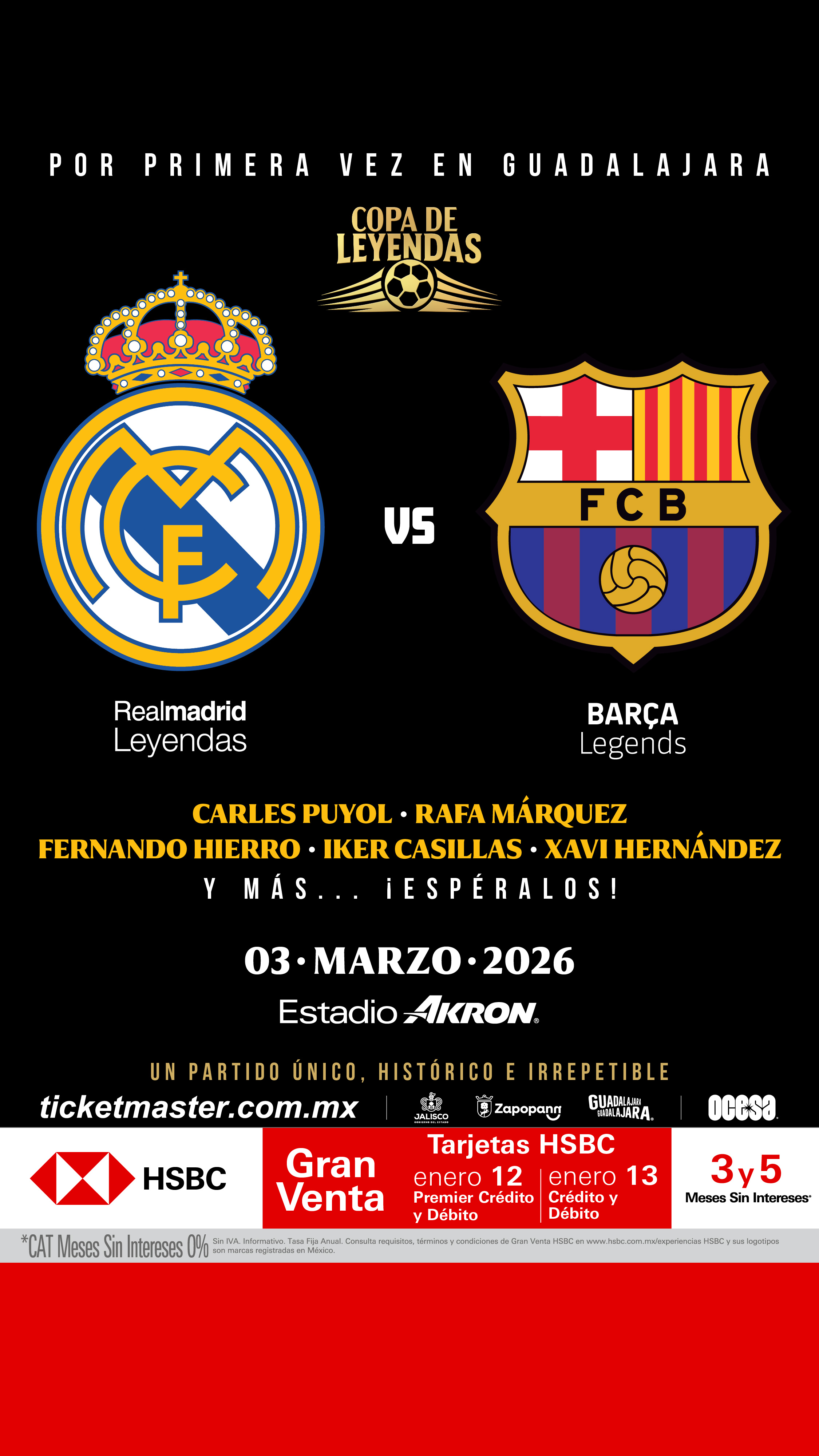 Guadalajara está lista para vivir una noche que quedará inscrita en la historia del fútbol. El próximo 3 de marzo de 2026, el Estadio Akron —sede mundialista— será el escenario de la primera Copa de Leyendas, un encuentro irrepetible entre históricos del Real Madrid y el FC Barcelona, dos de las instituciones más influyentes del fútbol global.
