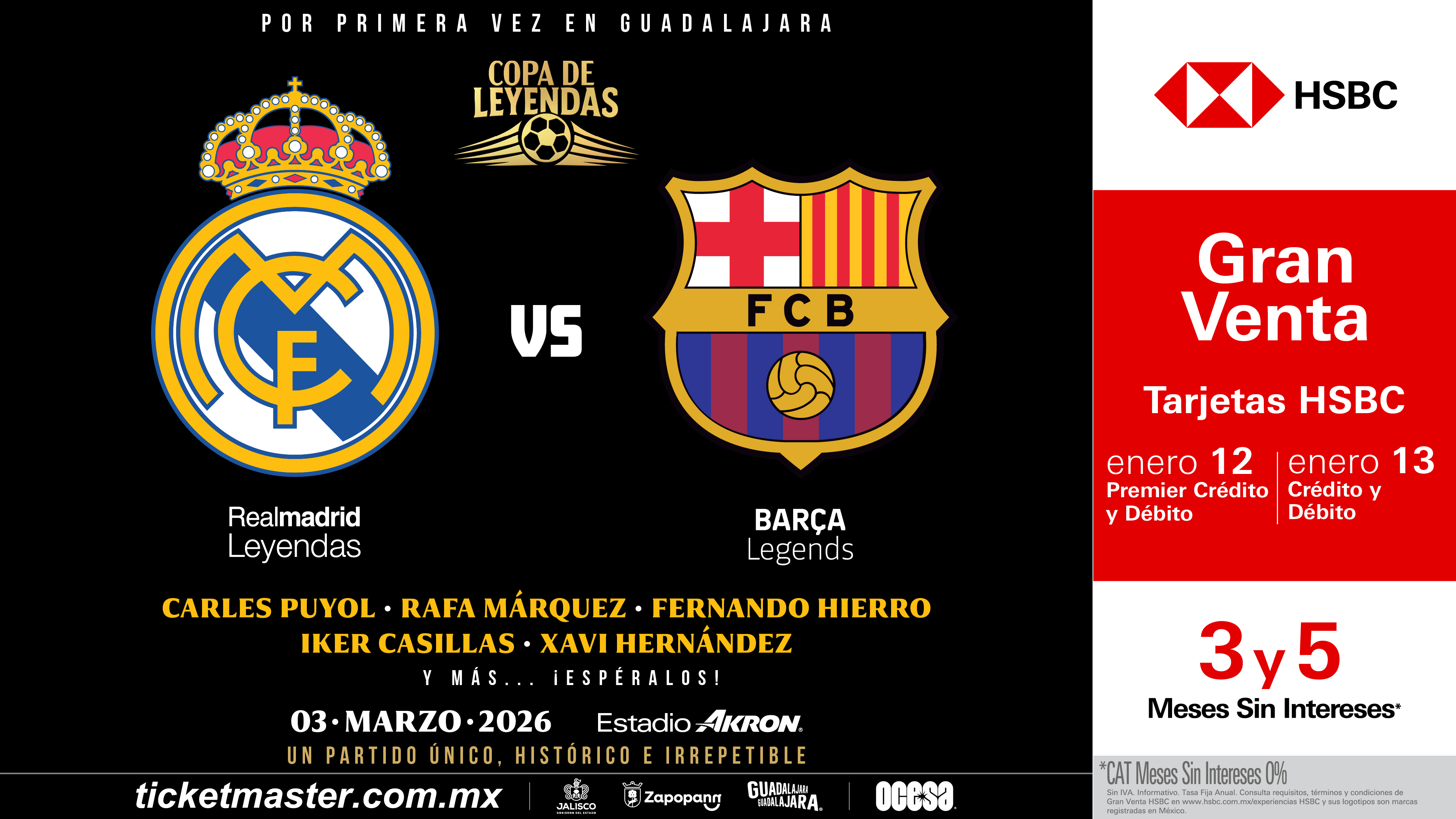 Esta es tu oportunidad irrepetible para ver a los grandes del Real Madrid y Barcelona por 90 minutos más, ¡no la dejes ir! Disfruta de la Gran Venta HSBC 12 y 13 de enero; un día después, aprovecha la venta general.