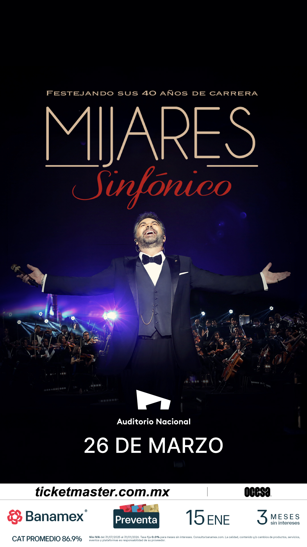 La agenda de Mijares en 2026 reafirma su estatus como el dueño absoluto de los escenarios. Además de su fecha en solitario con el formato sinfónico, el cantante continúa con el fenómeno imparable del Two’r Amigos junto a Emmanuel, con una presentación confirmada en el mismo Auditorio Nacional para el 20 de febrero de 2026.