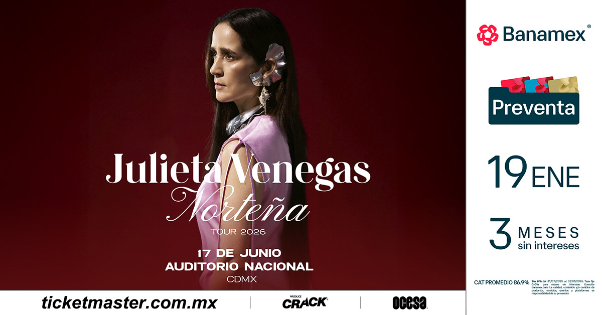 Julieta Venegas ofrecerá a sus fans noches increíbles con esta gira que llevará lo mejor de su música a la capital del país y el interior de la República Mexicana. La preventa Banamex será el 19 de enero (para CDMX y MTY) a través de Ticketmaster; en el caso de Toluca, Puebla y Querétaro, encontrarás tus boletos en E-Ticket. Un día después, los podrás adquirir en la venta general.