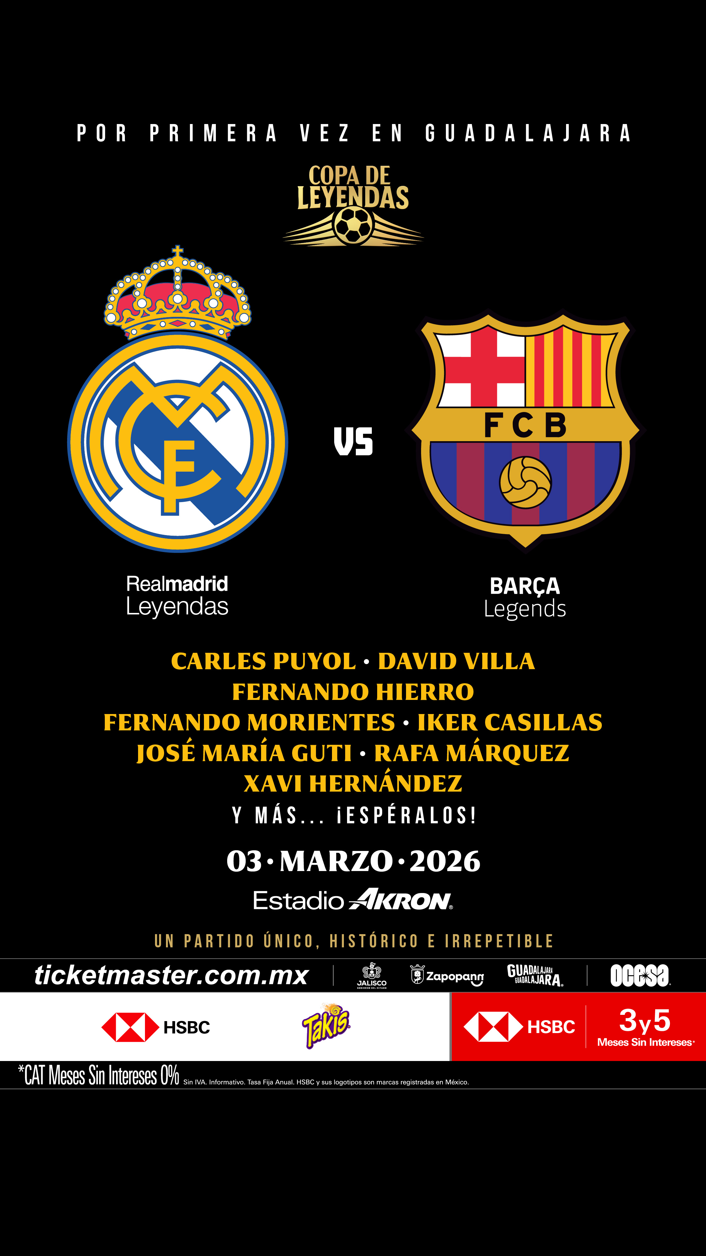 La llegada de estas leyendas a Guadalajara ofrece una oportunidad única para que miles de aficionados vivan de cerca los grandes iconos que construyeron la historia reciente del fútbol español y mundial, en una ciudad que se consolida como epicentro del deporte y el entretenimiento a nivel internacional.