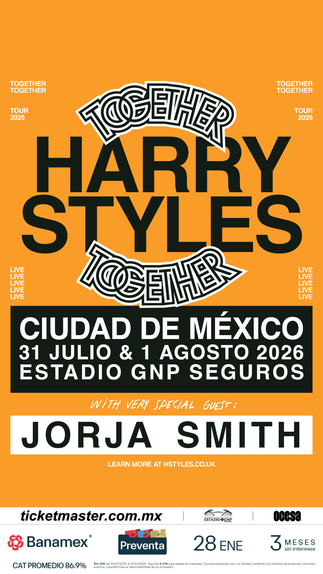 La superestrella internacional Harry Styles, hará su esperado regreso a los escenarios globales con una residencia en siete ciudades. Promovido por Live Nation, Together, Together incluirá 50 fechas en Ámsterdam, Londres, São Paulo, Ciudad de México, Nueva York, Melbourne y Sídney entre los meses de mayo y diciembre.