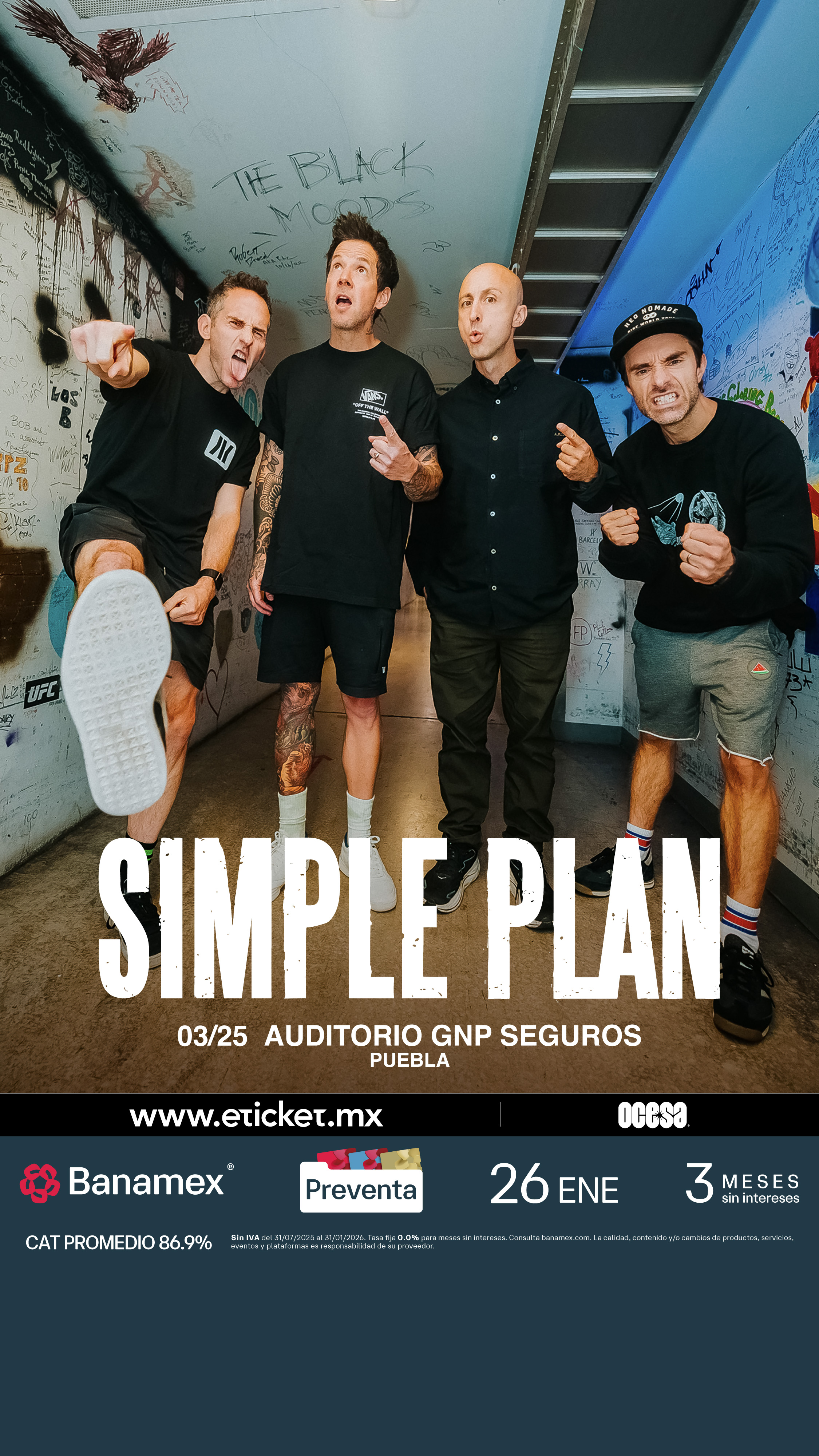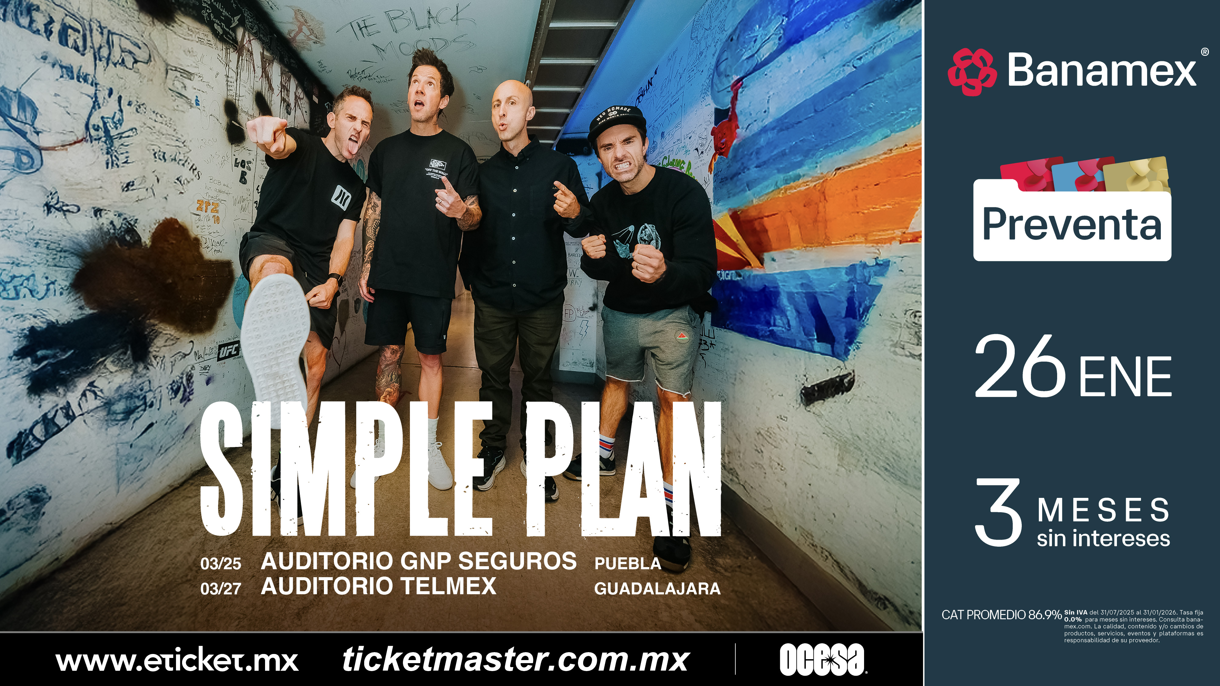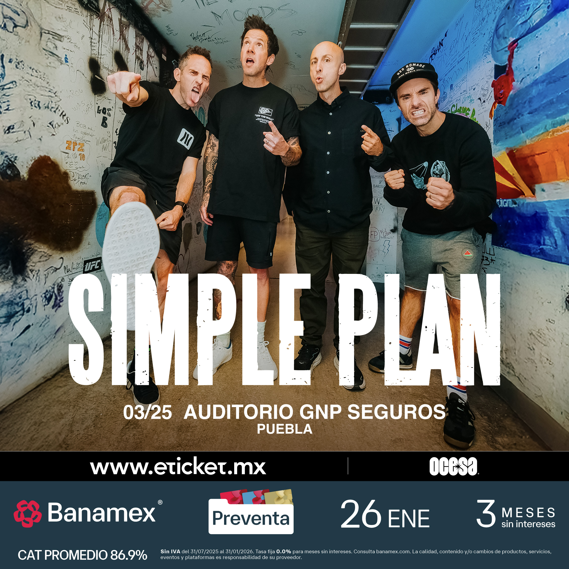 Los boletos estarán en preventa Banamex el 26 de enero y un día después (27 de enero) estarán a la venta en las taquillas de los inmuebles o a través de Ticketmaster, para Puebla será a través de Eticket. Además, podrás obtener acesos VIP con anticipación de la preventa y preventa oficiales a través de officialsimpleplan.com
