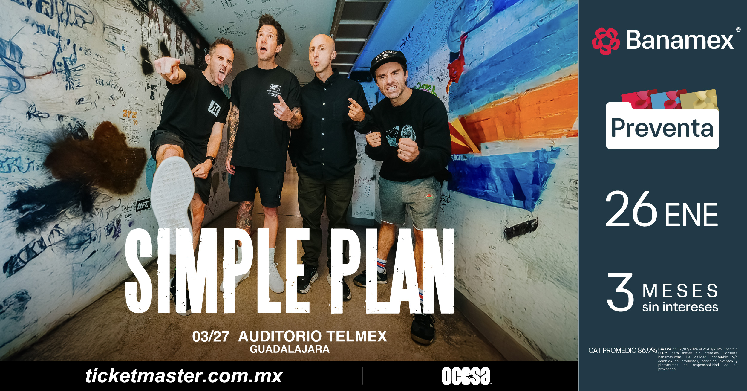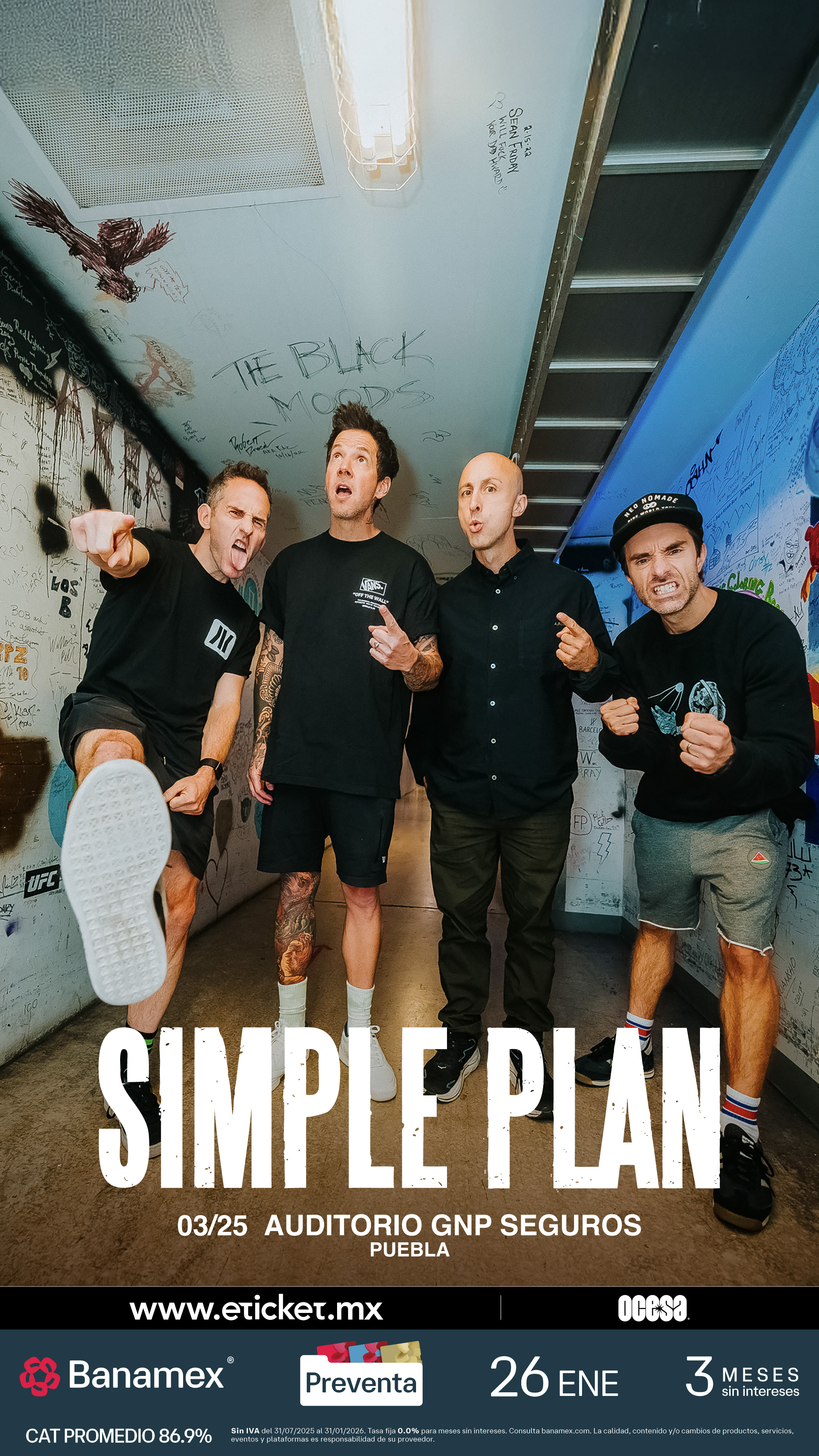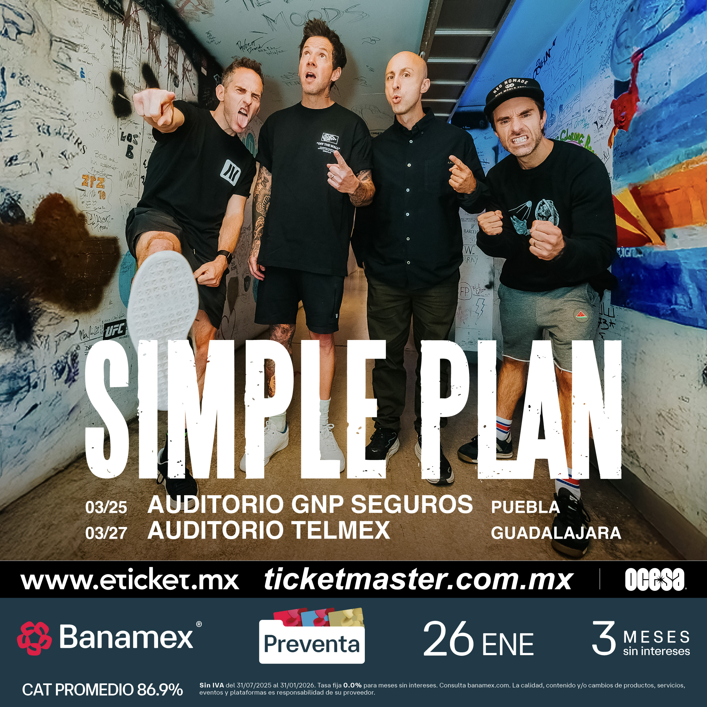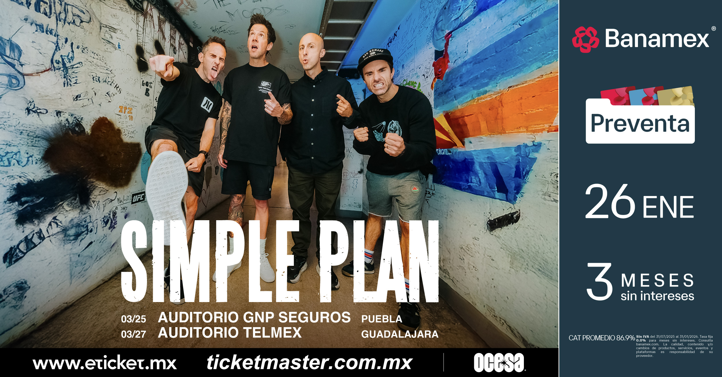 Los boletos estarán en preventa Banamex el 26 de enero y un día después (27 de enero) estarán a la venta en las taquillas de los inmuebles o a través de Ticketmaster, para Puebla será a través de Eticket. Además, podrás obtener acesos VIP con anticipación de la preventa y preventa oficiales a través de officialsimpleplan.com