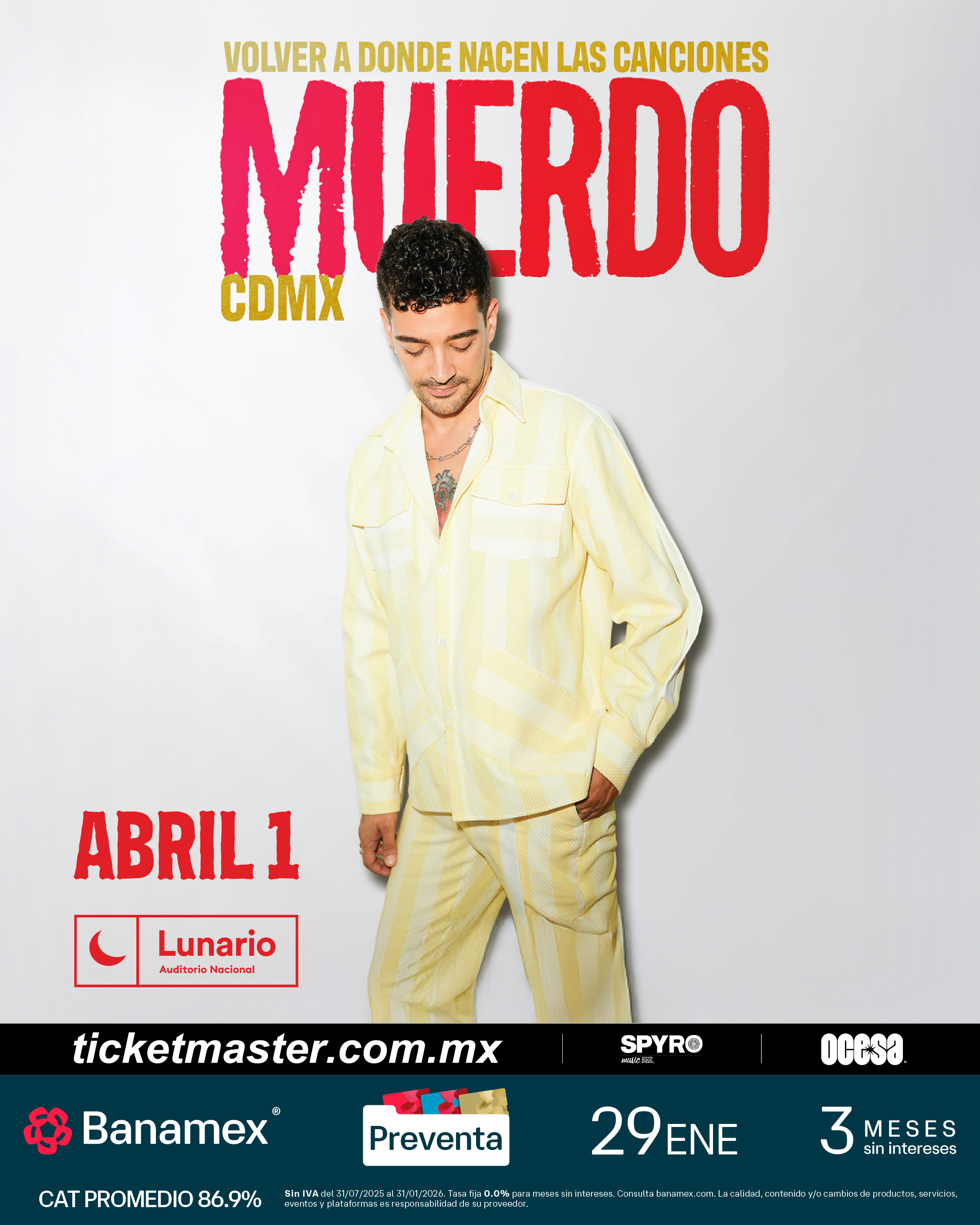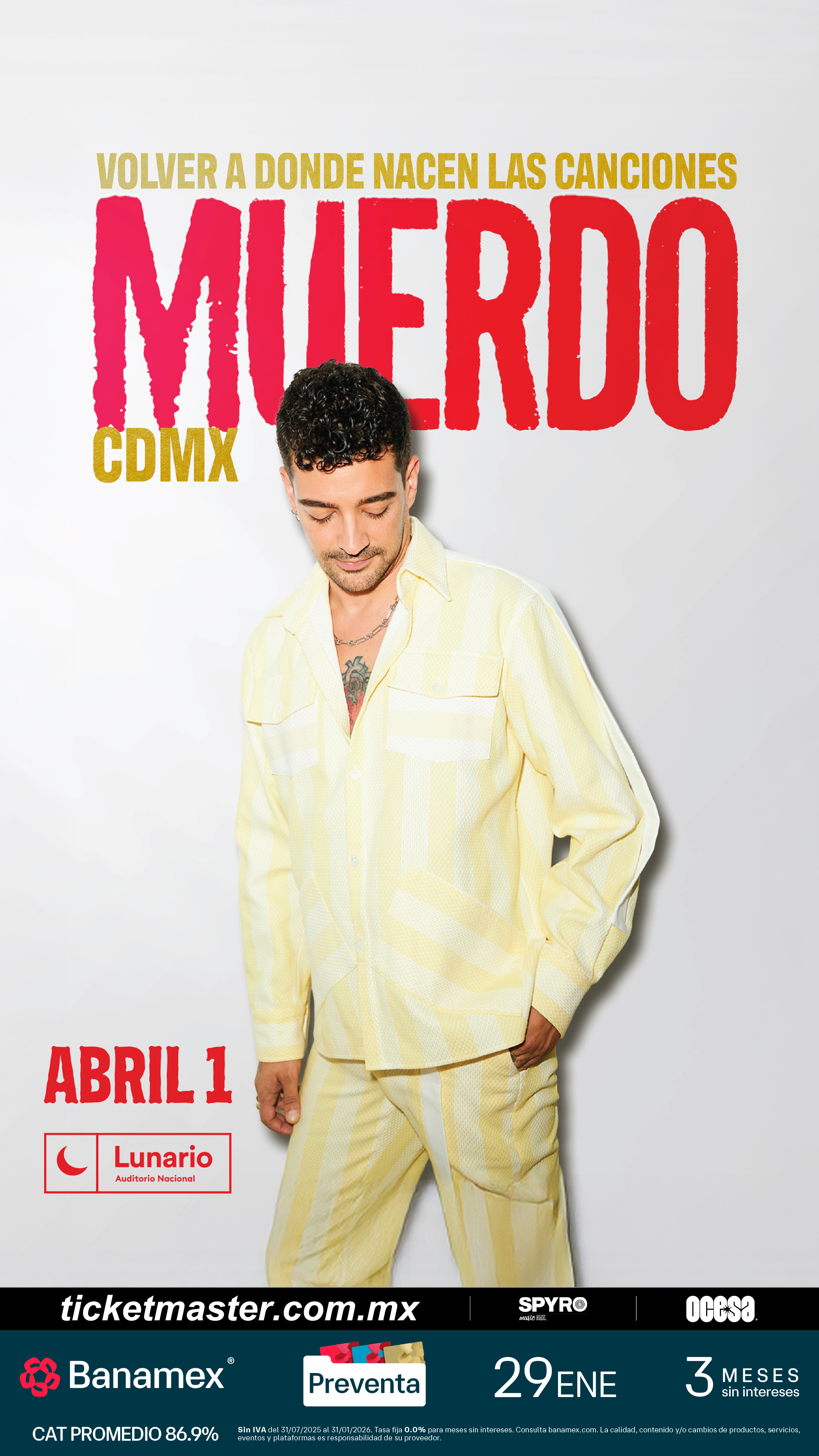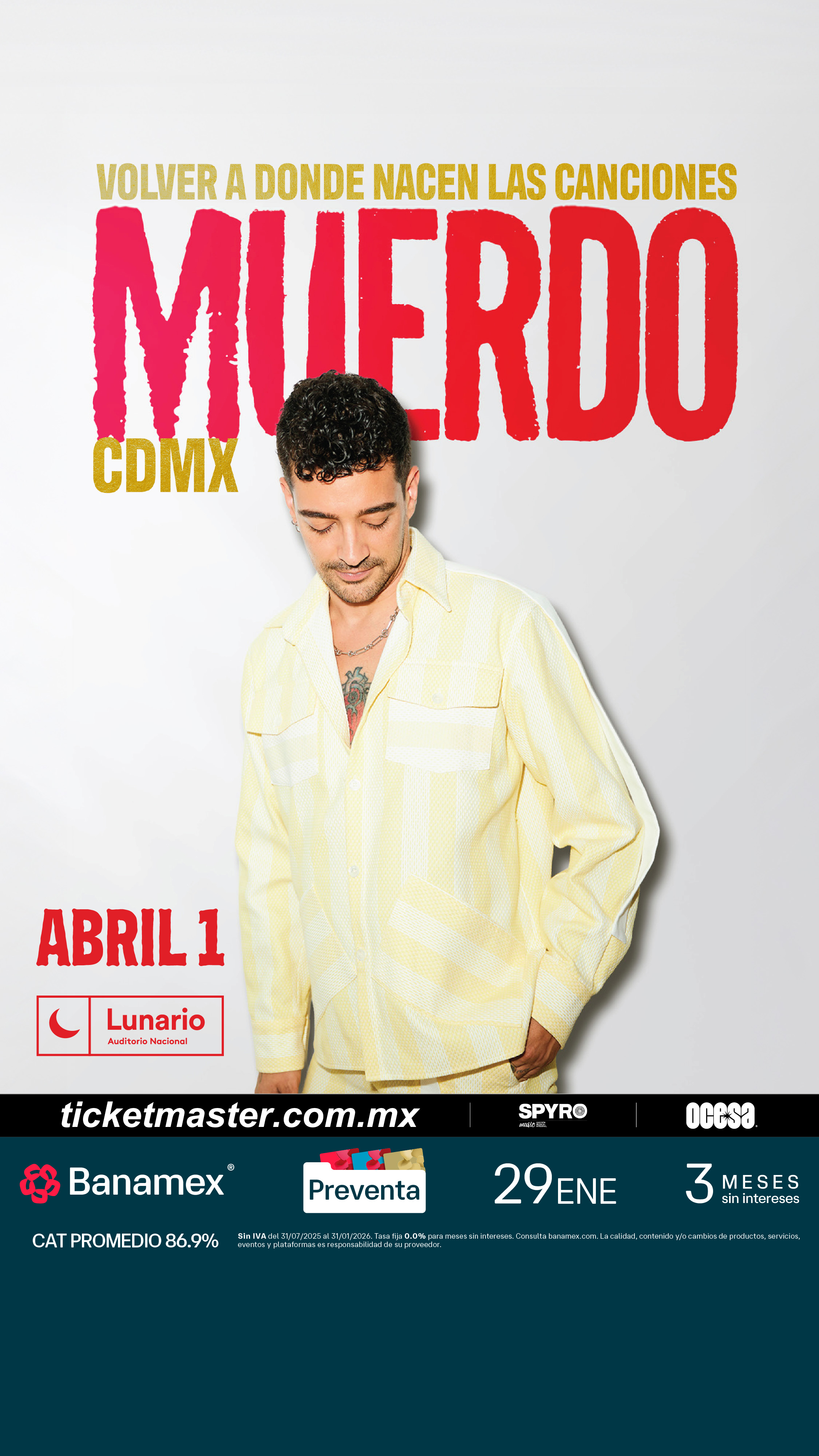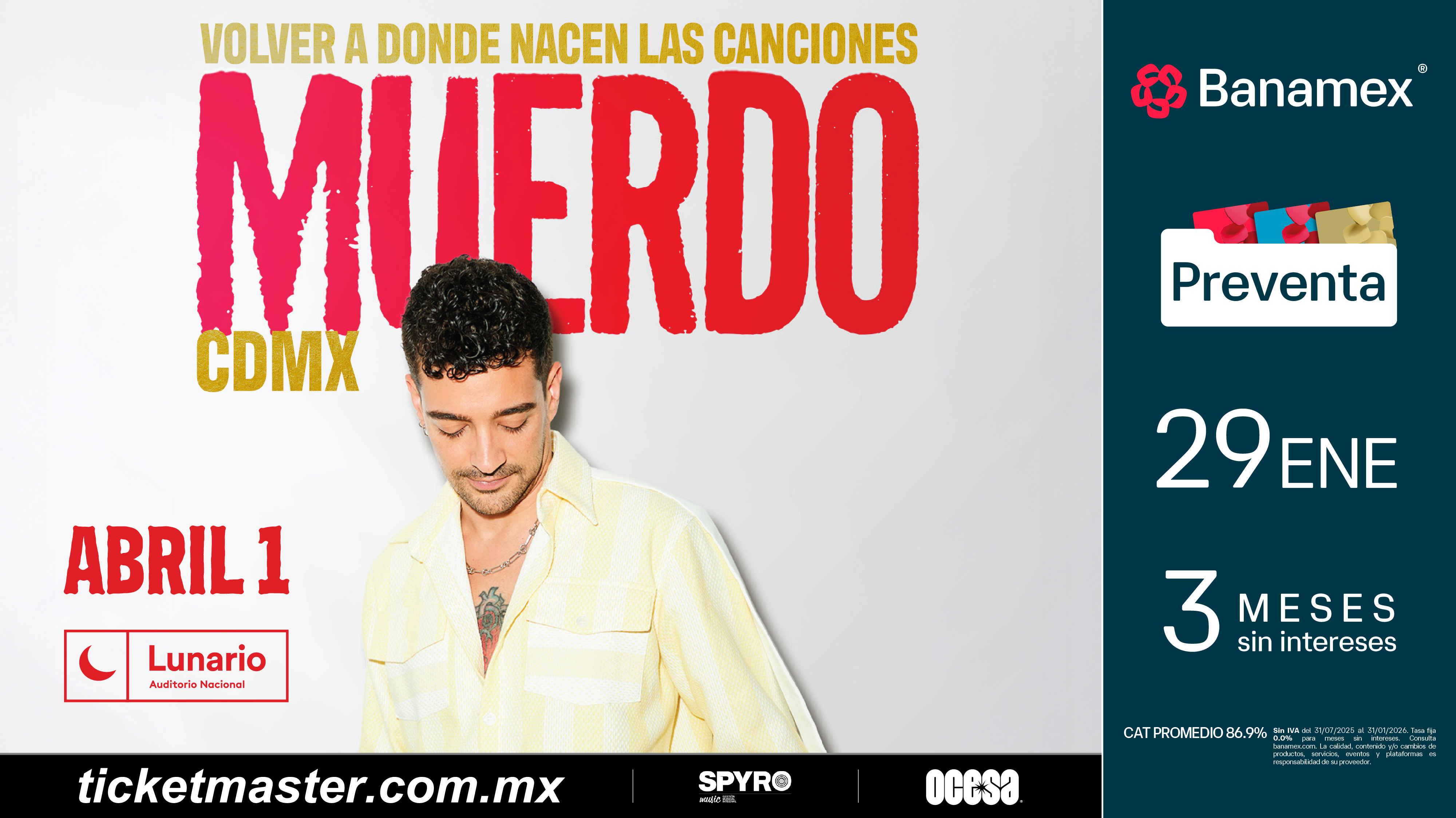 Asegura tus boletos durante la Preventa Banamex el 29 de enero o bien, en la venta general que se liberará un día después, el 30 de enero a través de Ticketmaster o en la taquilla del inmueble.