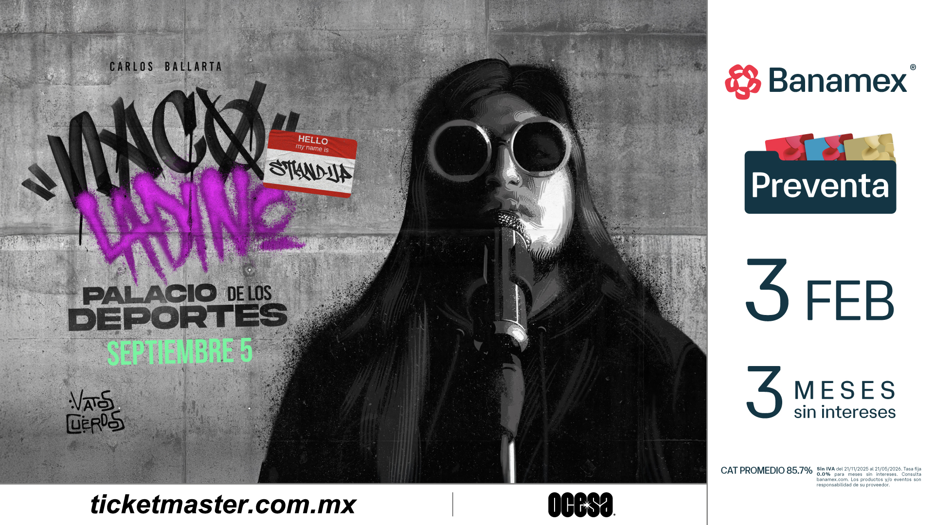 Este tour internacional es el preámbulo perfecto para lo que viviremos en septiembre: la consolidación de un artista que ha sabido transformar la crítica social en un fenómeno de masas. Los boletos estarán en preventa Banamex el 3 de febrero, y un día después los podrás adquirir en las taquillas del inmueble o a través de www.ticketmaster.com.mx.