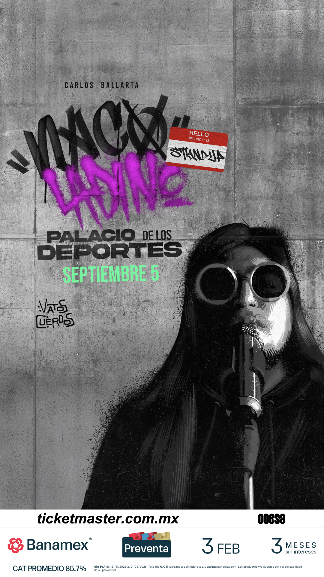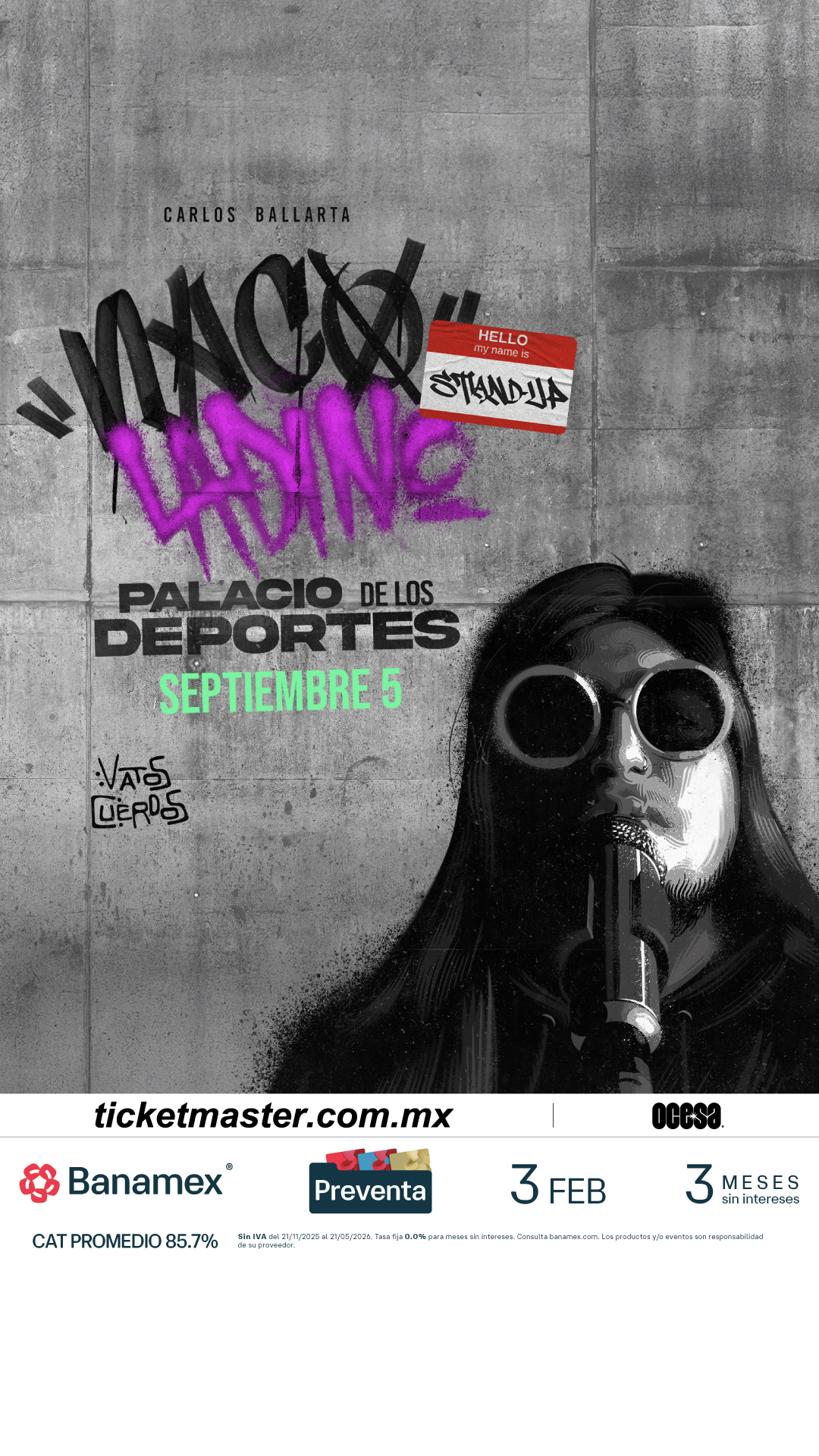 En esta cita histórica, Ballarta presentará su sexto unipersonal titulado Naco Ladino. Un espectáculo completamente nuevo donde desbordará su característico talento y desfachatez. El público puede esperar esa picardía mexicana fusionada con la elocuencia y el pensamiento crítico que lo han definido desde sus inicios. A través de su mirada ácida sobre la política, la religión y la vida cotidiana, Ballarta promete una noche de introspección cargada de risas, llevando el formato del stand up a un nivel de producción nunca antes visto en el país.