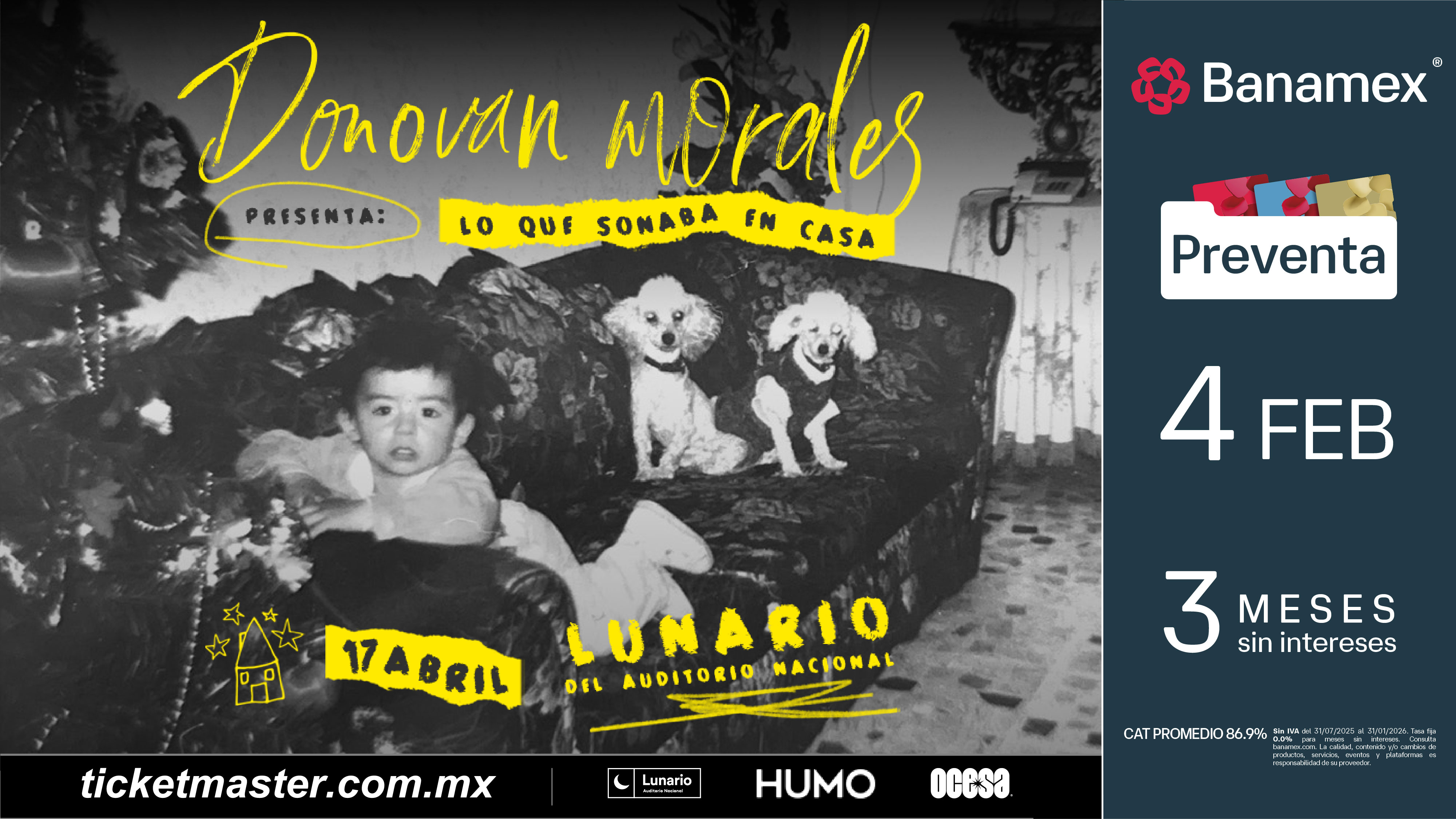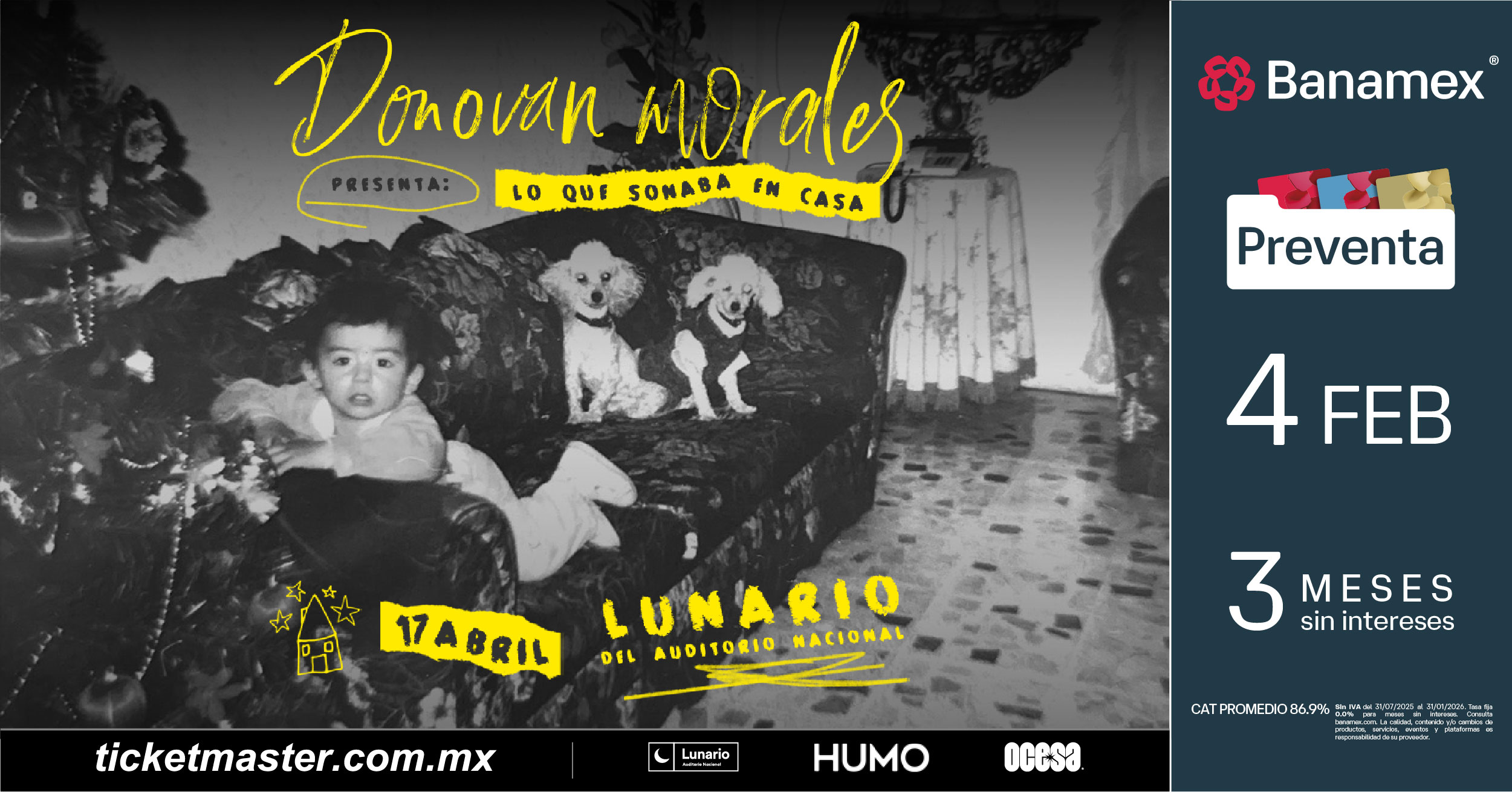 La presentación en el Lunario será una oportunidad única para vivir de cerca el universo artístico de Donovan Morales y disfrutar tanto de sus temas más queridos como “Alguien Más”, “Amar” o “Mitos”, así como de los nuevos espacios sonoros que radican en piezas como “Aunque Te Vayas”, “No Puedo” o “Todo Lo Que Tengo”, entre otras. Sé parte de esta experiencia asegurando tus boletos durante la Preventa Banamex el próximo 4 de febrero o bien, en la venta general que comenzará el 5 de febrero a las 11:00 A.M.