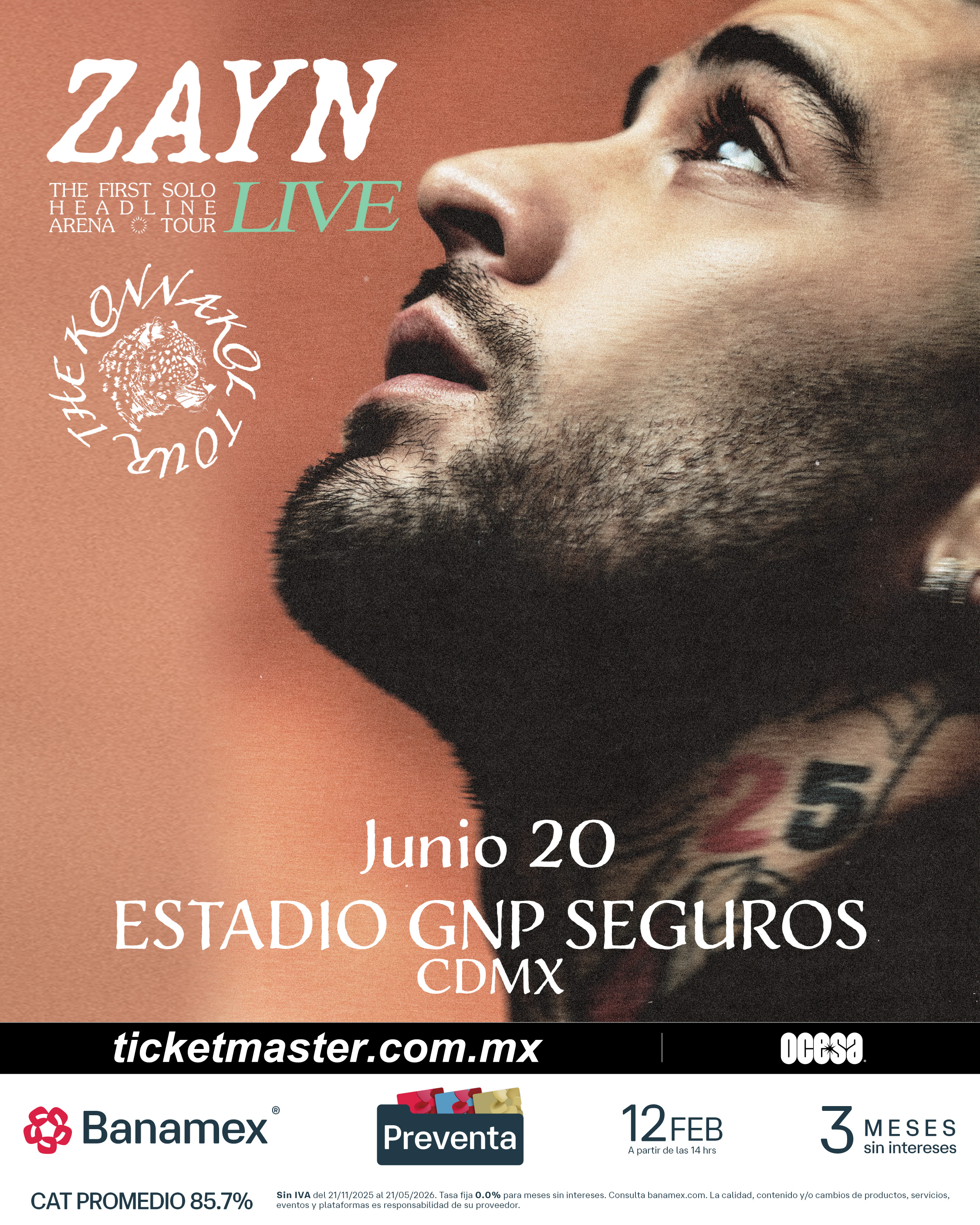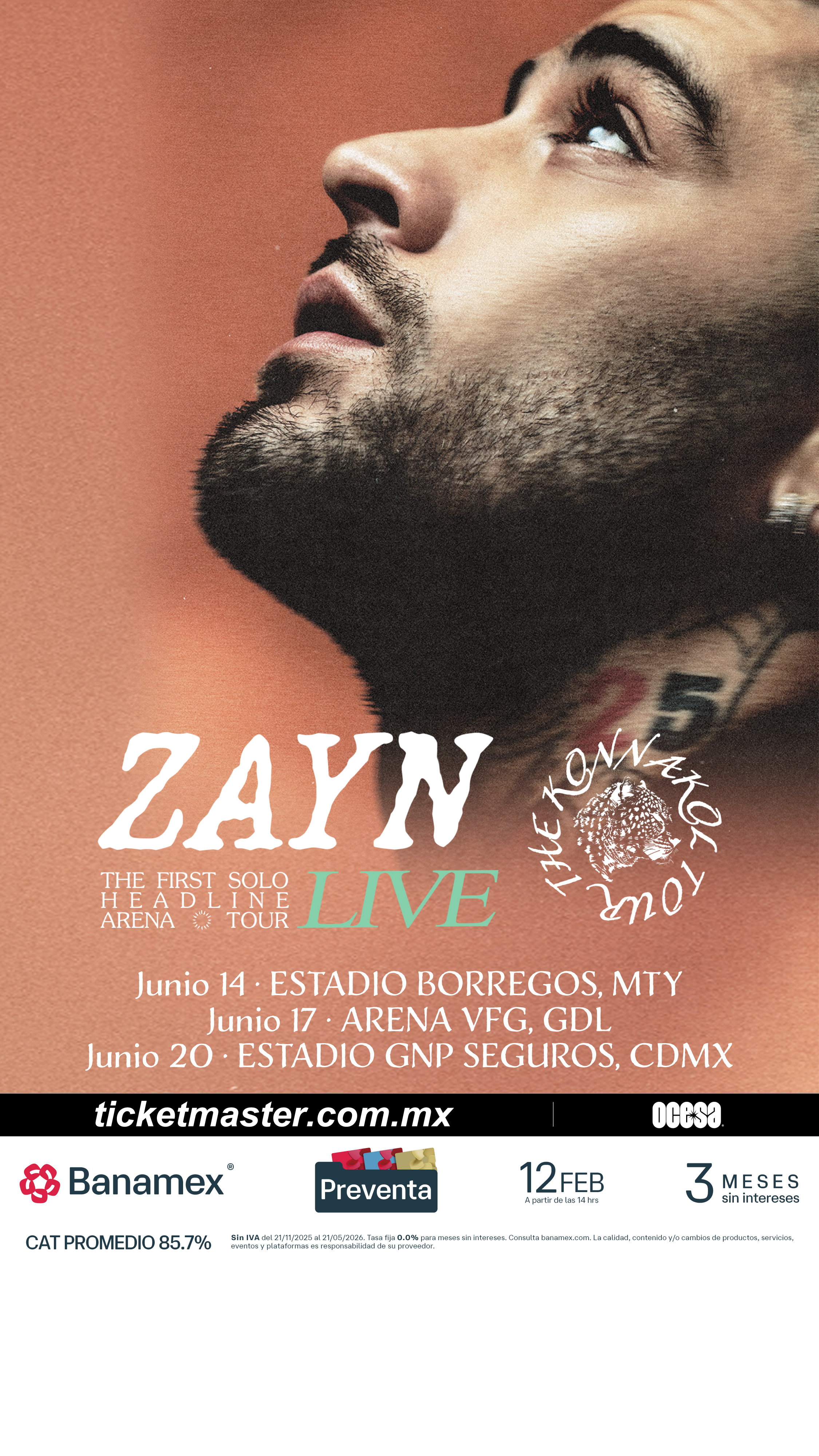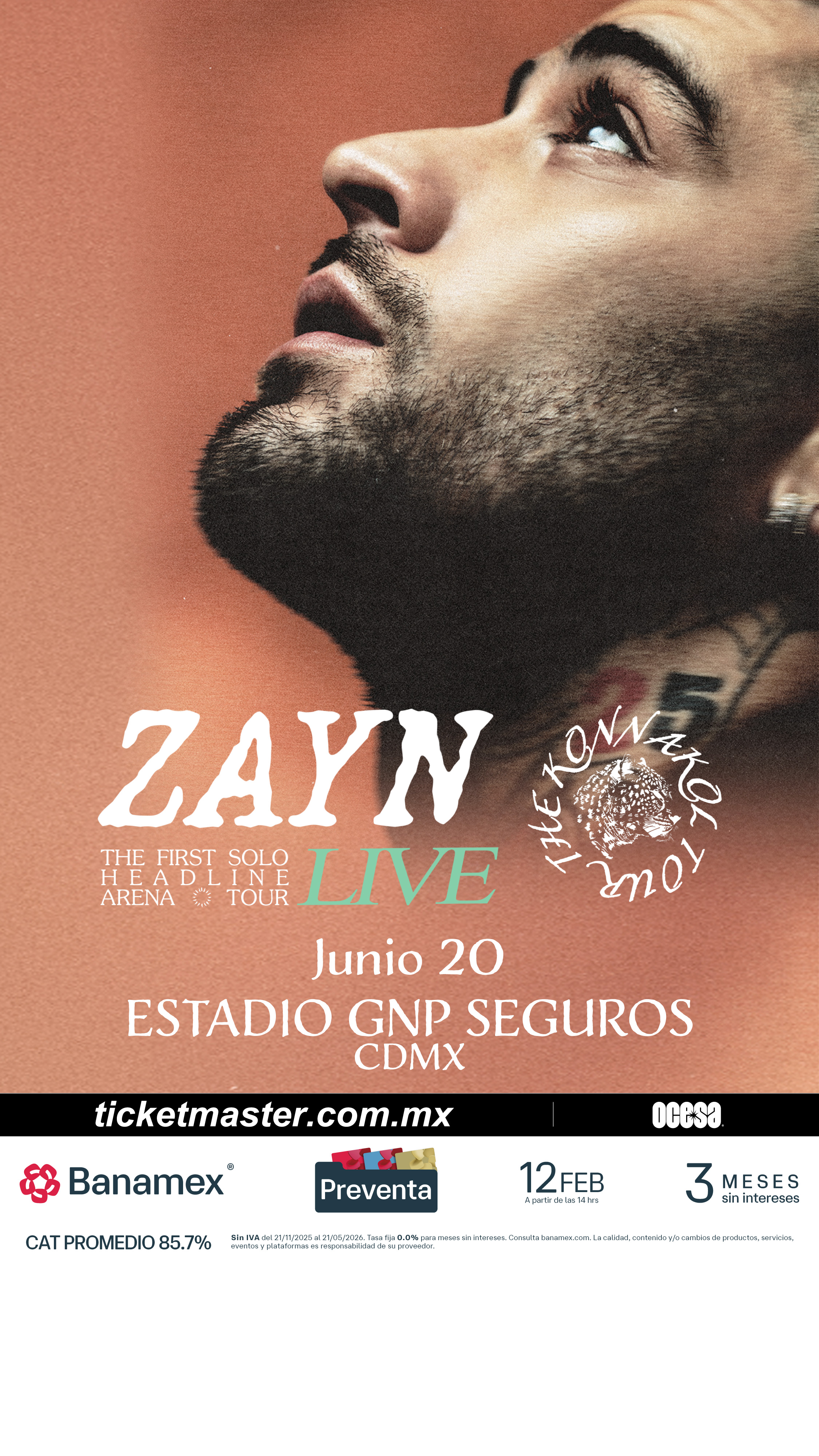 ZAYN es un artista multiplatino, compositor, productor y filántropo, reconocido por su impresionante rango vocal y su estilo híbrido de pop y R&B. Con su primer álbum como solista, hizo historia al convertirse en el primer artista masculino del Reino Unido en debutar simultáneamente en el #1 de las listas de álbumes tanto en el Reino Unido como en los Estados Unidos durante su primera semana, gracias a su exitoso disco Mind of Mine. El sencillo principal del álbum, “PILLOWTALK”, alcanzó el #1 en 68 países y desde entonces ha sido certificado como 5 veces platino por la RIAA. A este trabajo le siguieron Icarus Falls, certificado como disco de oro, y el aclamado por la crítica Nobody Is Listening. A lo largo de su carrera, ZAYN ha cosechado diversos galardones, incluyendo un Billboard Music Award, un American Music Award, un MTV VMA y dos nominaciones a los Brit Awards.