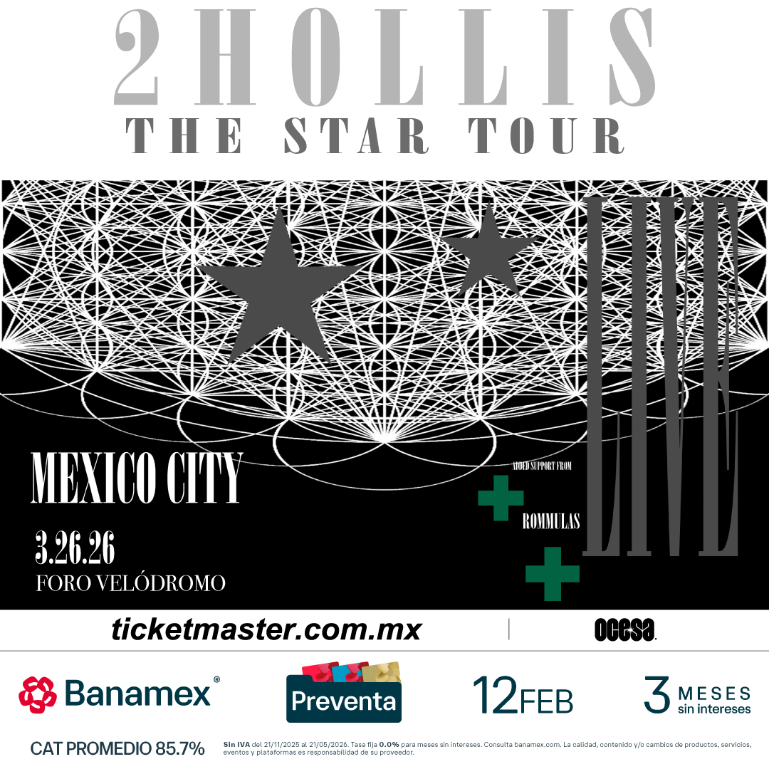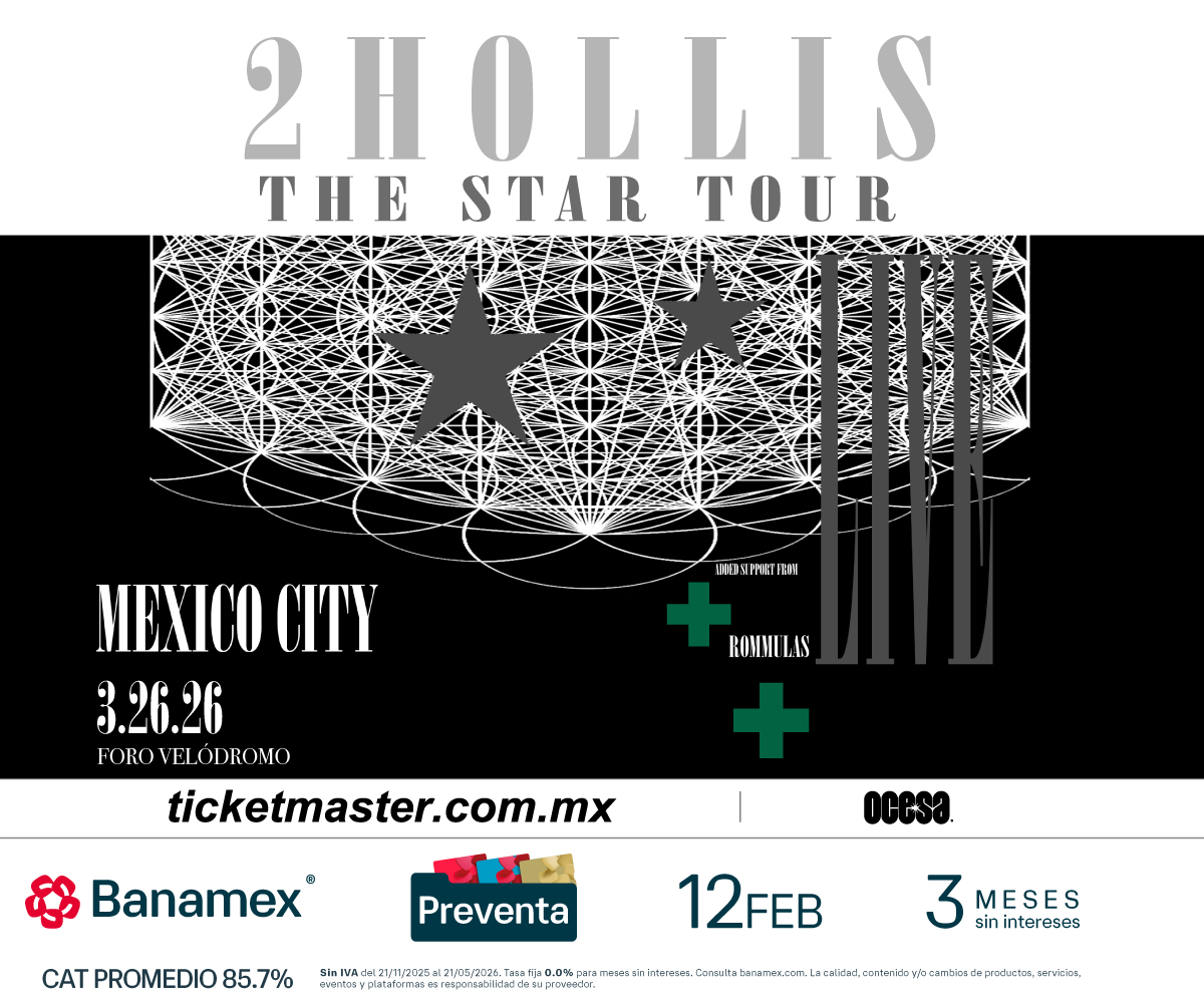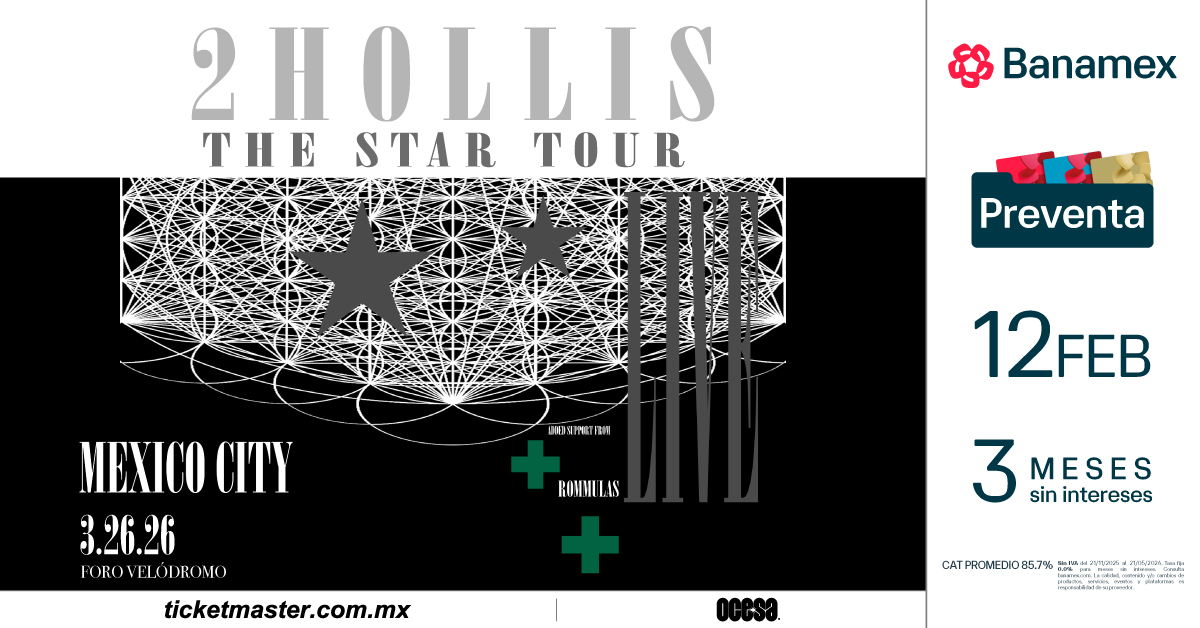 ¡No te quedes fuera de la experiencia 2hollis! Adquiere tus boletos en la preventa Banamex este 12 de febrero y un día después los podrás adquirir a través de www.ticketmaster.com.mx.