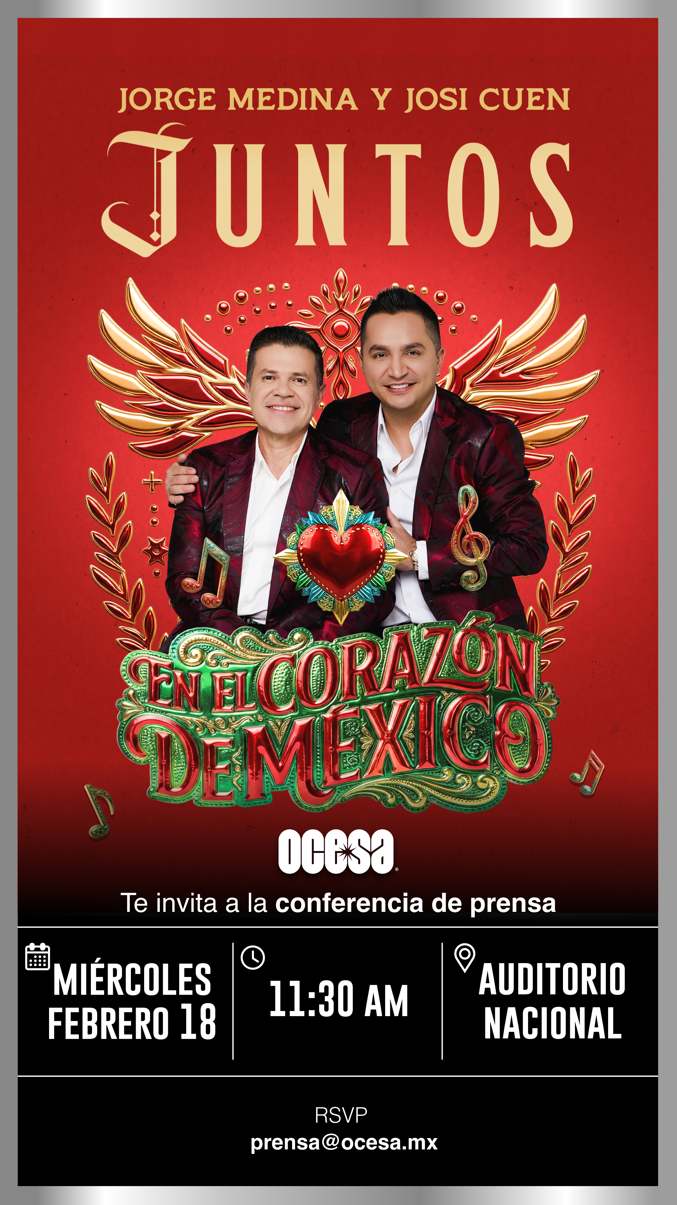 Tenemos el gusto de invitarlos cordialmente a la conferencia de prensa con dos de las voces más reconocidas y populares del Regional Mexicano, Jorge Medina & Josi Cuen, quienes darán los detalles de su nueva gira.