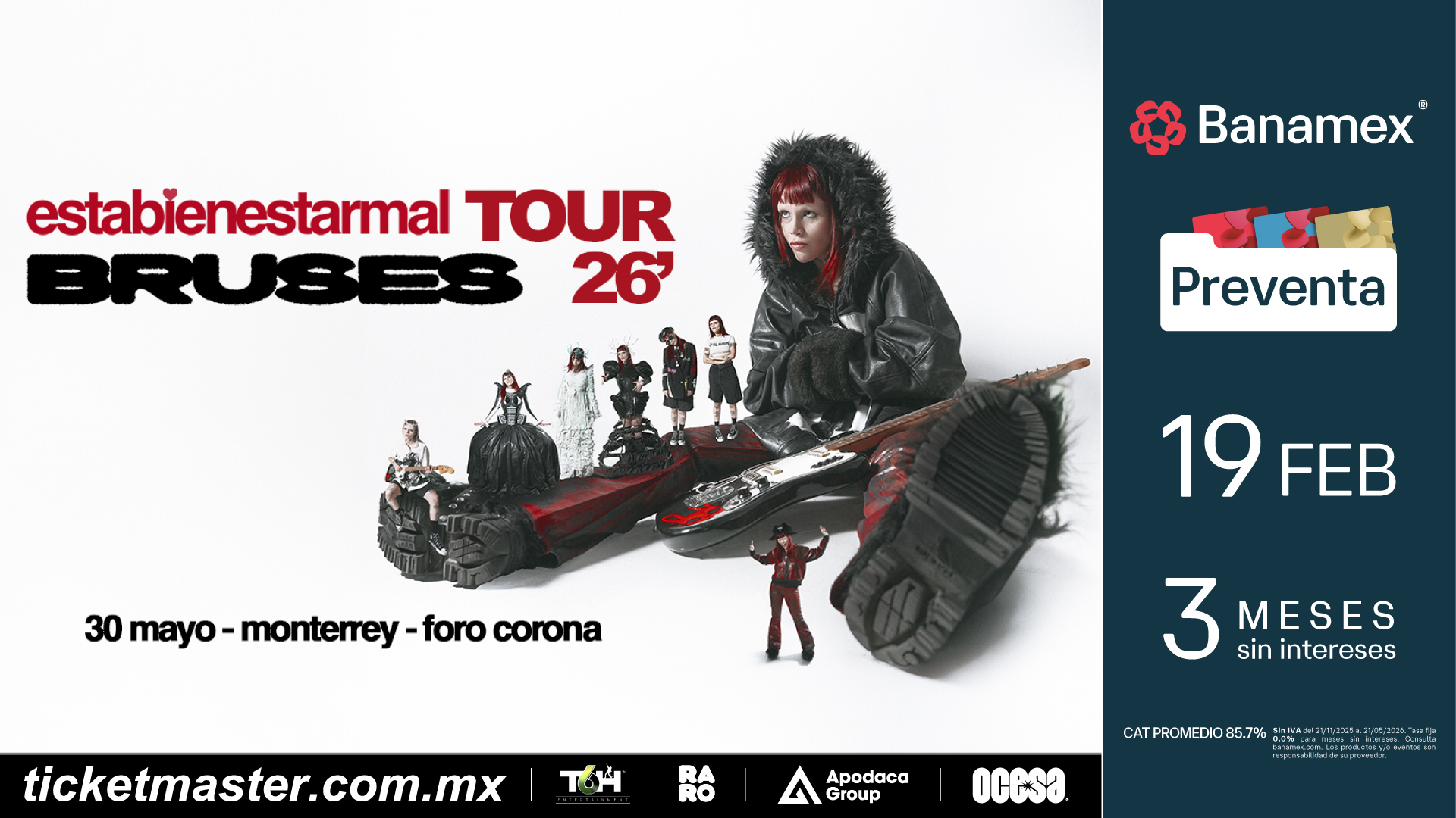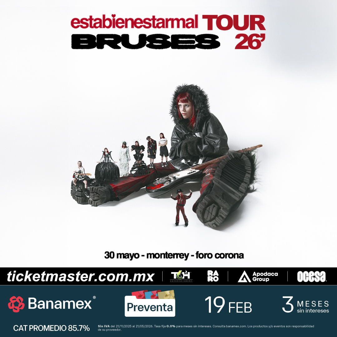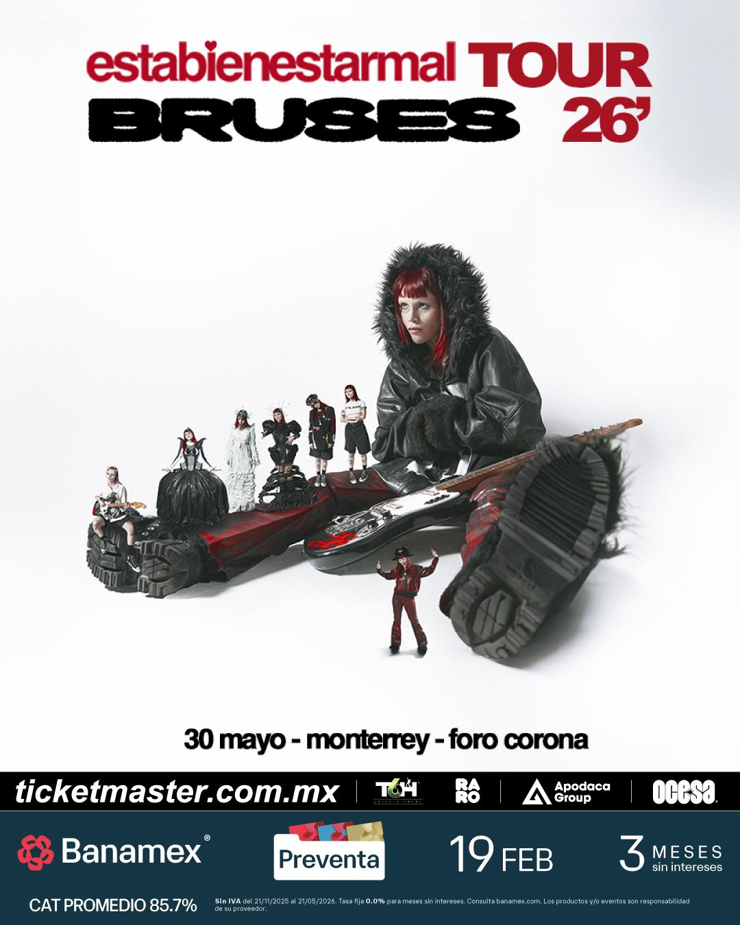 Acompaña a Bruses en este viaje de vulnerabilidad y corea con ella las canciones que la ayudaron a sanar. Adquiere tus boletos en la Preventa Banamex el 18 de febrero a través de Ticketmaster, y la Venta General estará disponible un día después.